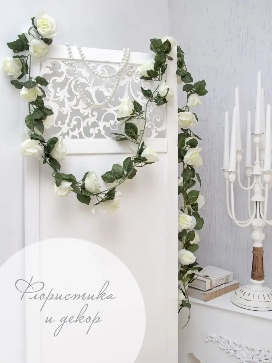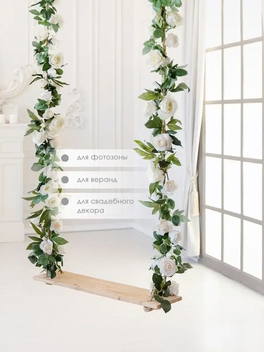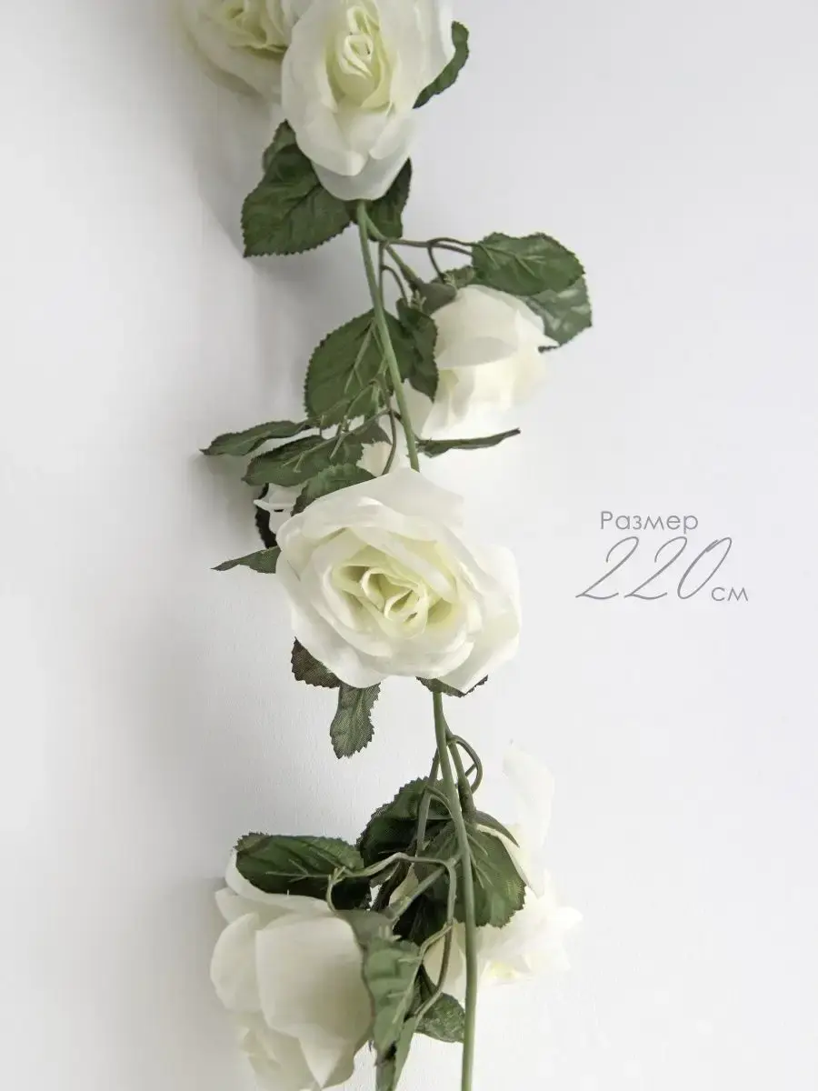 Лиана изготовлена из высококачественных искусственных роз, просто в уходе (протирать влажной тканью, обдуть феном).