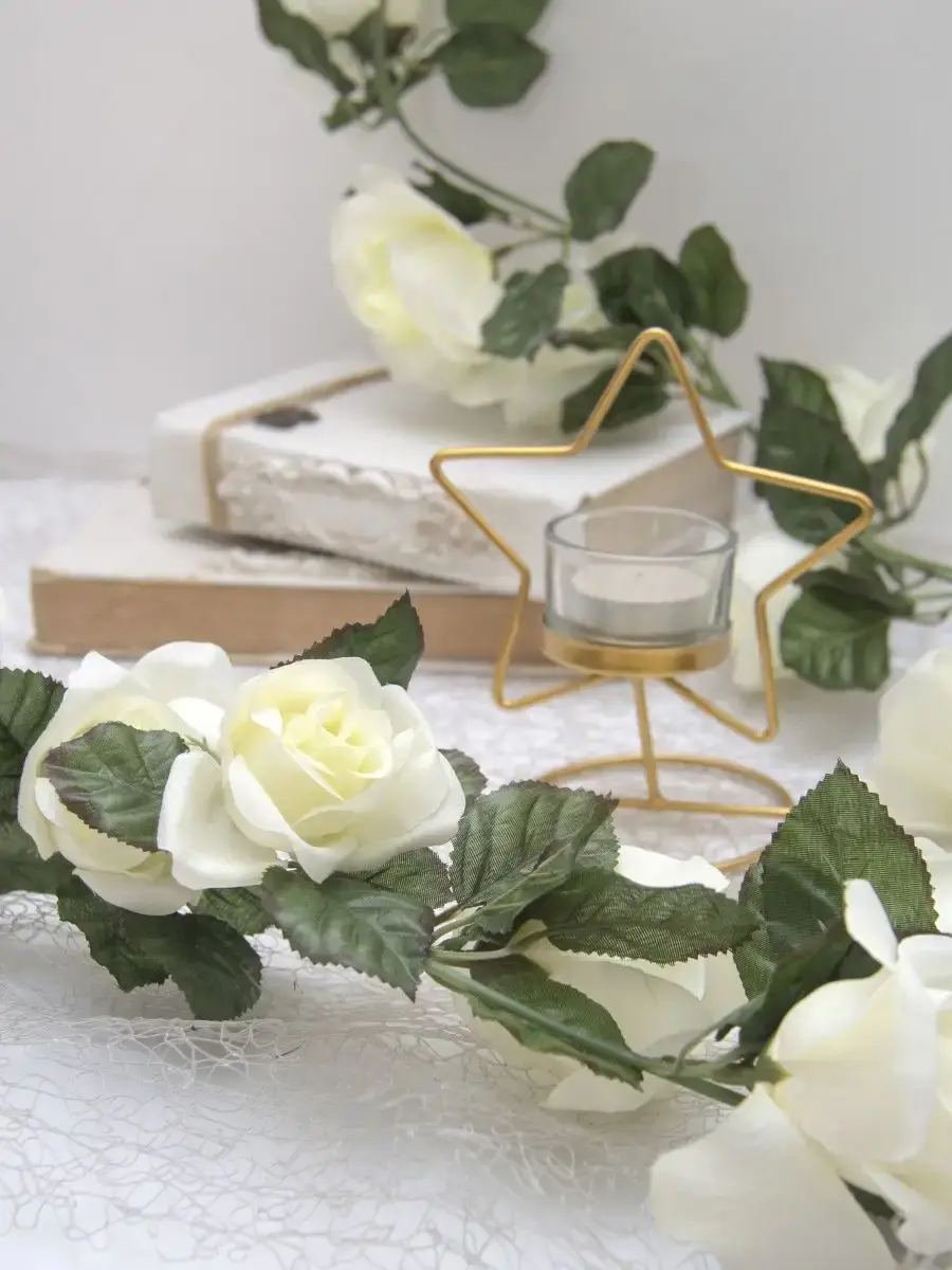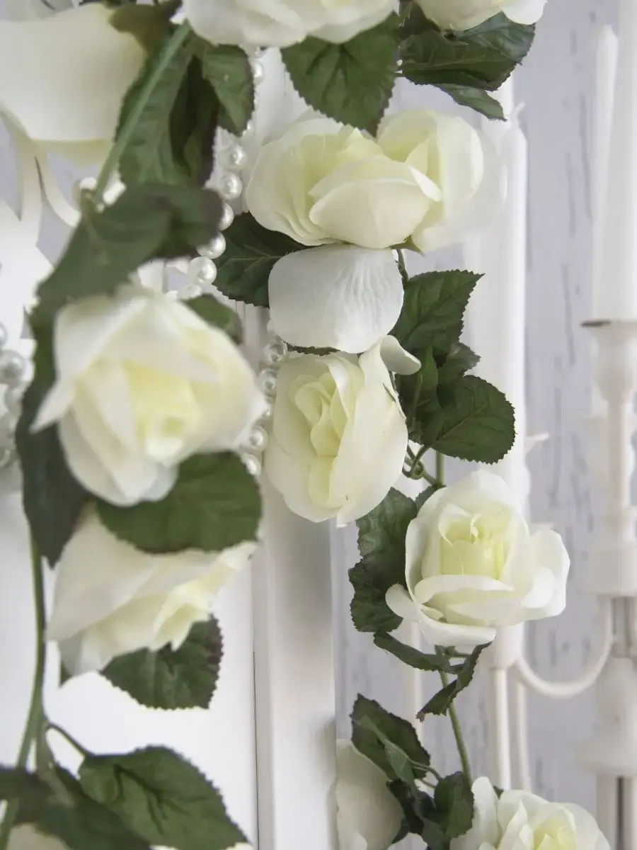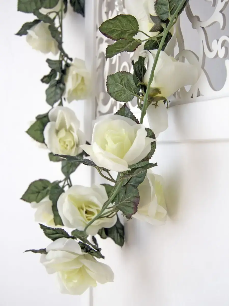 Лиана изготовлена из высококачественных искусственных роз, просто в уходе (протирать влажной тканью, обдуть феном).