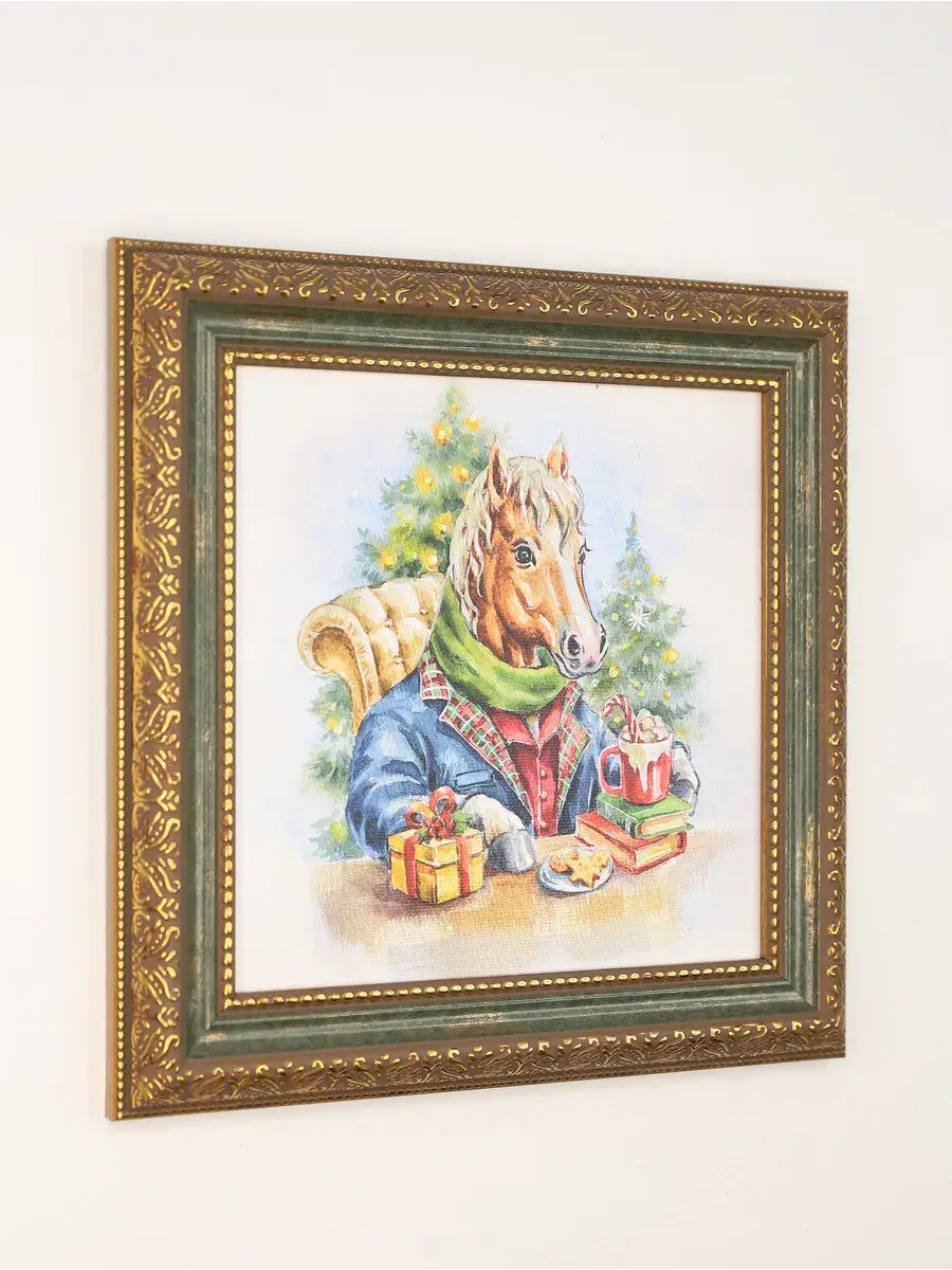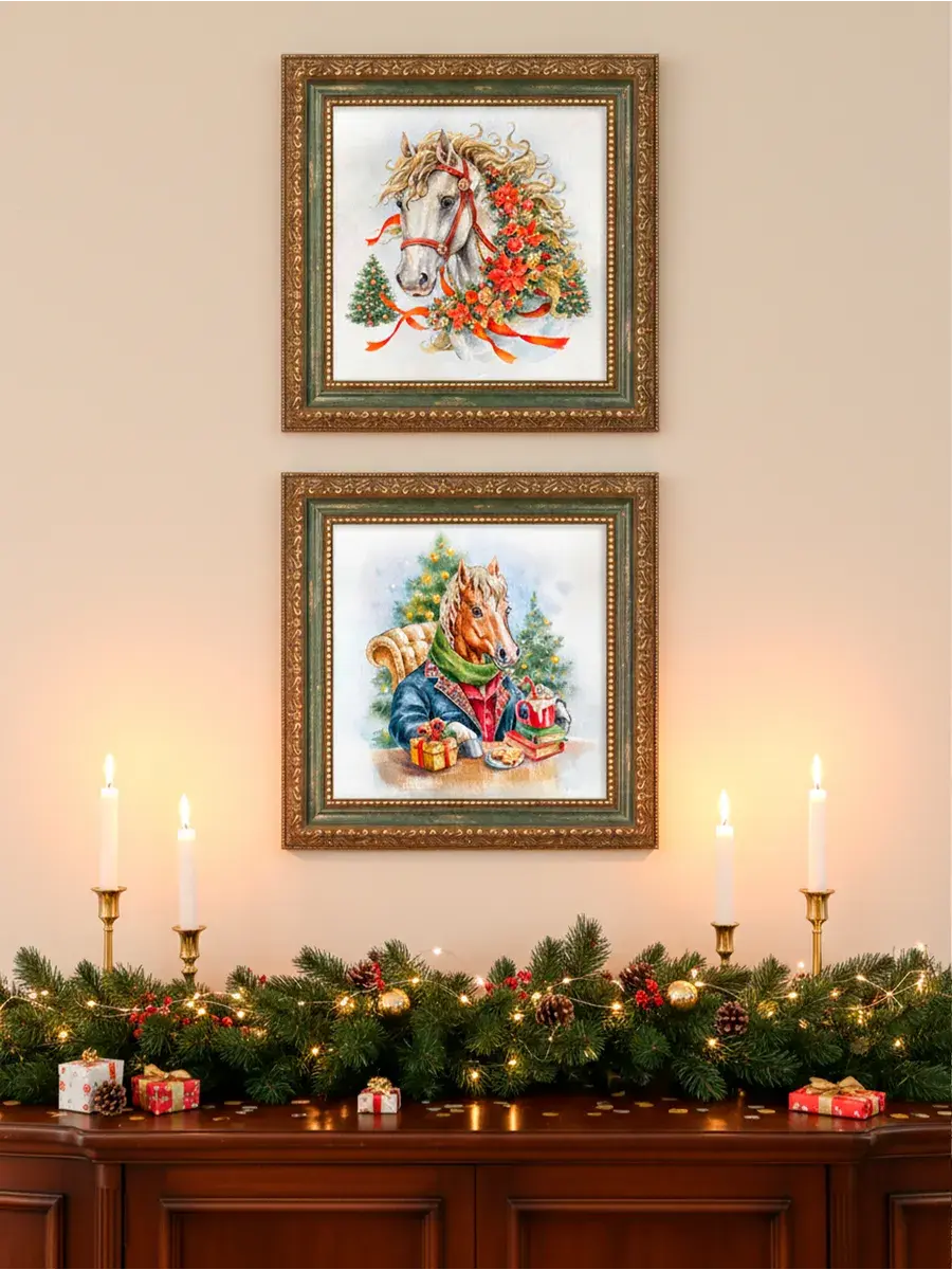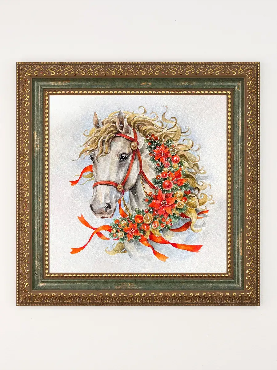 Символ наступающего 2026 года - огненная лошадь. Набор картин от Elenadecor с изображением красивых лошадок - прекрасный подарок на торжество любимым родственникам или дорогим друзьям! Картины напечатаны на натуральном холсте. Размер изображения 20*20 см, размер картины целиком 26*26 см. Багетная рама в классическом стиле придает картинам праздничный законченный вид. Удивите своих гостей необычным уникальным подарком - подарите им частичку красоты, которая привнесет в дом новогоднего настроения.