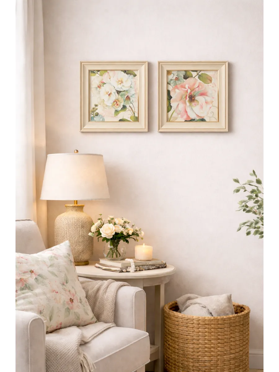 Картины можно повесить рядом, разместить по разным зонам комнаты или использовать в композиции с другими элементами декора. Нежная палитра делает их визуально «лёгкими» и уютными — они не перегружают пространство и добавляют тепла интерьеру.