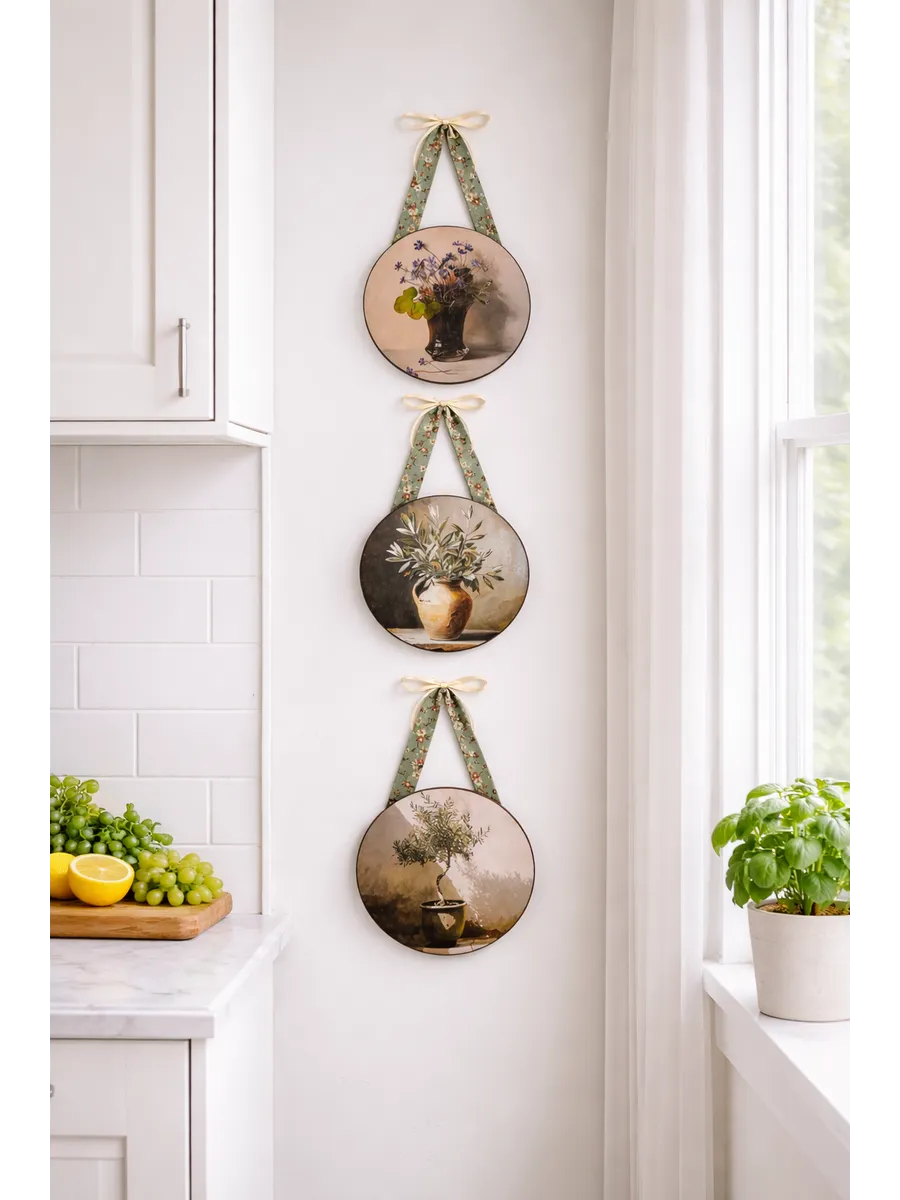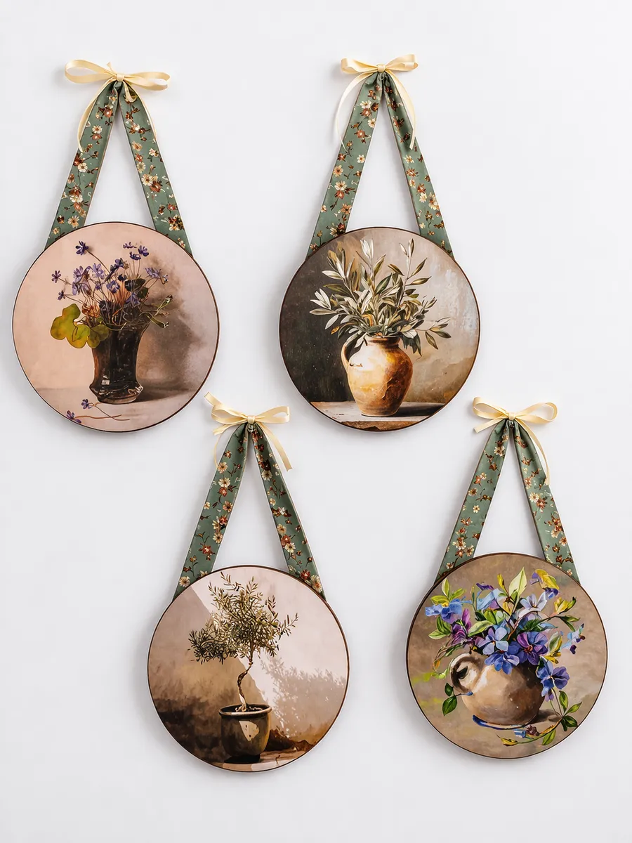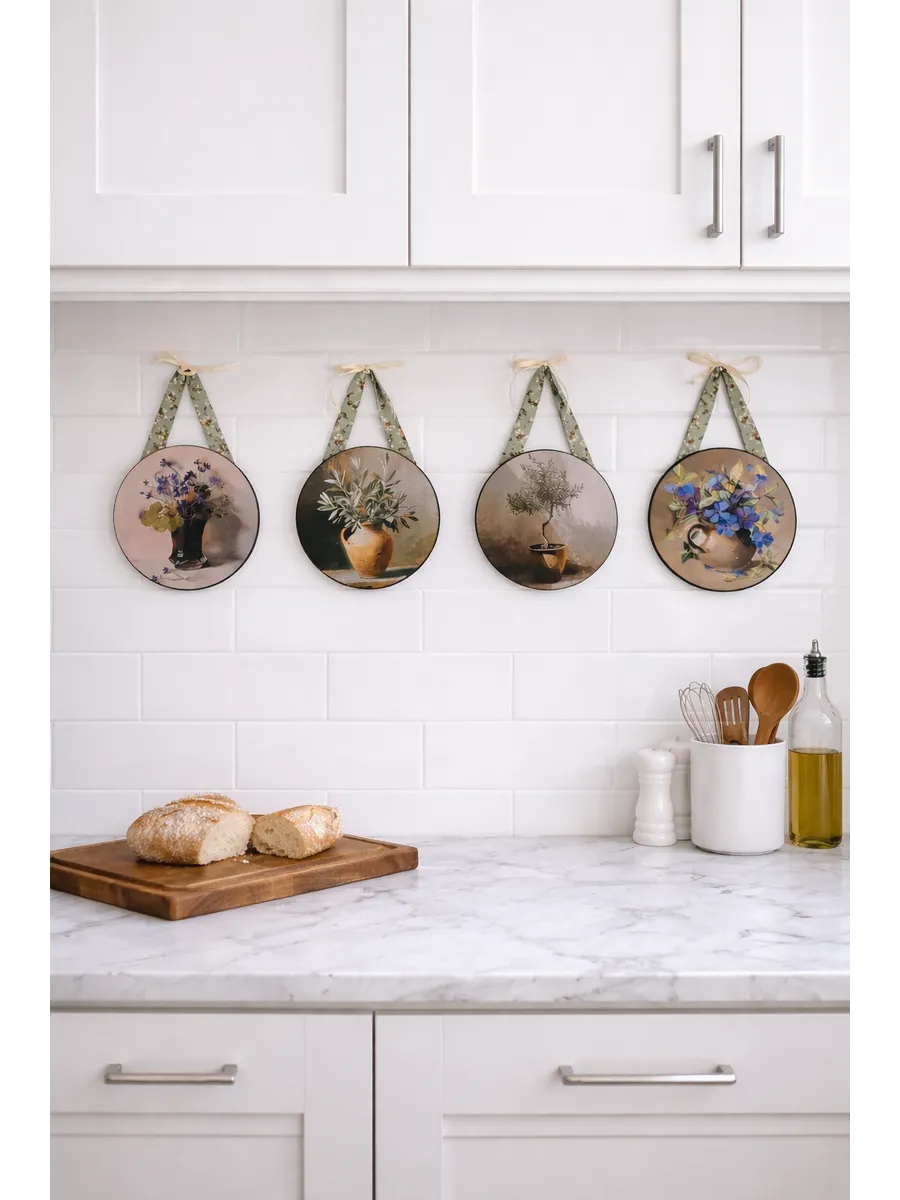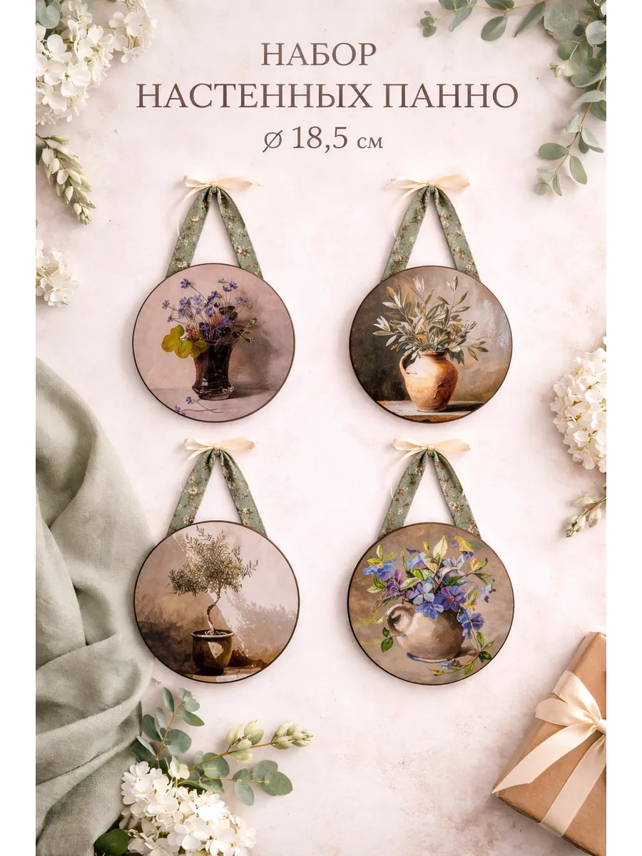 Создайте атмосферу уюта и гармонии в интерьере с набором декоративных настенных панно. Комплект состоит из 4 круглых панно диаметром 18,5 см, выполненных в нежной ботанической стилистике. Элегантные изображения цветов и растений добавят интерьеру легкости, тепла и эстетики.