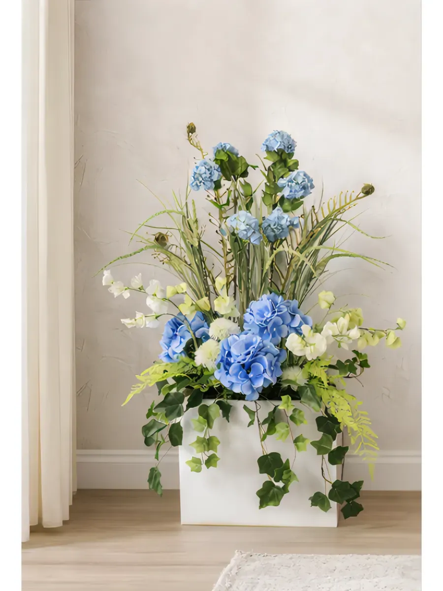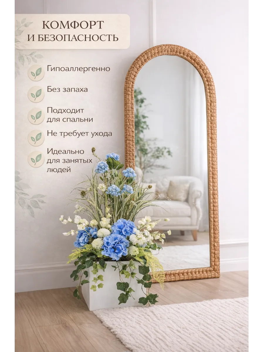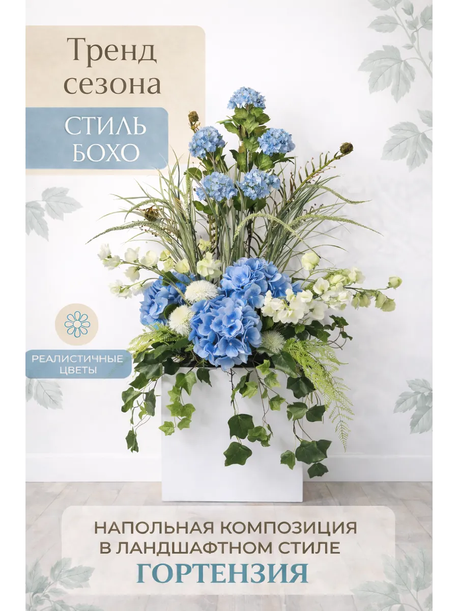 Цветочная композиция "Ящик с голубой гортензией" от Elenadecor - это стильное и качественное украшение, которое добавит уютную атмосферу в любую комнату. Благодаря реалистичности искусственных растений, эта композиция выглядят как настоящая, но при этом не требуют особого ухода. Декоративные растения впишутся в любой дизайн, создавая акценты и украшая пространство. Композиция идеально подойдет для тех, кто хочет добавить зелень в свой дом, не заботясь о поливе и уходе. Благодаря своим возможностям, эти украшения с легкостью преобразят вашу комнату, создавая уютную и стильную атмосферу.