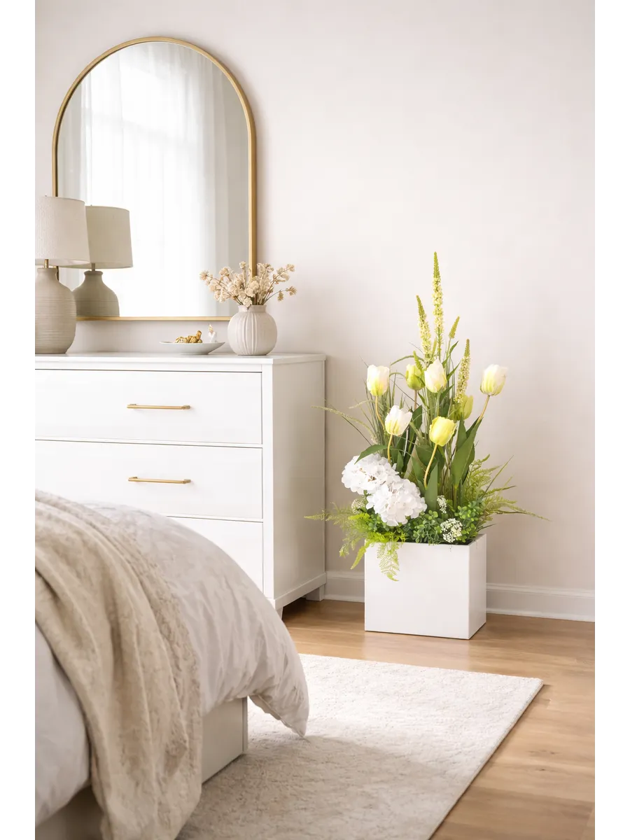 Цветочная композиция "Ящик с тюльпанами" от Elenadecor - это стильное и качественное украшение, которое добавит уютную атмосферу в любую комнату. Благодаря реалистичности искусственных растений, эта композиция выглядят как настоящая, но при этом не требуют особого ухода. Декоративные растения впишутся в любой дизайн, создавая акценты и украшая пространство. Композиция идеально подойдет для тех, кто хочет добавить зелень в свой дом, не заботясь о поливе и уходе. Благодаря своим возможностям, эти украшения с легкостью преобразят вашу комнату, создавая уютную и стильную атмосферу.