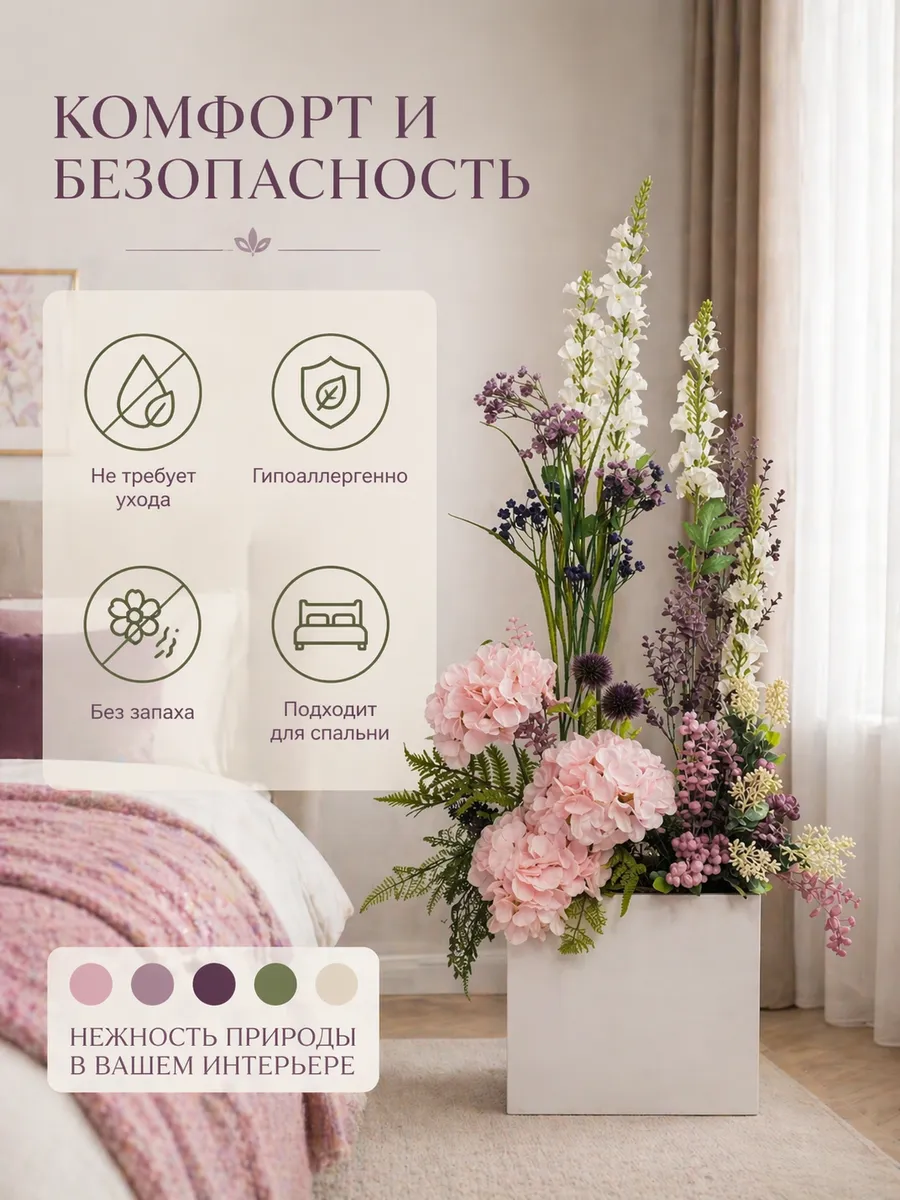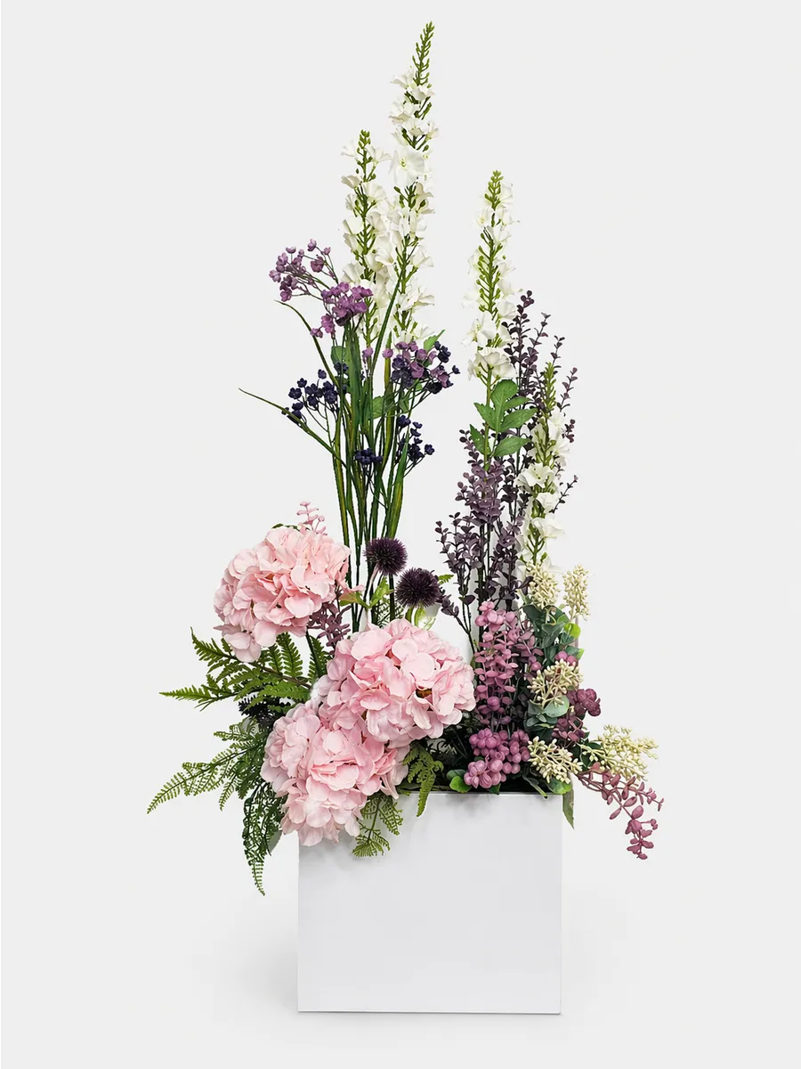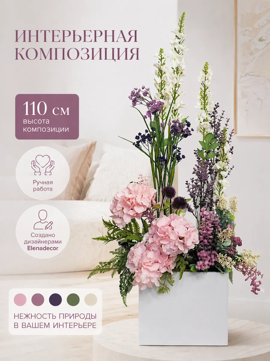 Цветочная композиция "Ящик с розовой гортензией" от Elenadecor - это стильное и качественное украшение, которое добавит уютную атмосферу в любую комнату. Благодаря реалистичности искусственных растений, эта композиция выглядят как настоящая, но при этом не требуют особого ухода. Декоративные растения впишутся в любой дизайн, создавая акценты и украшая пространство. Композиция идеально подойдет для тех, кто хочет добавить зелень в свой дом, не заботясь о поливе и уходе. Благодаря своим возможностям, эти украшения с легкостью преобразят вашу комнату, создавая уютную и стильную атмосферу.