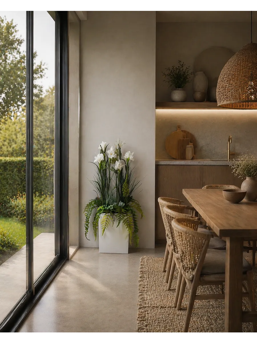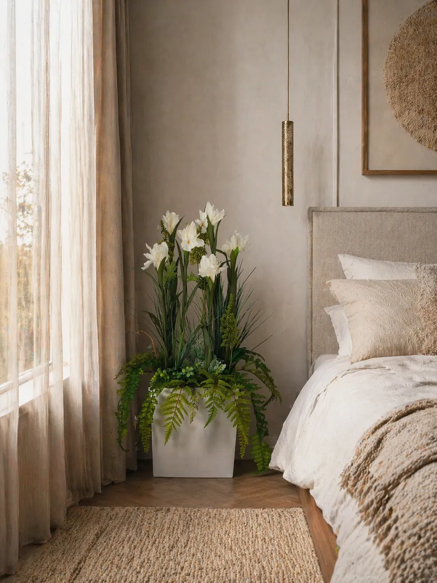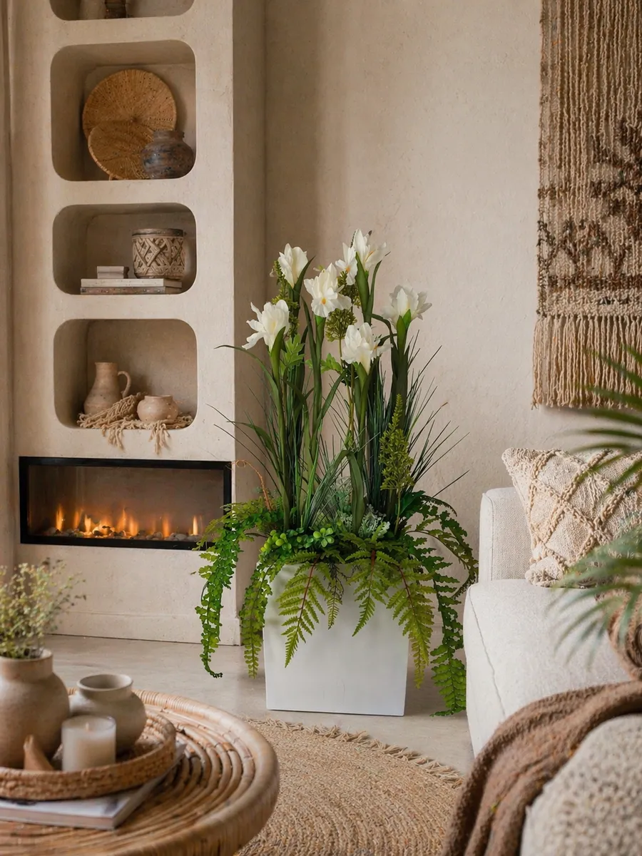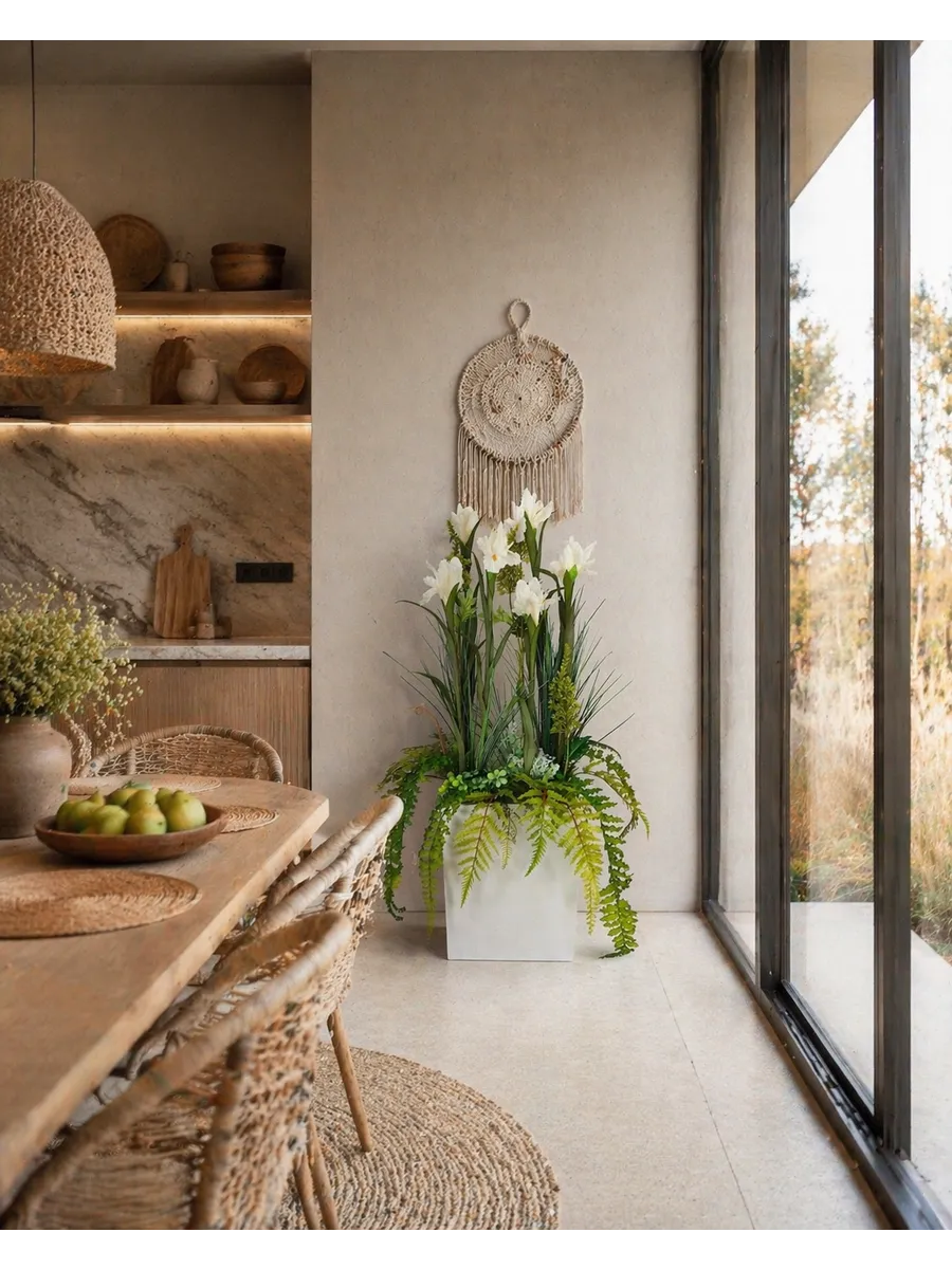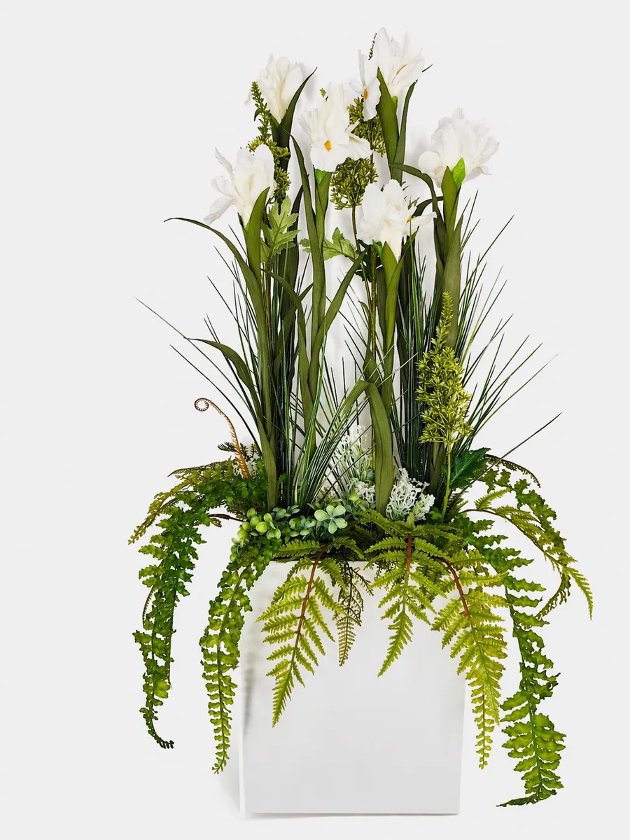 Цветочная композиция "Ящик с белыми ирисами" от Elenadecor - это стильное и качественное украшение, которое добавит уютную атмосферу в любую комнату. Благодаря реалистичности искусственных растений, эта композиция выглядят как настоящая, но при этом не требуют особого ухода. Декоративные растения впишутся в любой дизайн, создавая акценты и украшая пространство. Композиция идеально подойдет для тех, кто хочет добавить зелень в свой дом, не заботясь о поливе и уходе. Благодаря своим возможностям, эти украшения с легкостью преобразят вашу комнату, создавая уютную и стильную атмосферу.
