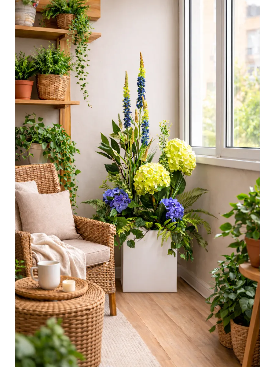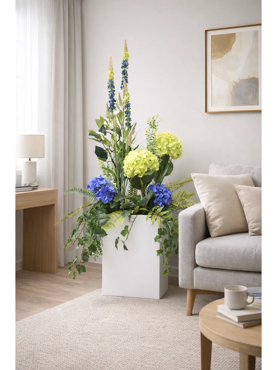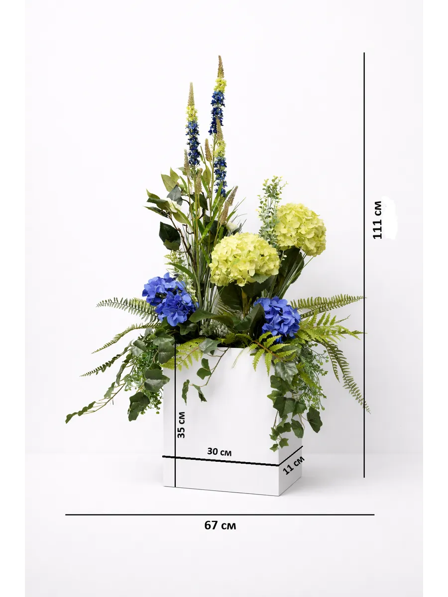 Цветочная композиция "Ящик с синими гортензиями" от Elenadecor - это стильное и качественное украшение, которое добавит уютную атмосферу в любую комнату. Благодаря реалистичности искусственных растений, эта композиция выглядят как настоящая, но при этом не требуют особого ухода. Декоративные растения впишутся в любой дизайн, создавая акценты и украшая пространство. Композиция идеально подойдет для тех, кто хочет добавить зелень в свой дом, не заботясь о поливе и уходе. Благодаря своим возможностям, эти украшения с легкостью преобразят вашу комнату, создавая уютную и стильную атмосферу.