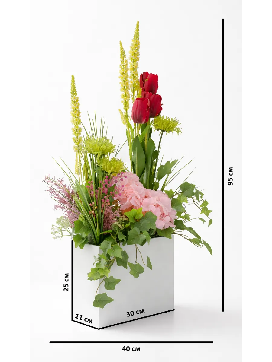 Цветочная композиция "Ящик с тюльпанами" от Elenadecor - это стильное и качественное украшение, которое добавит уютную атмосферу в любую комнату. Благодаря реалистичности искусственных растений, эта композиция выглядят как настоящая, но при этом не требуют особого ухода. Декоративные растения впишутся в любой дизайн, создавая акценты и украшая пространство. Композиция идеально подойдет для тех, кто хочет добавить зелень в свой дом, не заботясь о поливе и уходе. Благодаря своим возможностям, эти украшения с легкостью преобразят вашу комнату, создавая уютную и стильную атмосферу.