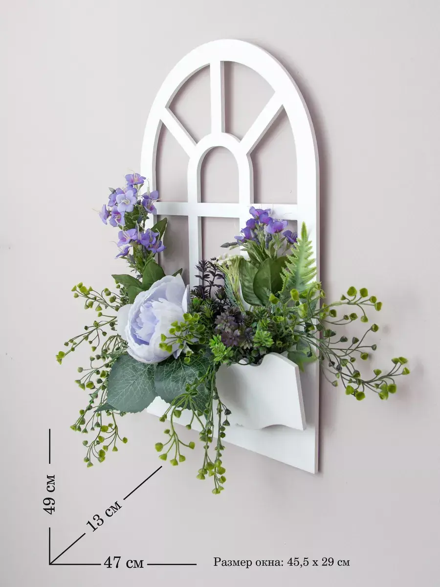 Декорации настенные от бренда HOME GALLERY - это стильное и уютное украшение для вашего интерьера. Это фальш - окно с цветами отличается оригинальным дизайном и высоким качеством. Декорация представляет собой композицию с искусственными цветами в деревянном кашпо - окне. Размер окошка составляет 45,5*29 см, что делает его идеальным дополнением к зеркалу, в прихожую, ванную или на кухню, где не хватает света для живых растений.