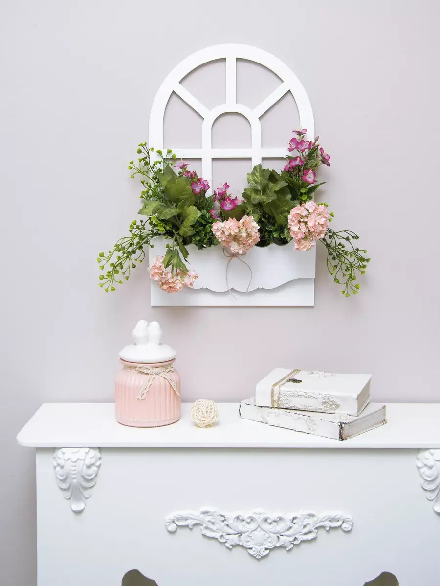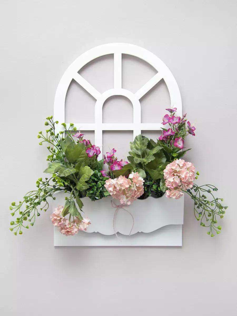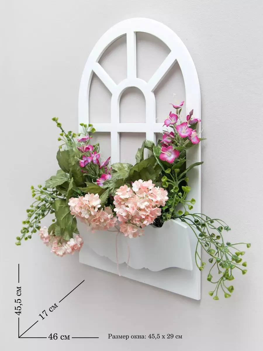 Декорации настенные от бренда HOME GALLERY - это стильное и уютное украшение для вашего интерьера. Это фальш - окно с цветами отличается оригинальным дизайном и высоким качеством. Декорация представляет собой композицию с искусственными цветами в деревянном кашпо - окне. Размер окошка составляет 45,5*29 см, что делает его идеальным дополнением к зеркалу, в прихожую, ванную или на кухню, где не хватает света для живых растений.