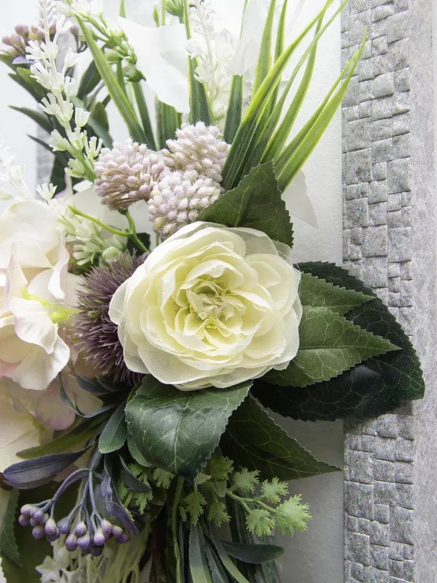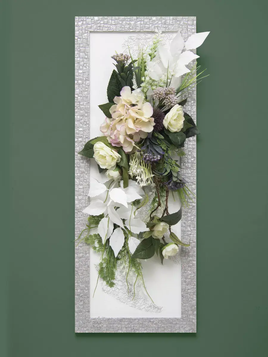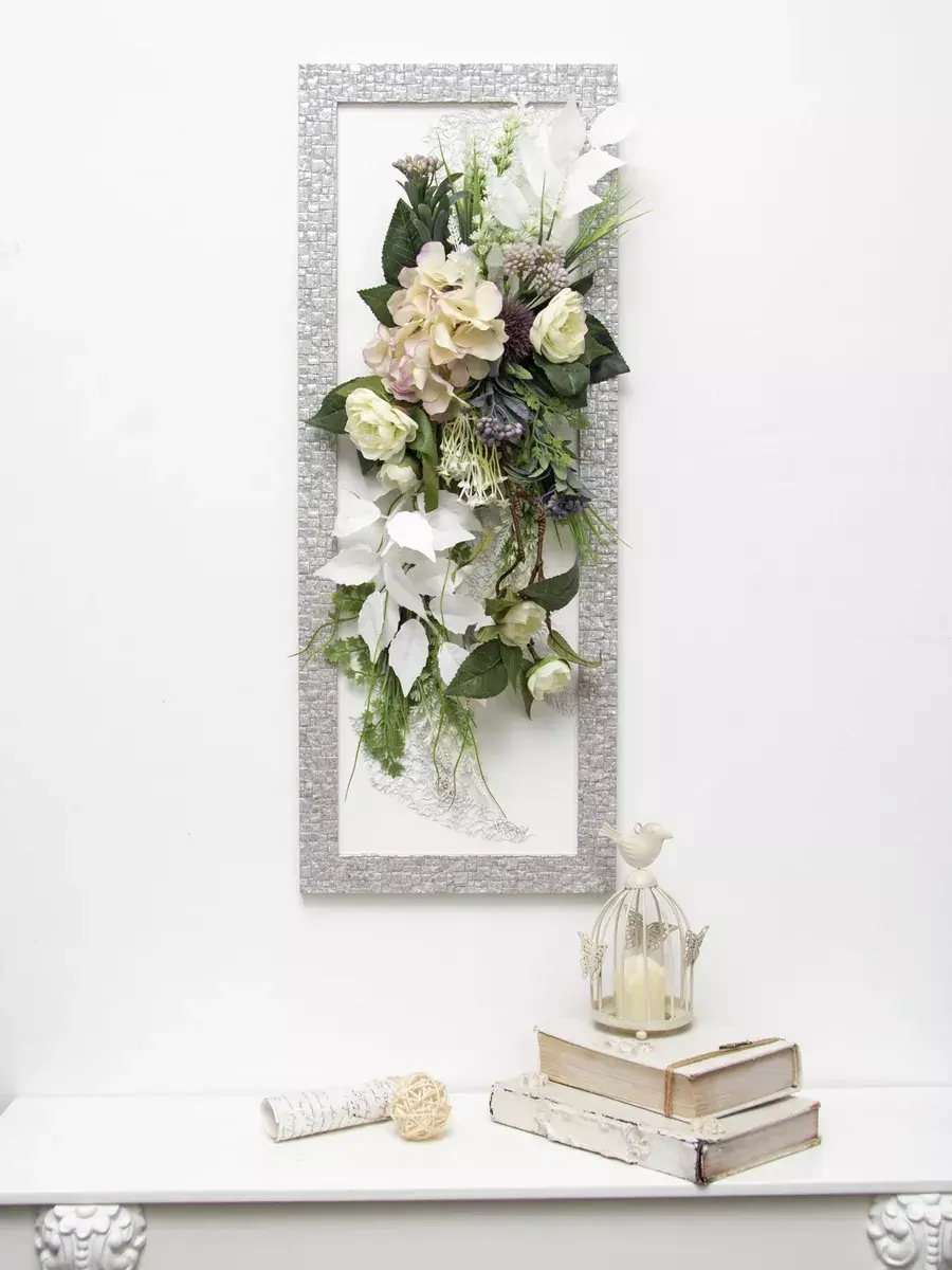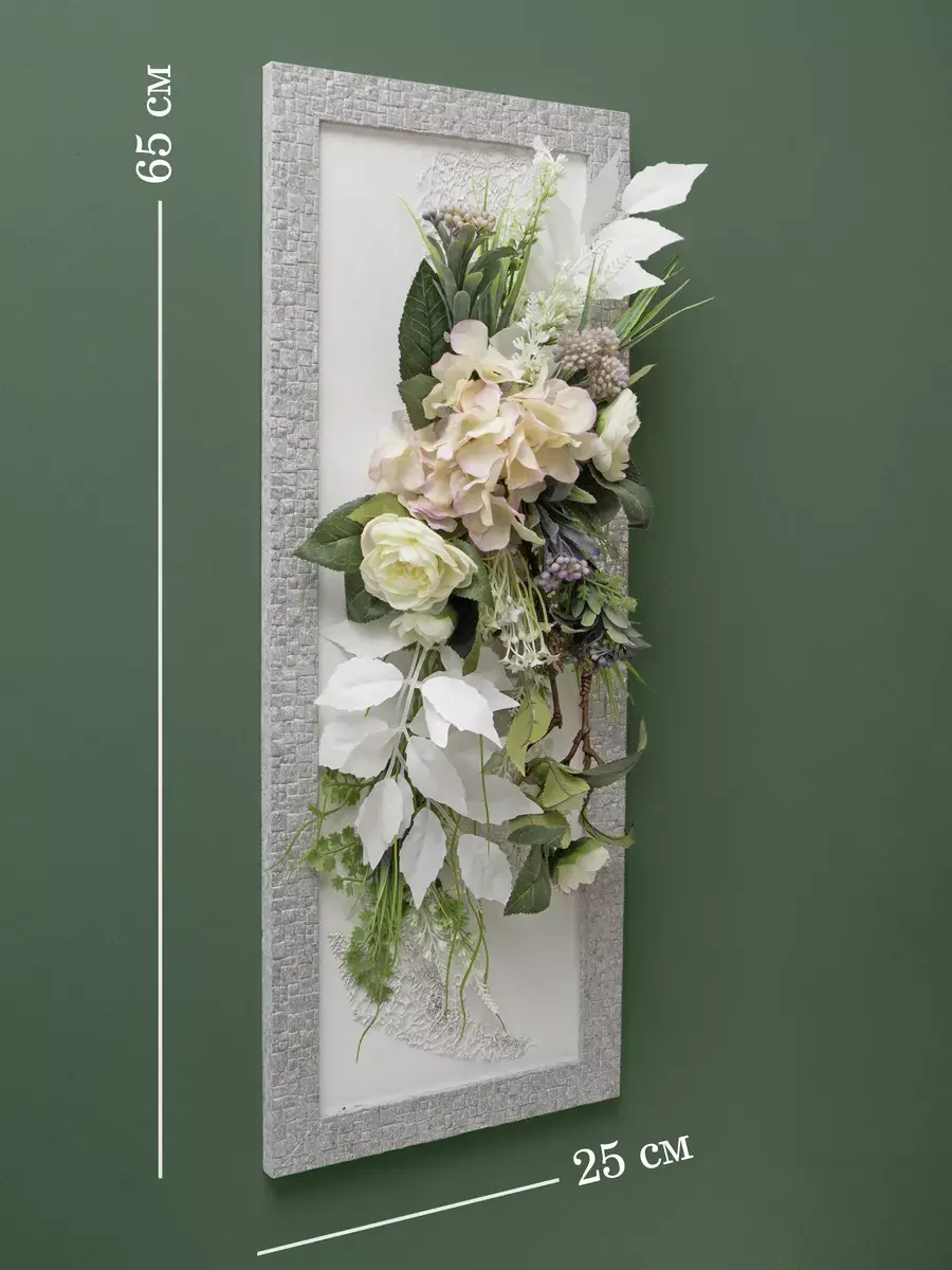 Авторская композиция из интерьерных цветов в багетной раме. Настенная цветочная композиция в багетной раме с искусственными интерьерными цветами. Выполнена из высококачественных искусственных цветов и растений , лаванда и гортензия, горошек, орхидеи . Размер рамы 65*25 см. В комплекте шуруп с дюбелем и зубчатый крепеж на раме. Отличное украшение к зеркалу, коллекции картин с цветами или в прихожей, где живым цветам недостаточно света. Панно долго будет радовать и добавлять уюта в дом.