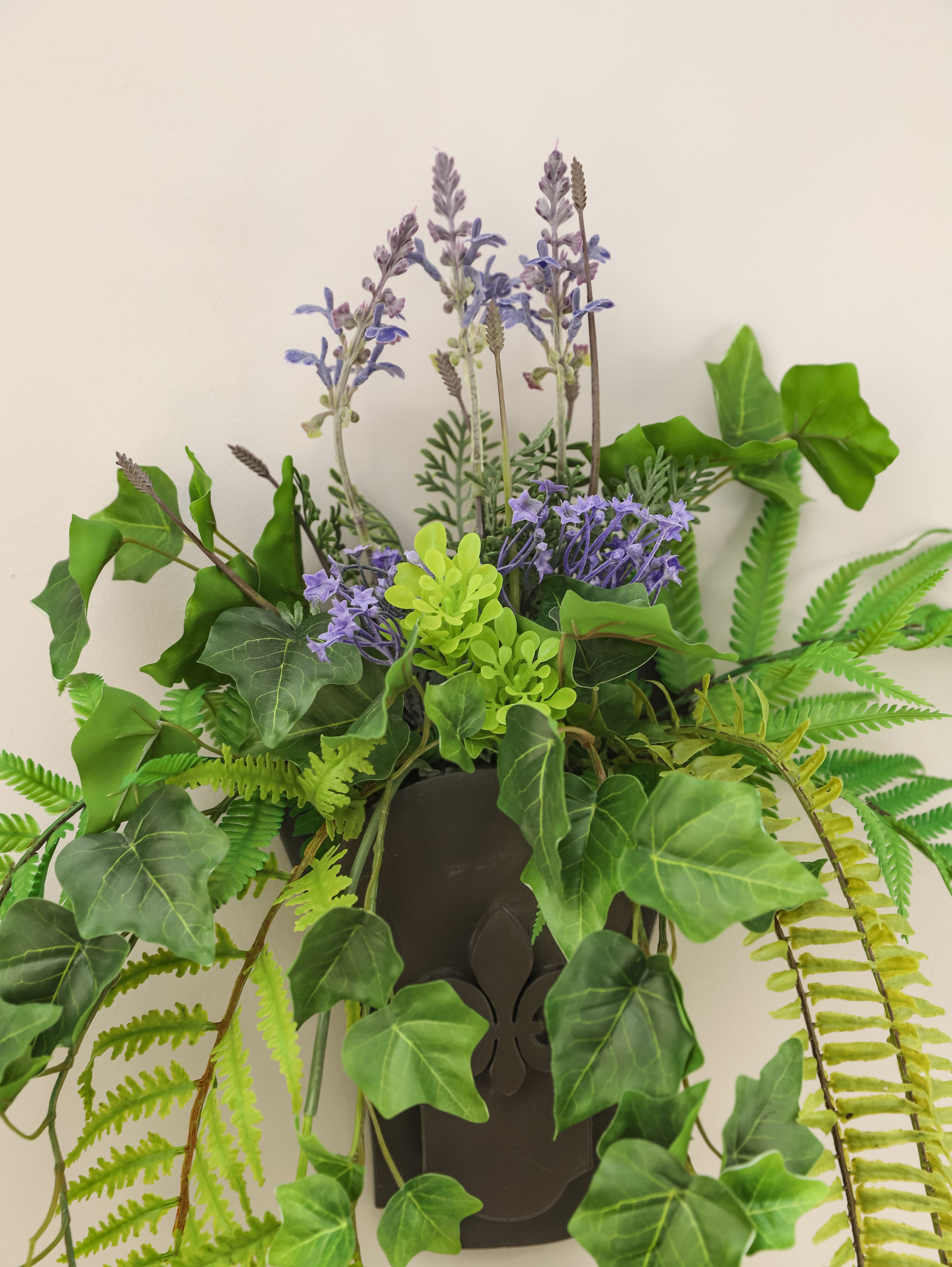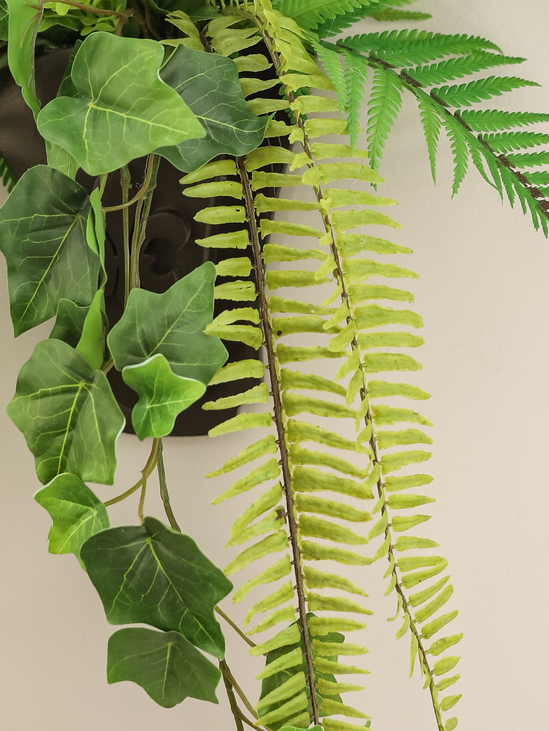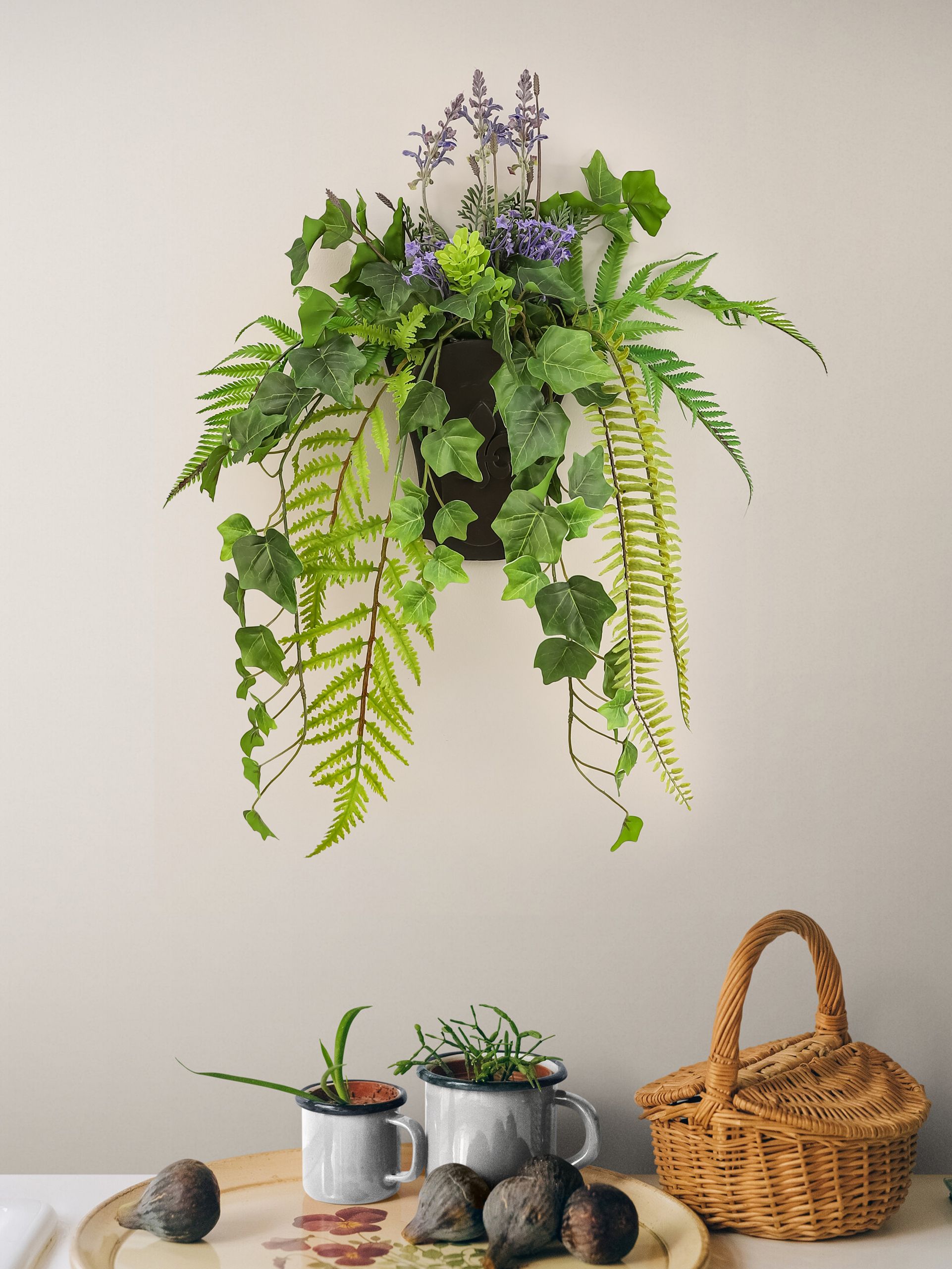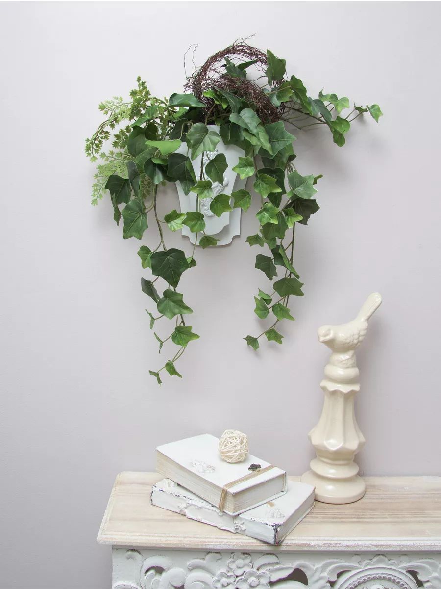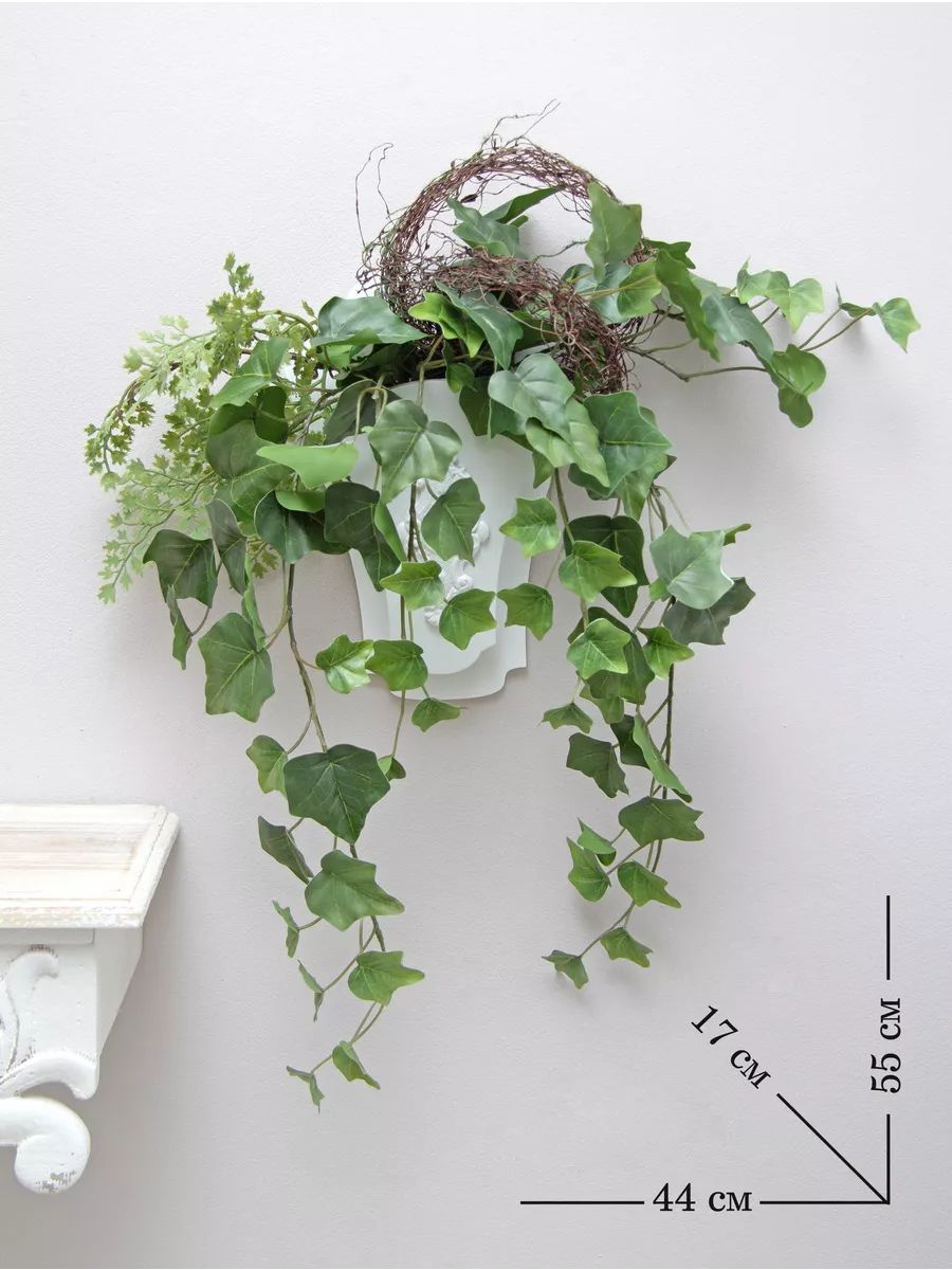 Украшение интерьера настенным декором, искусственными растениями и цветами интерьерными добавляет уюта и тепла. Эиа ампельная настенная композиция в деревянном кашпо молочного цвета с цветами украсит уголок вашего дома, в котором для живых цветов нет места или не хватает света. Крепление на две петли, саморез для стены в комплекте. Размер композиции в80*ш41 см. Отличное украшение к зеркалу, над камином или в прихожей, где живым цветам недостаточно света. По желанию самостоятельно можно дополнить светодиодными нитями (светодиодной гирляндой) или аромадиффузором. Композиция максимально проста в уходе, достаточно обдуть феном, протереть влажной тканью, обработать антистатиком.