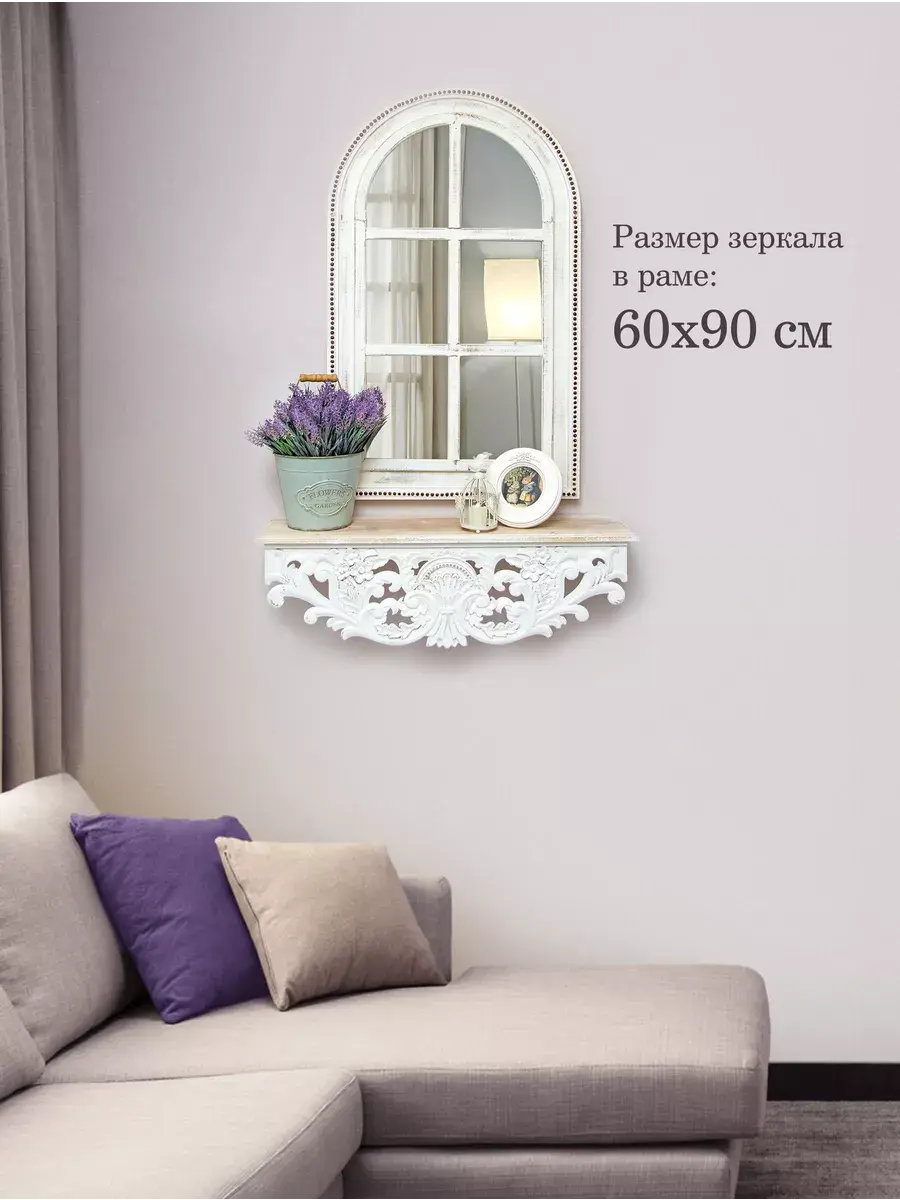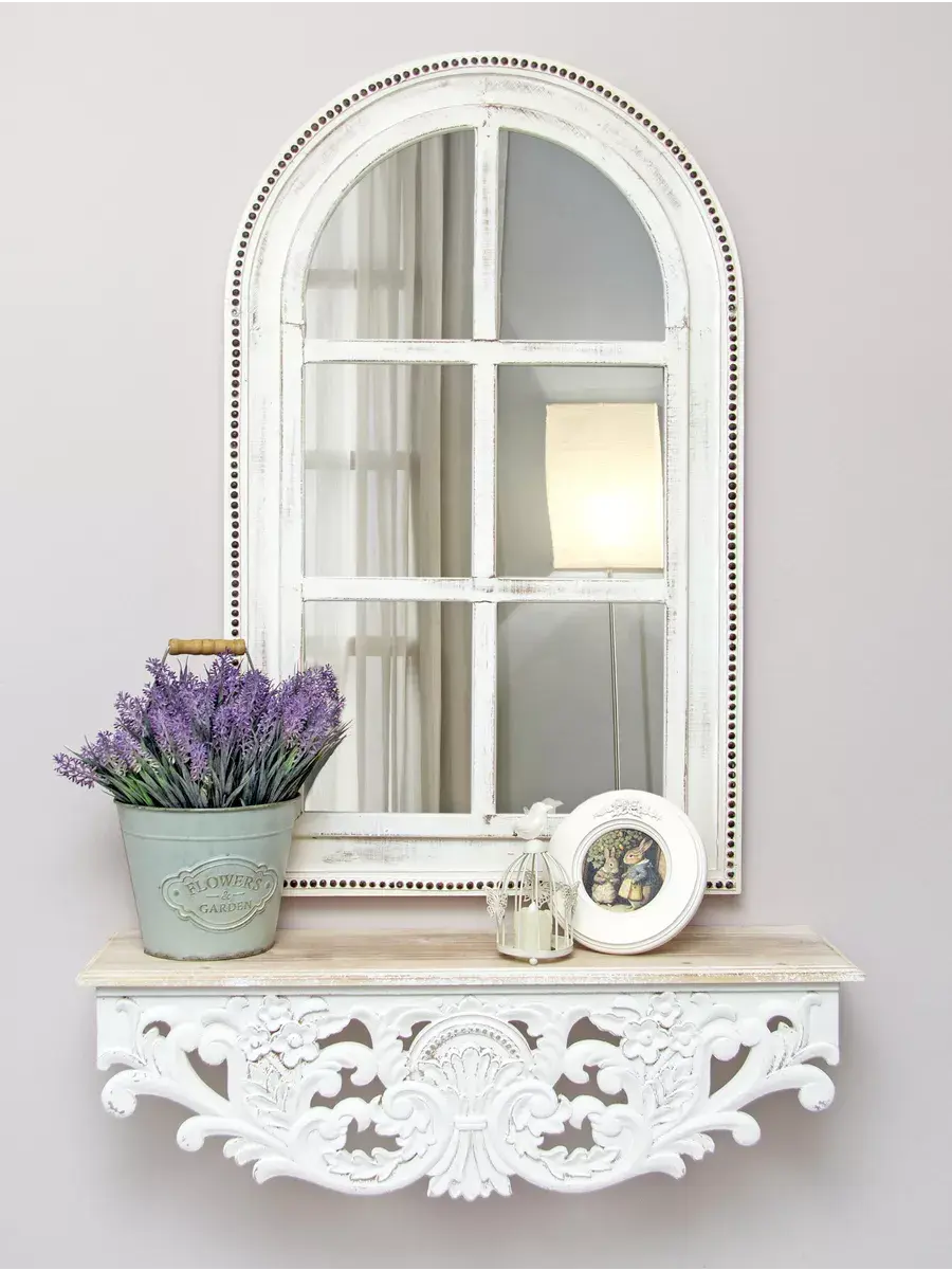 Настенное зеркало в деревянной раме в форме окна. Винтажное зеркало фальш-окно для изысканных интерьеров. Рама покрашена с эффектом старения, подходит для интерьера в стиле Прованс, шеббишик и в этно стиле. Резьба выполнена вручную и отличается высокой детализацией. Панно будет прекрасным дополнением к интерьеру квартиры и дома. Зеркало добавит нотку элегантности и изысканности любой комнате. Зеркало будет хорошо смотреться как самостоятельный декор, так и в сочетании с другими элементами декора коллекции "Флоренция". Размер зеркала 90*60 см, глубина 2 см.