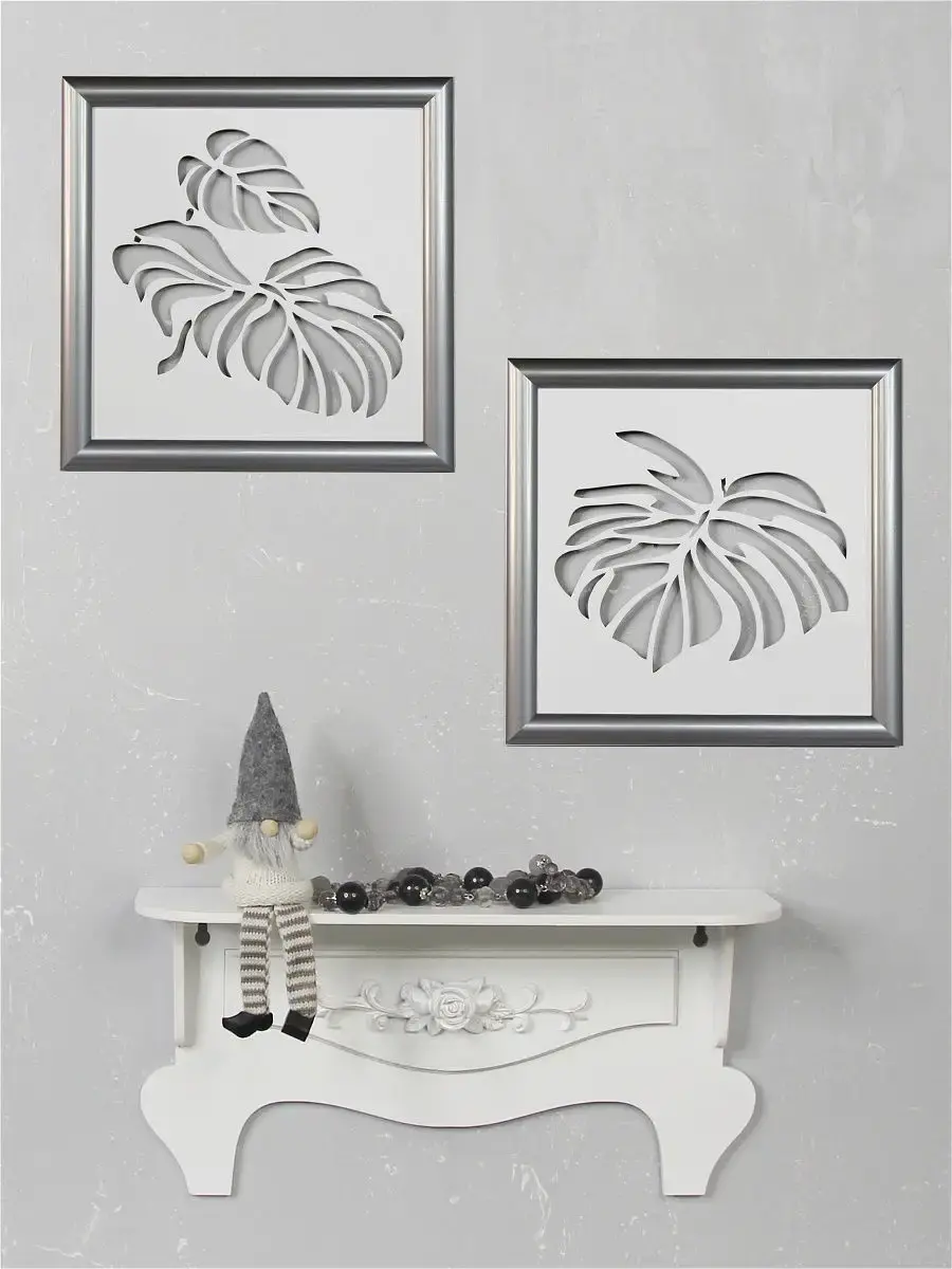 Настенные панно "Монстеры". Декор на стену для комнаты в современном стиле. Деревянные резные листья монстеры оформлены в лаконичную багетную раму, покрашены акриловой эмалью на водной основе. Декор для интерьера дома и дачи. Декорация на стену спальни, прихожей, украшение для кухни и ванной комнаты. Деревянные панно легкие и изящные, преобразят интерьер комнат. Размер одного панно 30х30 см. С обратной стороны зубчатый крепеж, крепление для стены в комплекте.
