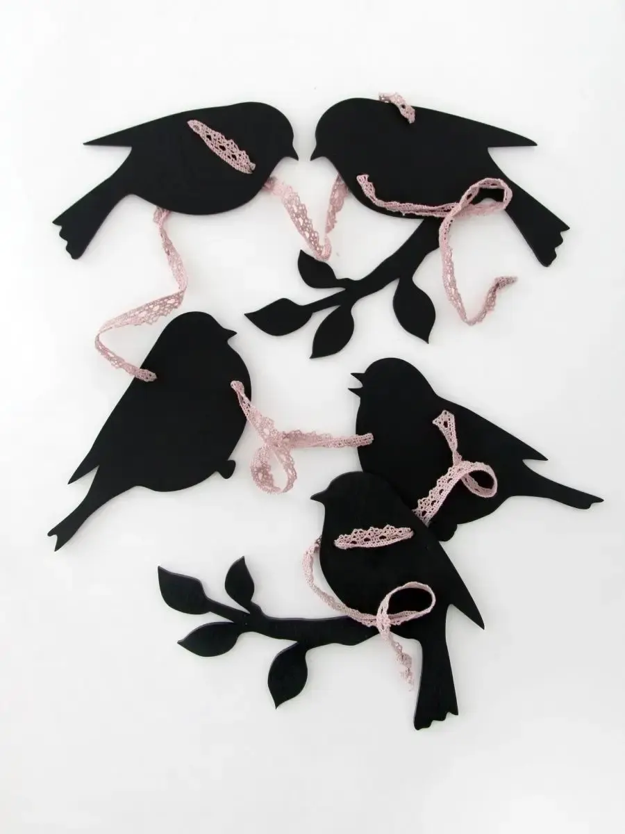 Настенный декор в стиле прованс. Гирлянда из пяти птичек на кружевной тесьме, можно растянуть до 1,3 метра. Деревянные птички вырезаны из фанеры 4 мм покрашены акриловой эмалью на водной основе. Декор для интерьера дома и дачи. Отличное дополнение к полкам серии арт. 9926202 , зеркальному декору арт. 29459165, декоративным окнам арт.12216848 или зеркальное панно с полкой арт. 30937068. Декорация на стену спальни, прихожей, украшение для кухни и ванной комнаты. Птички легкие и изящные, можно наклеить на стену на двухсторонний скотч . Высота птичек 16 см., окрашены с двух сторон.