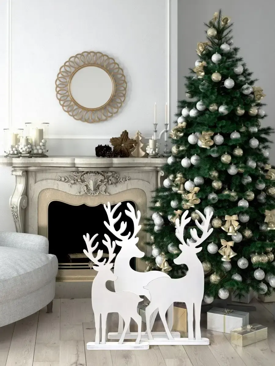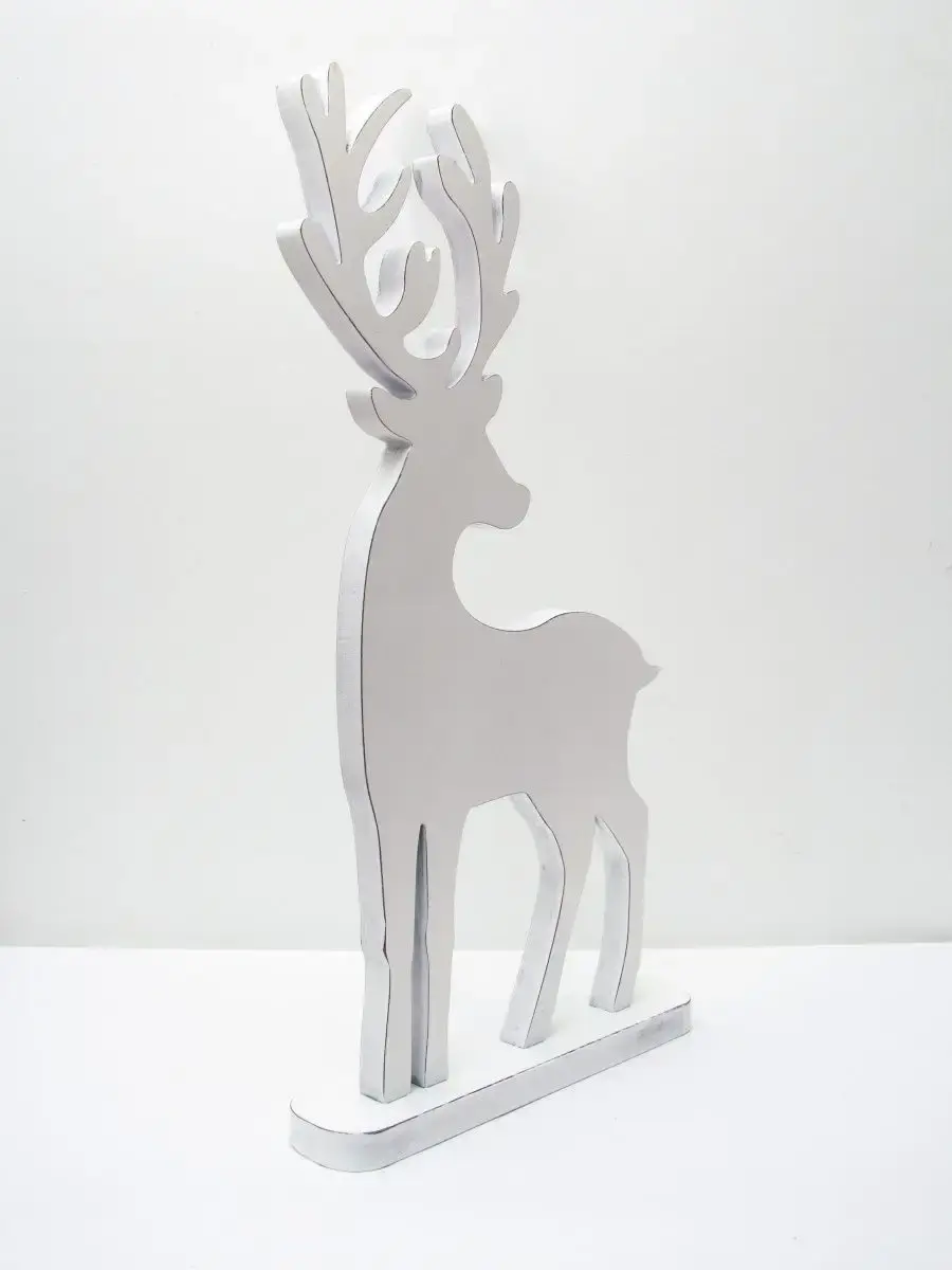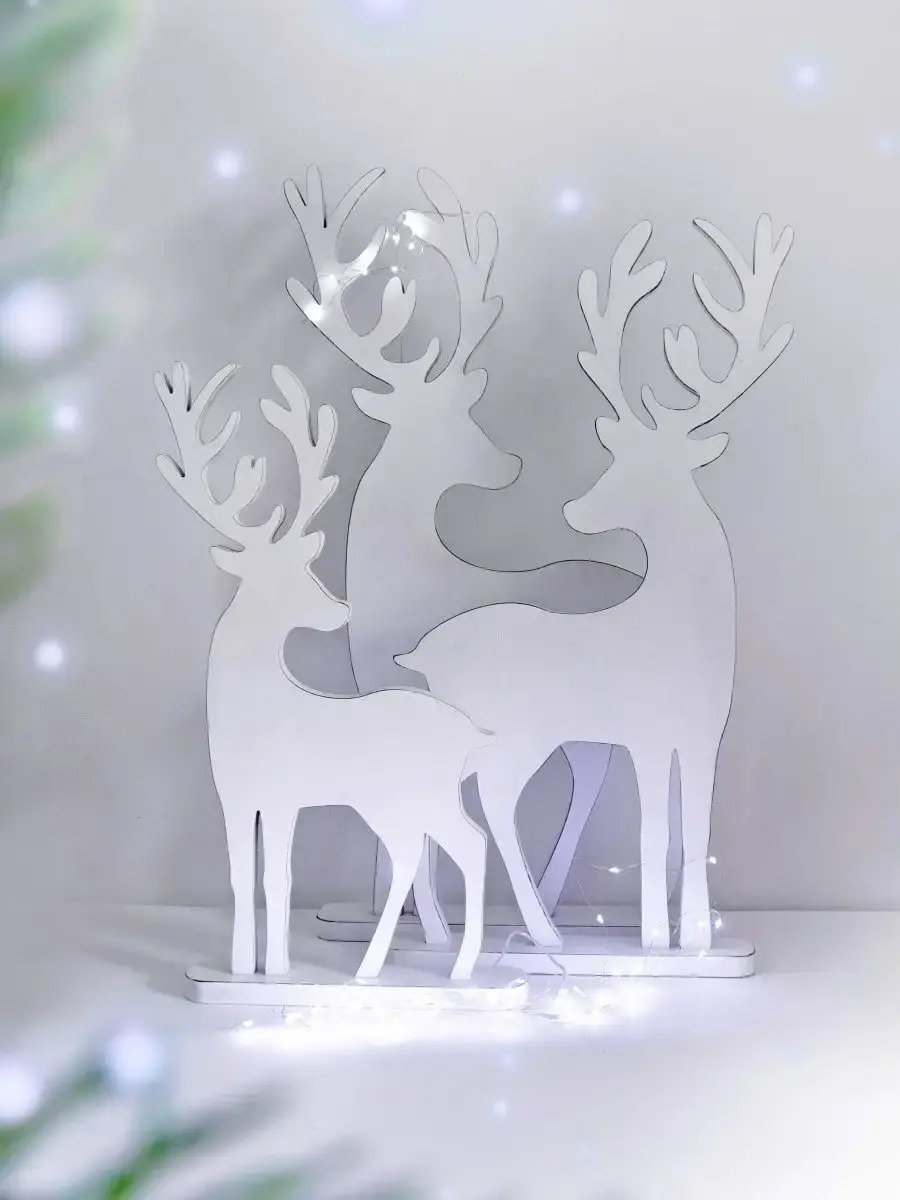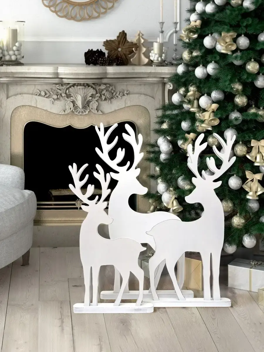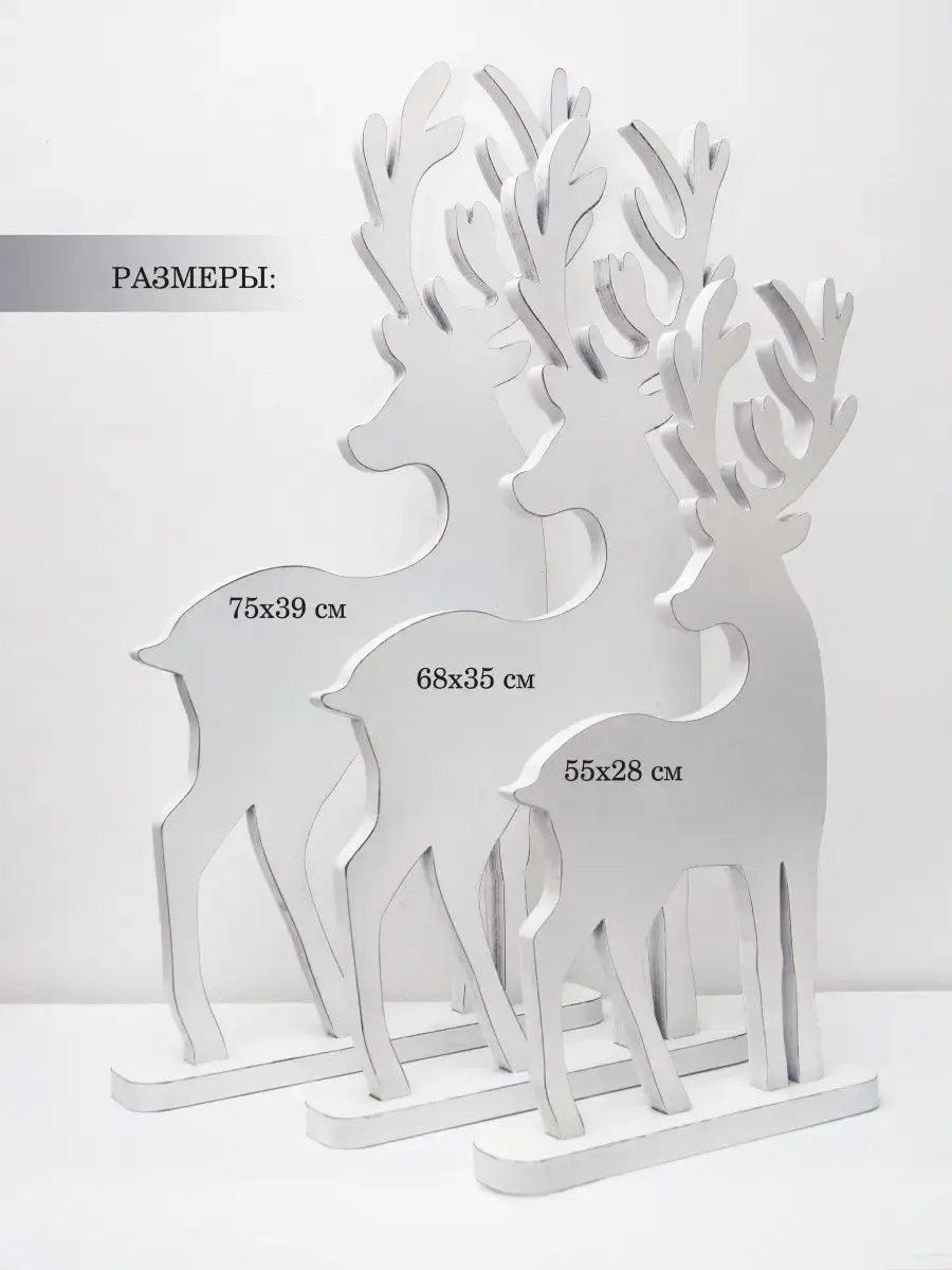 Набор декоративных фигур "Новогодние олени" для оформления интерьера. Оленей можно поставить рядом с елкой или камином, украсить светодиодными гирляндами. Статуэтки тяжелые и достаточно устойчевые. Подарки для детей на их фоне буду выглядеть особенно празднично. Размеры 73х38 см, 66х33 см, 53х28 см (смотри описание к каждому комплекту), выполнены из МДФ 20мм., покрашены акриловой эмалью с эффектом старения и дополнены декоративными бантиками.