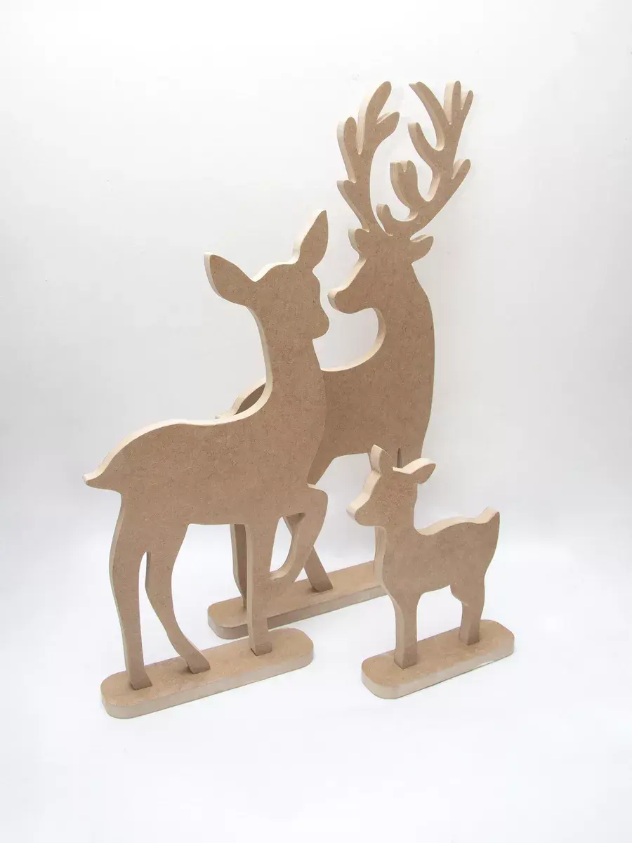 Набор декоративных фигур "Новогодние олени" для оформления интерьера. Оленей можно поставить рядом с елкой или камином, украсить светодиодными гирляндами. Статуэтка тяжелая и достаточно устойчивая. Подарки для детей на их фоне буду выглядеть особенно празднично. Размер 57*30 см (смотри описание к каждому комплекту), выполнена из МДФ 20мм., не окрашена