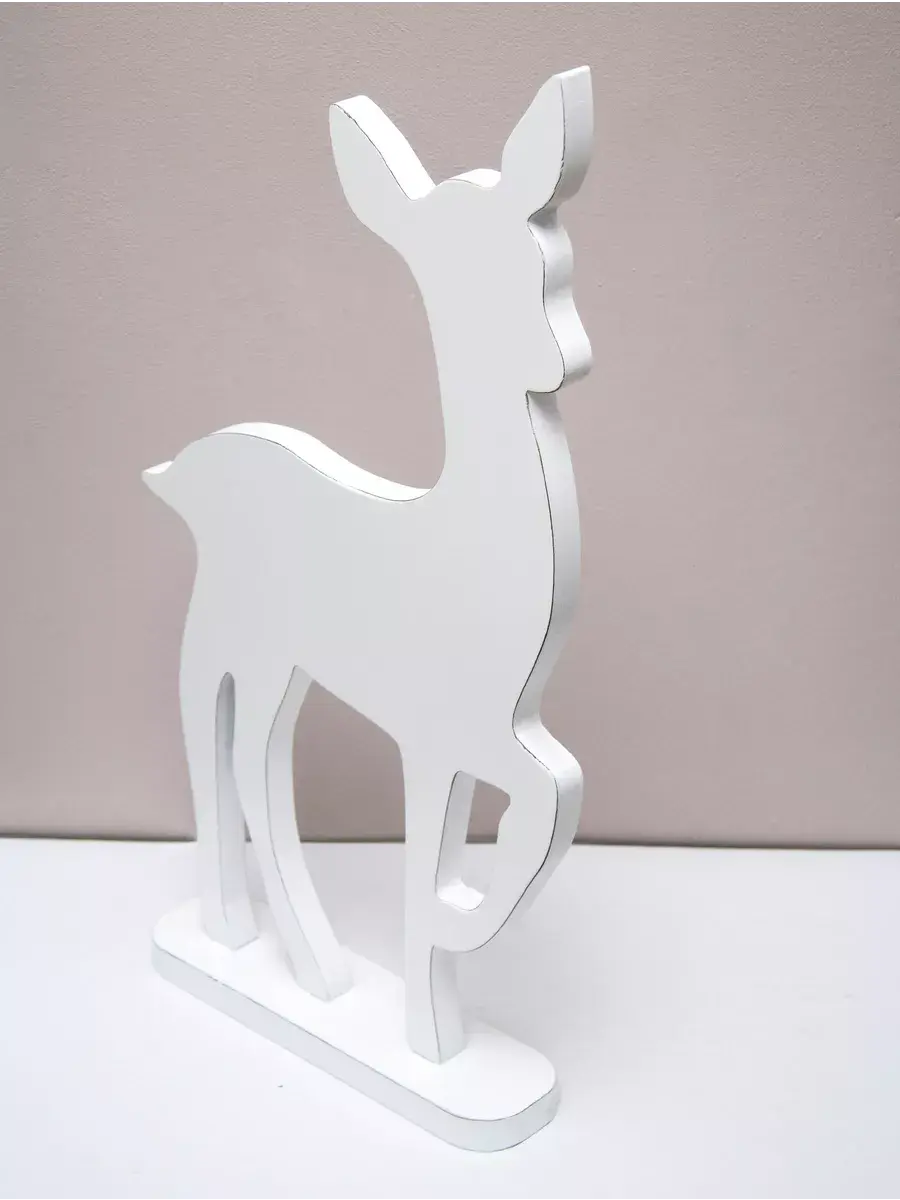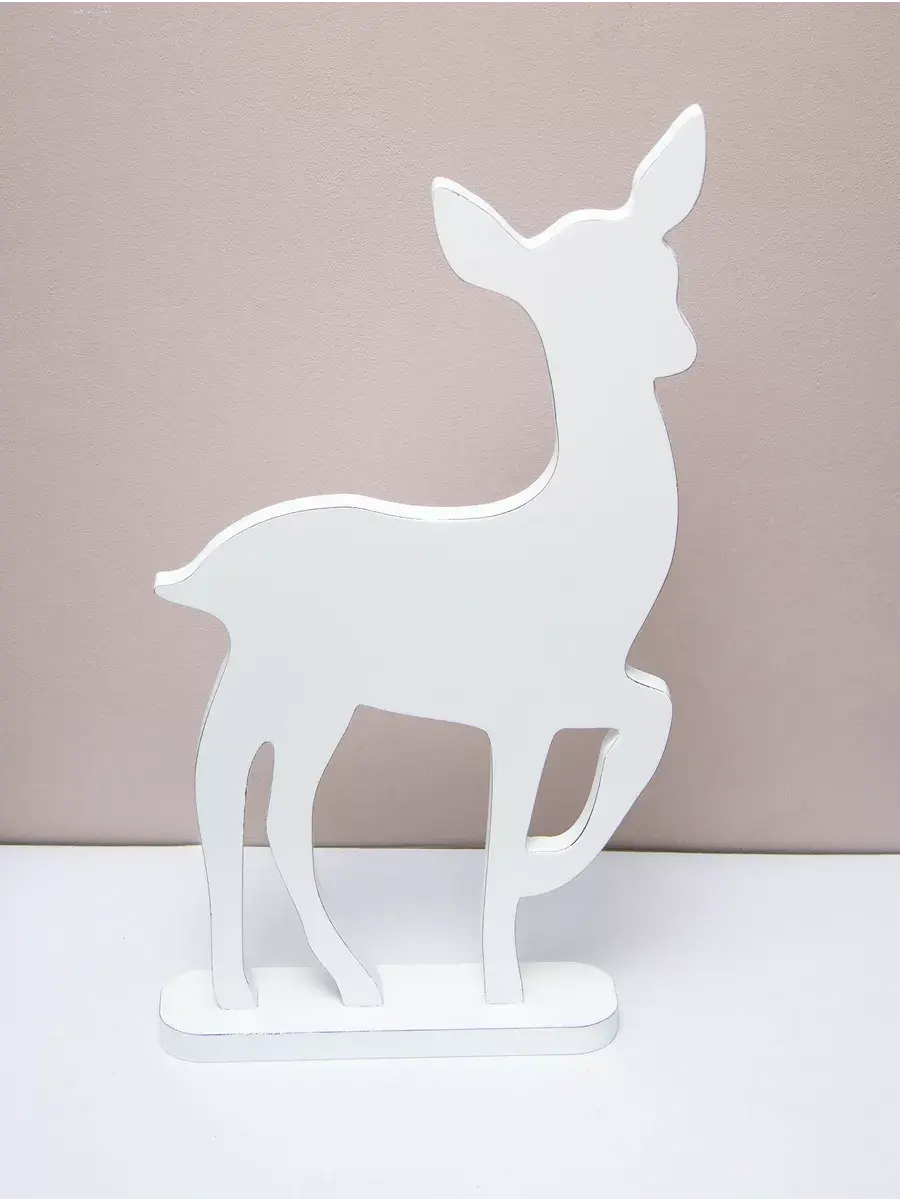 Для набора декоративных фигур "Новогодние олени" для оформления интерьера. Оленей можно поставить рядом с елкой или камином, украсить светодиодными гирляндами. Статуэтки тяжелые и достаточно устойчивые. Подарки для детей на их фоне буду выглядеть особенно празднично. Выполнена из МДФ 20мм., окрашена акриловой эмалью с эффектом старения.
