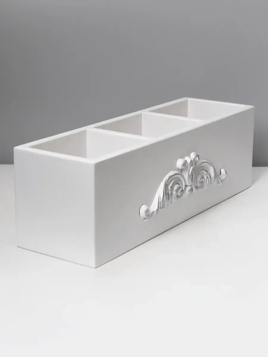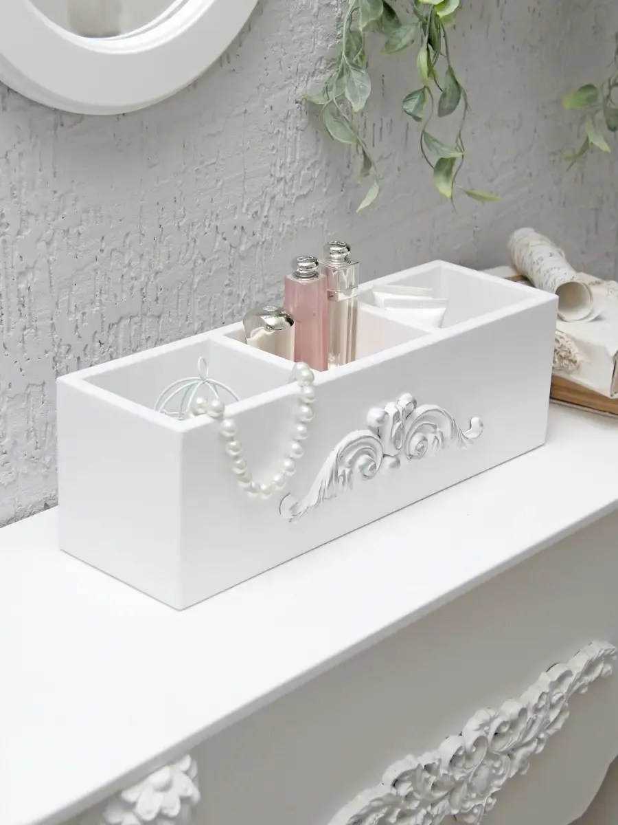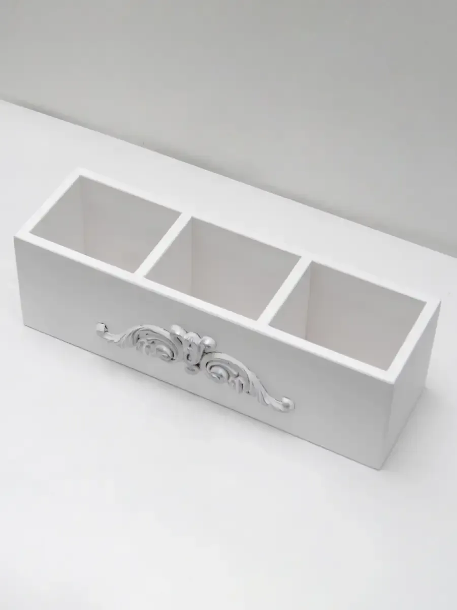 Наш универсальный ящик для хранения с тремя открытыми отделениями - это настоящая находка для ценителей домашнего пространства, удобства и эстетики. Декоративный короб для хранения поможет обеспечить порядок в ваших вещах. Деревянный органайзер "Прованс" можно применять как контейнер для хранения мелких предметов, аксессуаров, декоративной косметики, ванных принадлежностей, инструментов для рукоделия, косметических средств, расчесок,маникюрных принадлежностей, канцелярии.Многофункциональный ящик станет отличным решением для организации хранения в любой комнате вашей квартиры или дома: спальне,кухне, прихожей,гостиной, детской. Красивая, компактная,но вместительная подставка для вещей станет отличным подарком на любой праздник: новый год, день рождения, 8 марта, новоселье.Размер ящика 33х10х10 см. Материал изделия - березовая фанера.