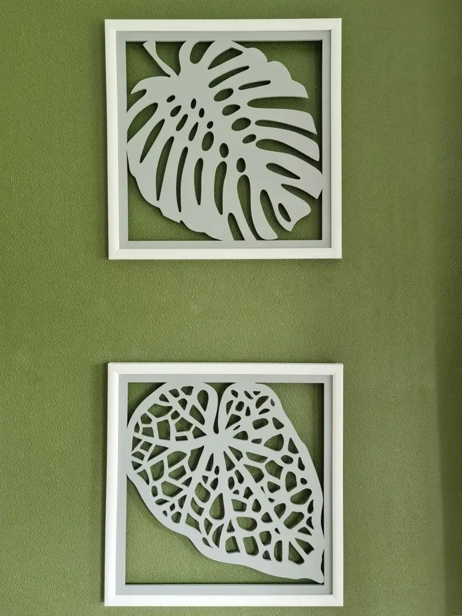 Декоративные резные настенные панно "Листья" комплект из 2х штук. Декор на стену изготовлен из высококачественной березовой фанеры 4мм, окрашен акриловым лаком. Настенные деревянные панно "Листья", декор для комнаты в современном стиле. Деревянные резные листья оформлены в лаконичную багетную раму из полиуретана. Декор для интерьера дома и дачи. Декорация на стену спальни, прихожей, украшение для кухни и ванной комнаты. Панно легкие и изящные, преобразят интерьер комнат. Размер одного панно 33х33 см. Декорацию можно разместить по горизонтали или вертикали, вся настенная декорация ширина 70 см х высота 30см.. Декор для дома можно комбинировать с другими расцветками , создавая домашнюю галерею. С обратной стороны зубчатый крепеж, крепление для стены в комплекте.