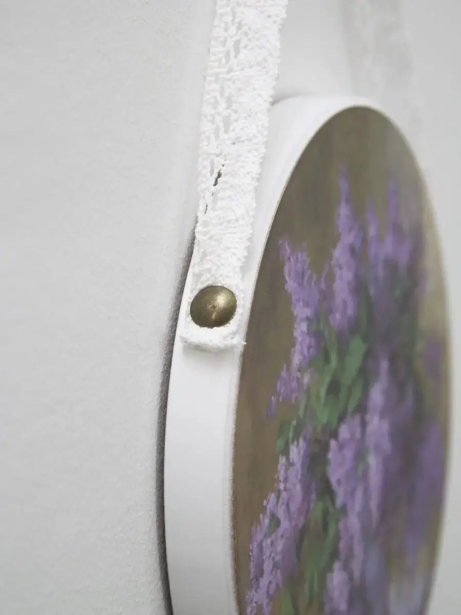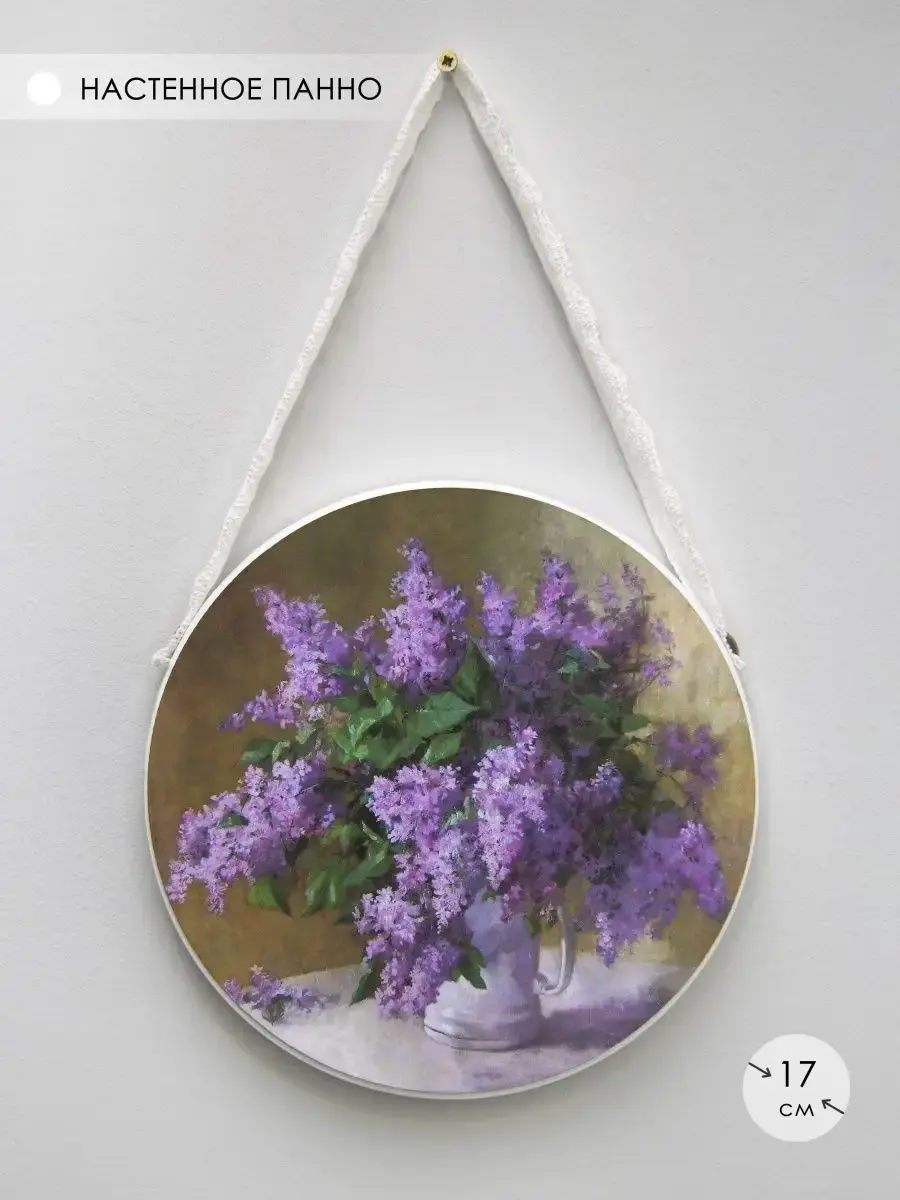 Панно на стену изготовлено из МДФ 16 мм, печать на бумаге, покрытой ламинацией для защиты изображения - декор можно протирать влажной тканью. Диаметр панно без ленты 17 см. Панно на ленте добавит изящества интерьеру кухни, спальни, прихожей, гостиной. Модуль панно можно использовать как самостоятельный элемент декора, так и в сочетании с другими панно серий "Птички" и "Райский сад".