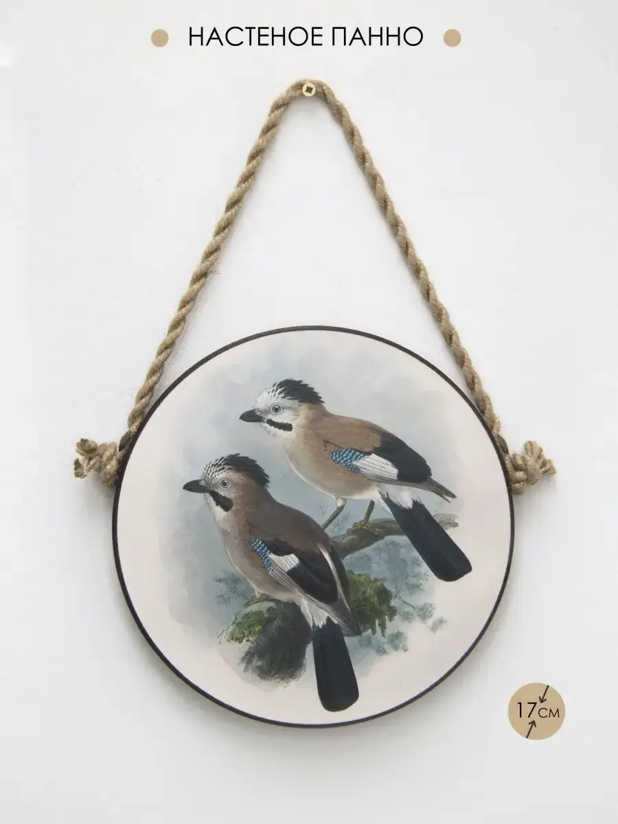 Панно круглое на бечевке "Птички" 17 см от Elenadecor станет оригинальным и аккуратным украшением для вашего интерьера. Его небольшой размер идеально впишется в гостиную, детскую, спальню, прихожую или кухню, добавляя нотку стиля и уюта. Панно выполнено из качественных материалов: бумага ламинированная и МДФ, что гарантирует его долговечность. Благодаря удобной бечевке его легко повесить на стену, создав неповторимую атмосферу в вашем доме. Оригинальный дизайн с изображением птичек добавит свежести и весеннего настроения в любой интерьер.