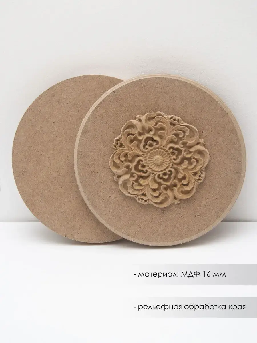 Заготовка для декоративного настенного панно, декора для интерьера преобразит интерьер и добавит уют в ваш дом. Заготовка изготовлена из МДФ 16 мм, декорирована лепниной. Диаметр заготовки 17,5 см. Готовое добавит изящества интерьеру кухни, спальни, прихожей, гостиной. Модуль панно можно использовать как самостоятельный элемент декора, так и в сочетании с другими панно серии "Прованс".