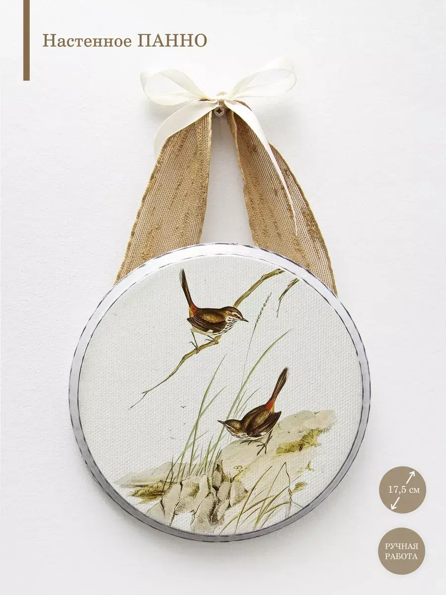 Соберите коллекцию настенных украшений с птицами и цветами. Декоративное настенное панно Elenadecor на холсте станет изысканным дополнением к любому интерьеру. Изготовленное из дерева, печать на натуральном холсте, панно придает пространству уют. Круглая форма панно привносит динамику в дизайн, а рисунок на холсте добавляет нотку оригинальности и стиля. Благодаря простому креплению на ленту, его легко повесить на стену, преобразив любой уголок вашего дома. Это декоративное панно станет прекрасным акцентом в гостиной, спальне или прихожей, создавая атмосферу уюта и гармонии. Деревянная основа придает изделию прочность и долговечность, делая его идеальным выбором для украшения вашего дома или в подарок. крепление для стены в комплекте.