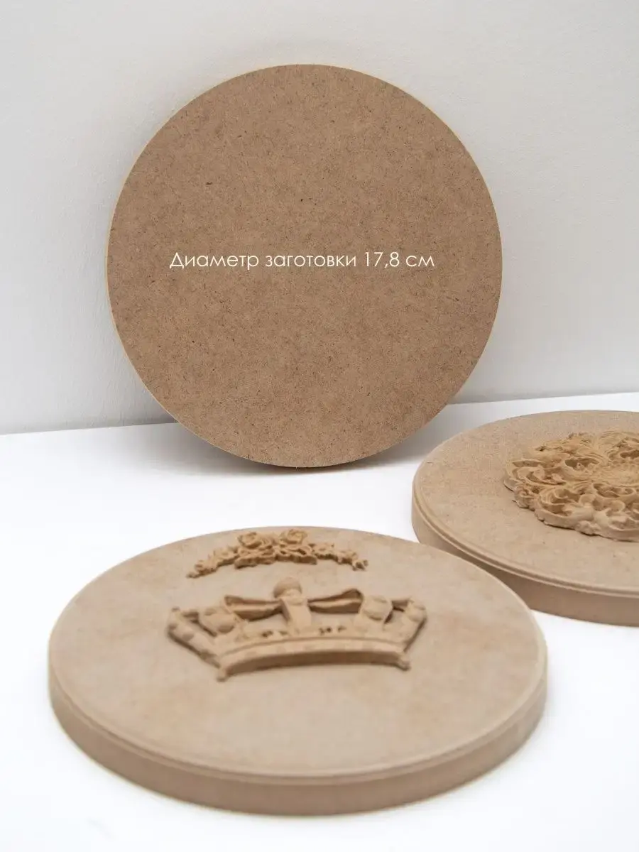 Заготовка для декоративного настенного панно, декора для интерьера преобразит интерьер и добавит уют в ваш дом. Заготовка изготовлена из МДФ 16 мм, декорирована лепниной. Диаметр заготовки 17,5 см. Готовое панно добавит изящества интерьеру кухни, спальни, прихожей, гостиной. Модуль панно можно использовать как самостоятельный элемент декора, так и в сочетании с другими панно серии "Прованс".