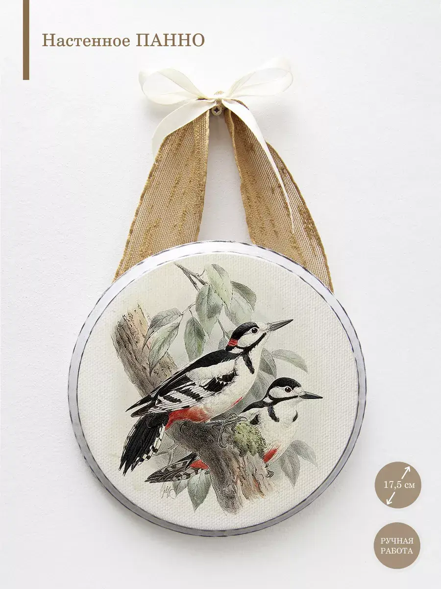 Соберите коллекцию настенных украшений с птицами и цветами. Декоративное настенное панно Elenadecor на холсте станет изысканным дополнением к любому интерьеру. Изготовленное из дерева, печать на натуральном холсте, панно придает пространству уют. Круглая форма панно привносит динамику в дизайн, а рисунок на холсте добавляет нотку оригинальности и стиля. Благодаря простому креплению на ленту, его легко повесить на стену, преобразив любой уголок вашего дома. Это декоративное панно станет прекрасным акцентом в гостиной, спальне или прихожей, создавая атмосферу уюта и гармонии. Деревянная основа придает изделию прочность и долговечность, делая его идеальным выбором для украшения вашего дома или в подарок. крепление для стены в комплекте.