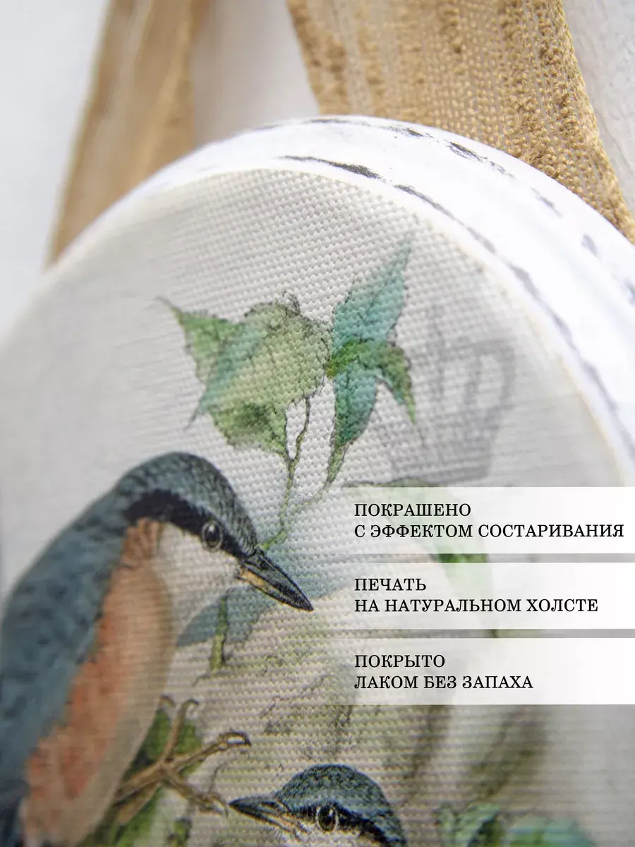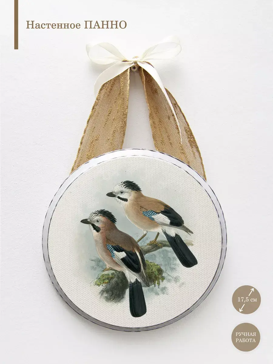 Соберите коллекцию настенных украшений с птицами и цветами. Декоративное настенное панно Elenadecor на холсте станет изысканным дополнением к любому интерьеру. Изготовленное из дерева, печать на натуральном холсте, панно придает пространству уют. Круглая форма панно привносит динамику в дизайн, а рисунок на холсте добавляет нотку оригинальности и стиля. Благодаря простому креплению на ленту, его легко повесить на стену, преобразив любой уголок вашего дома. Это декоративное панно станет прекрасным акцентом в гостиной, спальне или прихожей, создавая атмосферу уюта и гармонии. Деревянная основа придает изделию прочность и долговечность, делая его идеальным выбором для украшения вашего дома или в подарок. крепление для стены в комплекте.