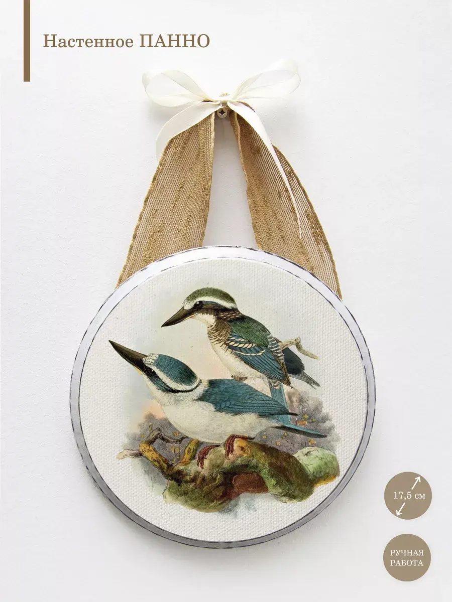 Соберите коллекцию настенных украшений с птицами и цветами. Декоративное настенное панно Elenadecor на холсте станет изысканным дополнением к любому интерьеру. Изготовленное из дерева, печать на натуральном холсте, панно придает пространству уют. Круглая форма панно привносит динамику в дизайн, а рисунок на холсте добавляет нотку оригинальности и стиля. Благодаря простому креплению на ленту, его легко повесить на стену, преобразив любой уголок вашего дома. Это декоративное панно станет прекрасным акцентом в гостиной, спальне или прихожей, создавая атмосферу уюта и гармонии. Деревянная основа придает изделию прочность и долговечность, делая его идеальным выбором для украшения вашего дома или в подарок. крепление для стены в комплекте.