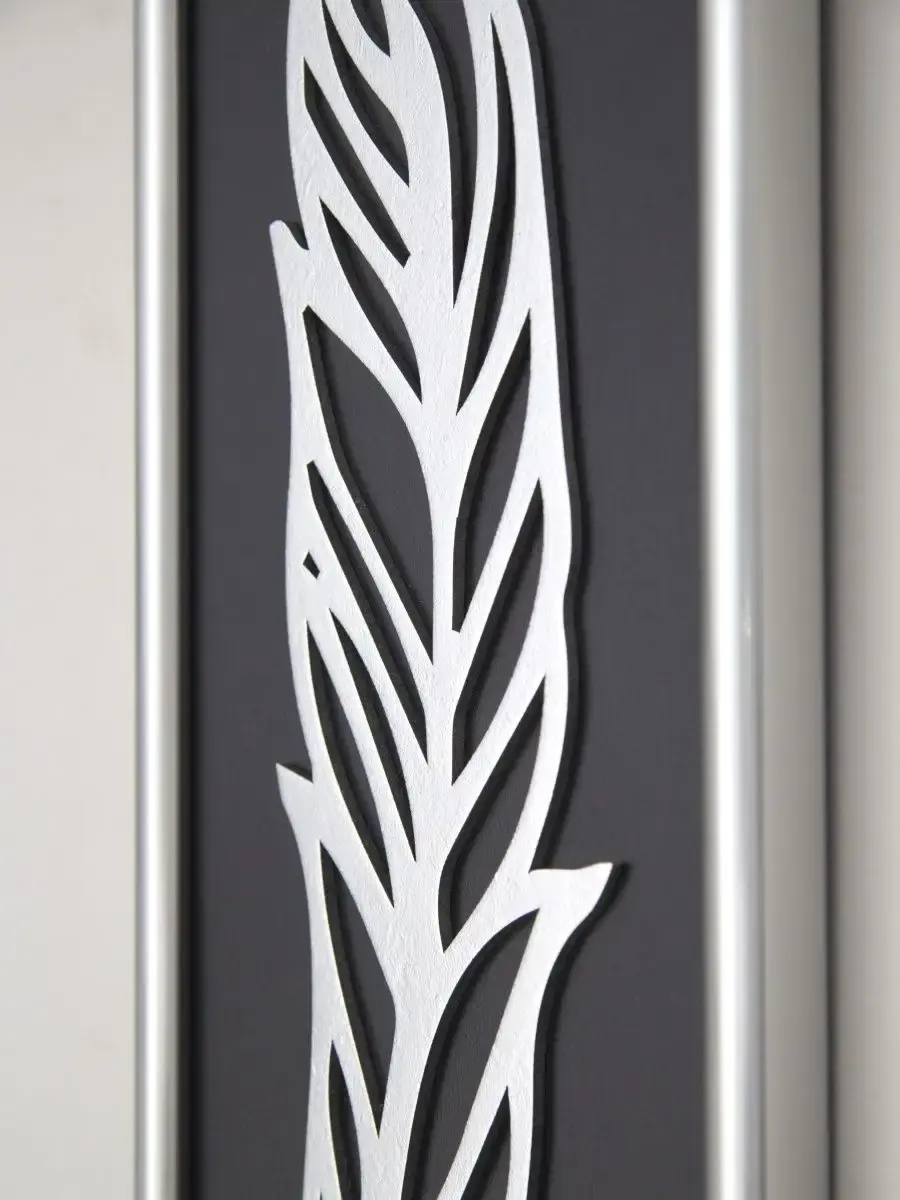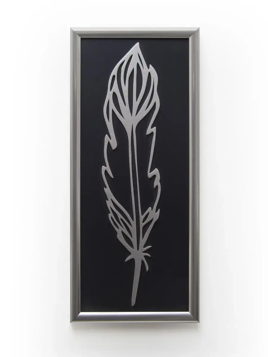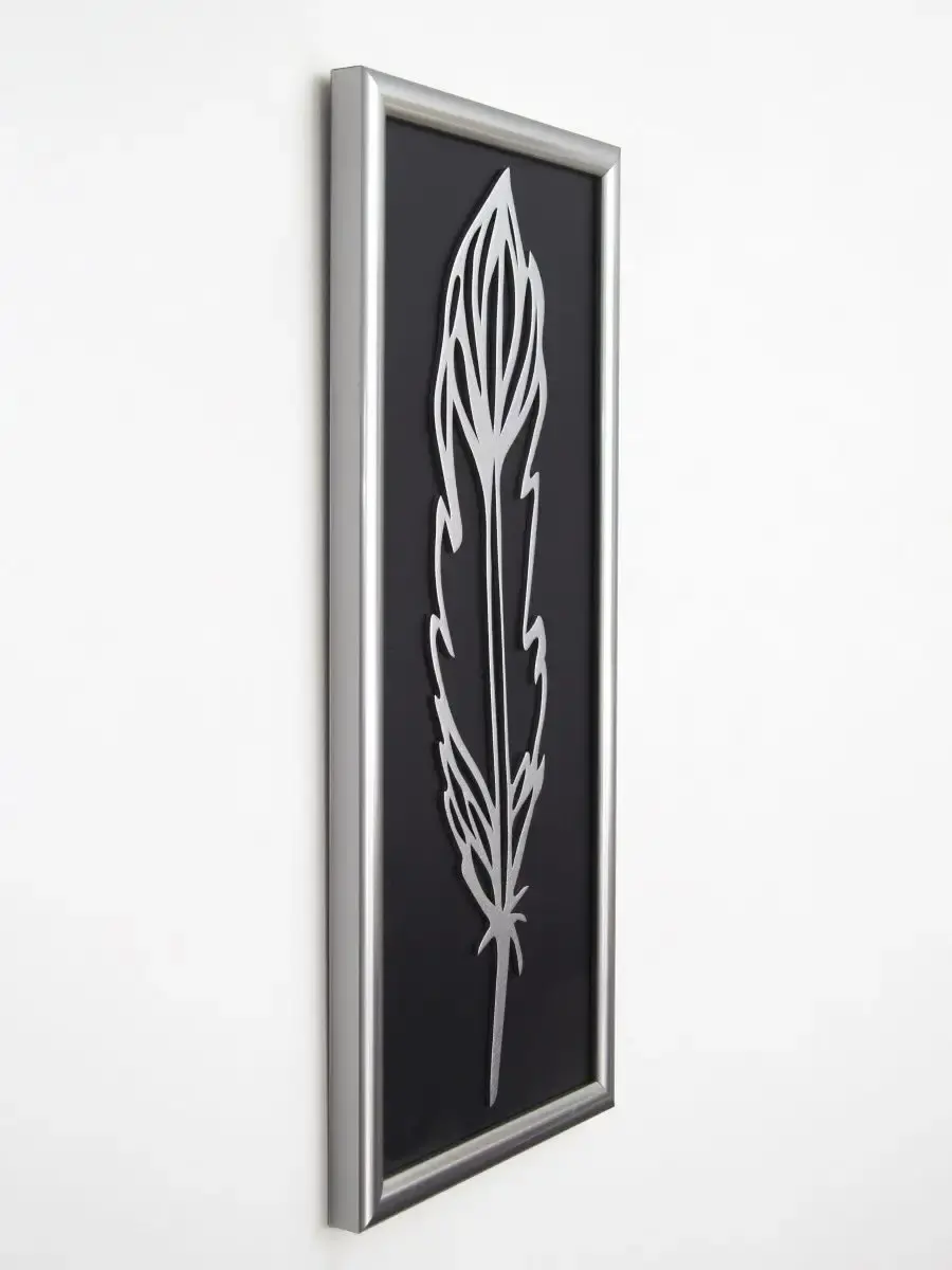 Изысканный настенный декор в современном стиле. Объемные резные перья покрыты серебристой патиной и оформлены в серебристую раму. Панно настенные подходят для создания композиции из 2х или 3х штук.Размер панно 18х40 см. Крепление для стены в комплекте.