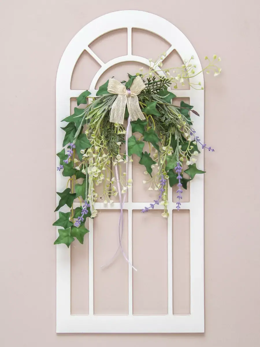 Украшение настенное для интерьера с искусственными интерьерными цветами . Композиция настенная с деревянным окошком с цветами, размер окна 28*60 см. Окраска в один слой акриловой краской с эффектом старения.
