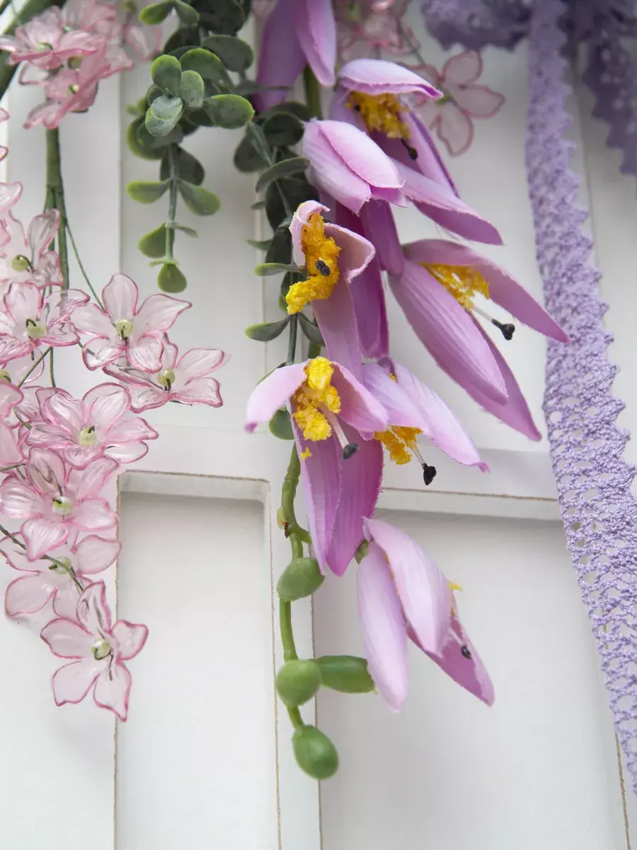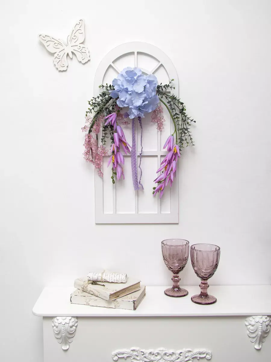 Крепление на зубчатый крепеж , саморез для стены в комплекте. Отличное украшение к зеркалу, в прихожей, ванной или для кухни, где живым цветам недостаточно света. Всегда будут радовать и добавлять уюта в дом. По желанию самостоятельно можно дополнить светодиодными нитями (светодиодной гирляндой). Уход : обдуть феном, протирать влажной тканью , обработать антистатиком..