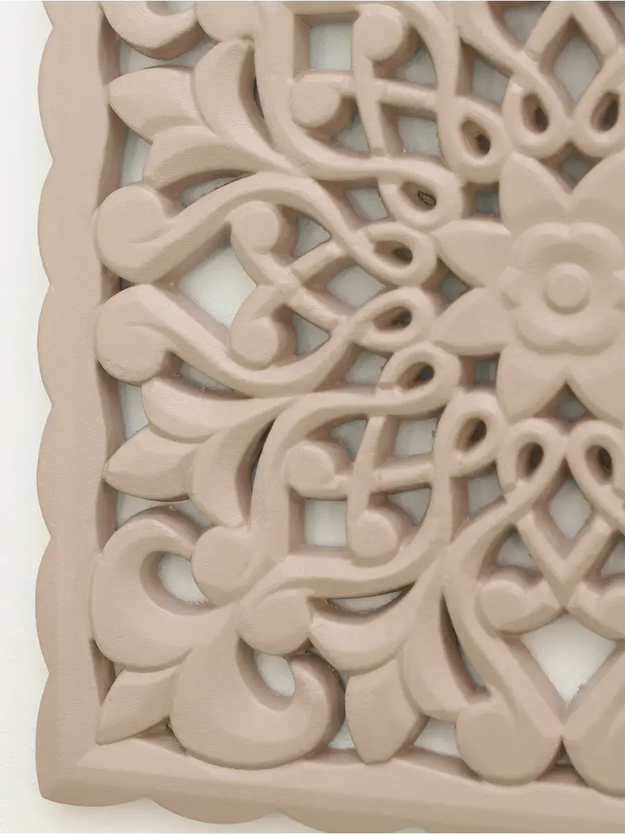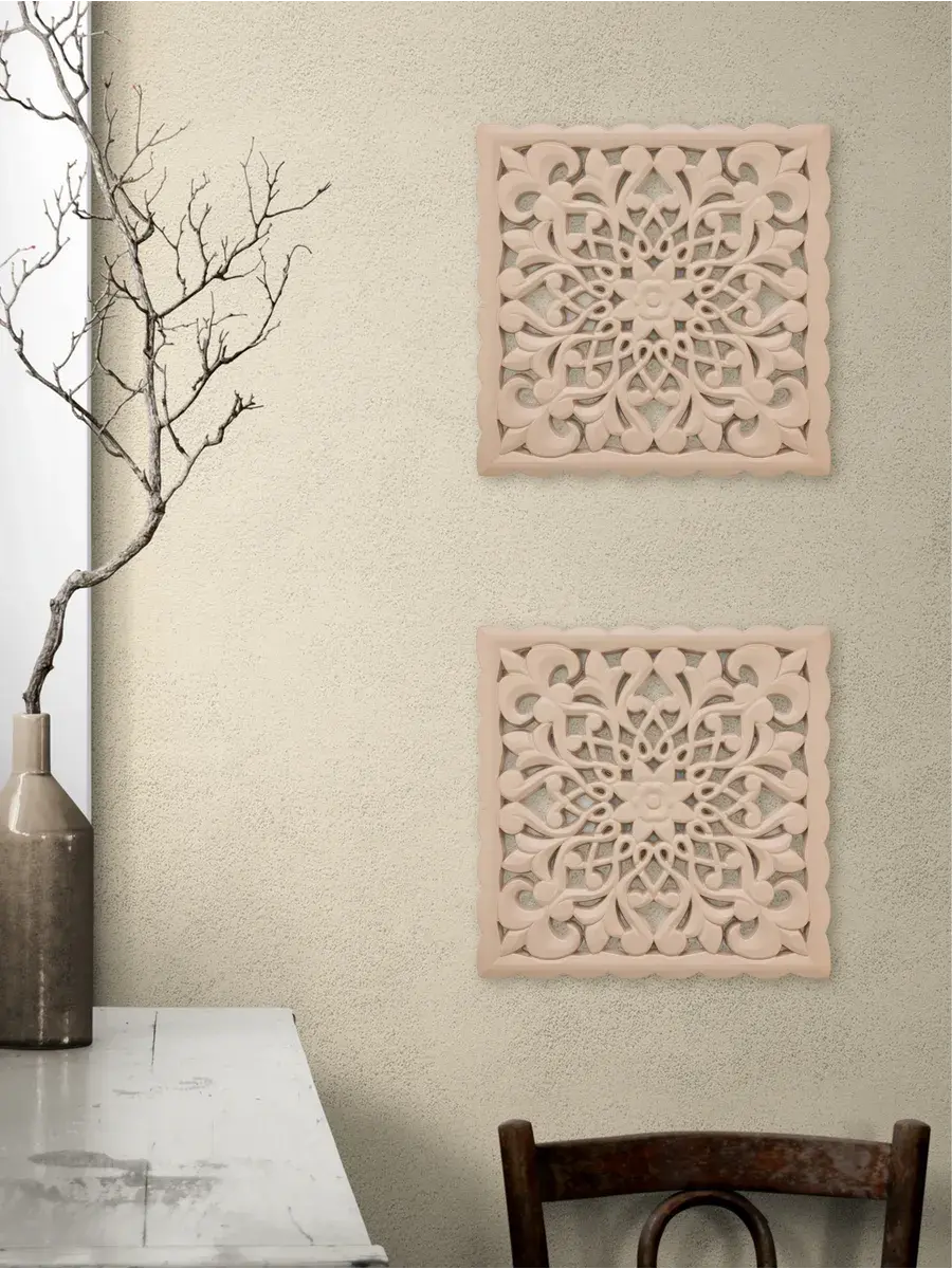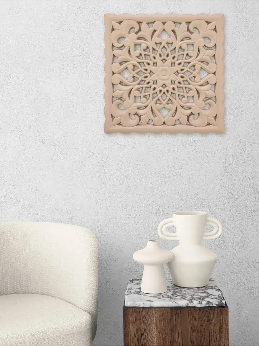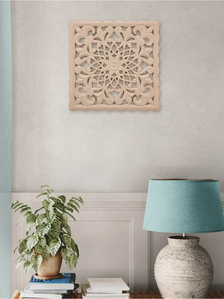 Настенное резное панно 29*29 см. Из нескольких панно можно собрать большую композицию. Объемный орнамент окрашен мятно-салатовой акриловой эмалью, что придает ему особый шарм (при желании можно легко перекрасить в любой цвет под Ваш интерьер). Резное настенное панно станет прекрасным украшением стены над изголовьем кровати или большой стены в гостиной. Если комбинировать несколько панно - можно получить удивительную композицию, которая будет притягивать взгляды. Декор для комнаты на стену добавит нотку элегантности и изысканности в гостиной или спальной, в прихожей или на террасе. Панно будет хорошо смотреться как самостоятельный декор, так и в сочетании с другими элементами декора коллекции "Флоренция". Крепление для стены в комплекте.