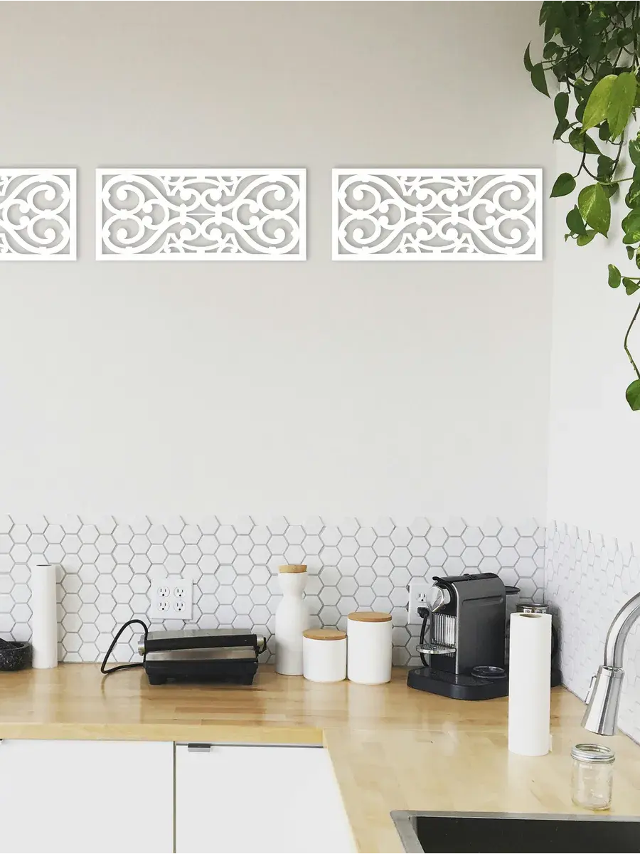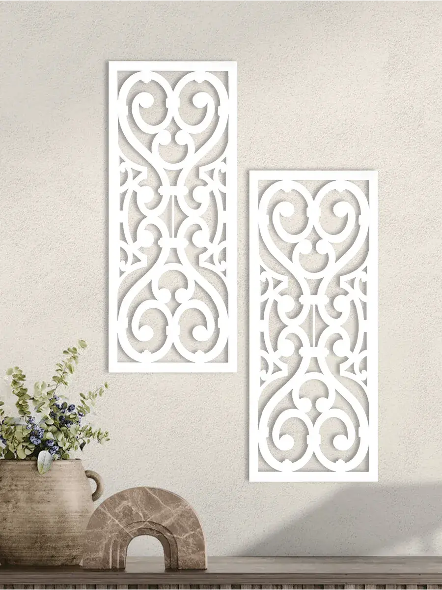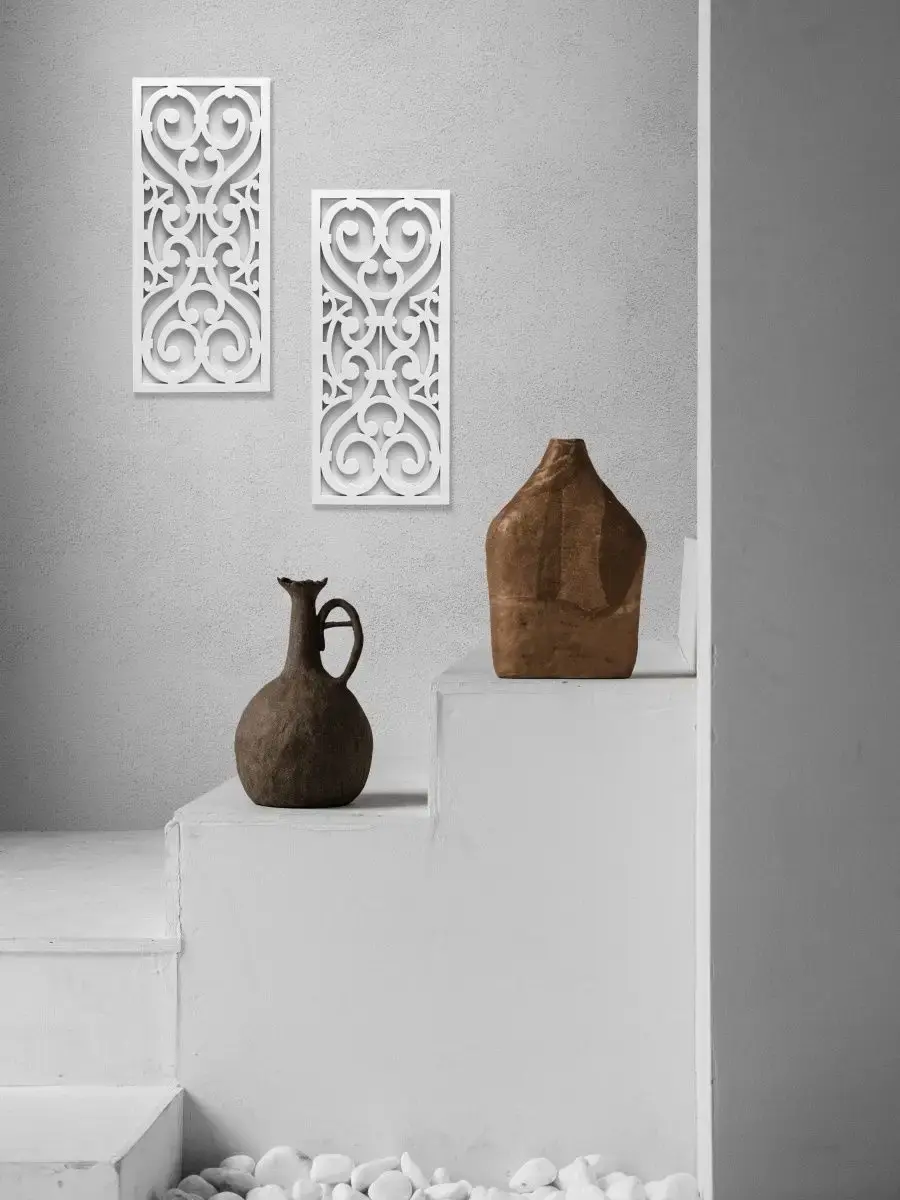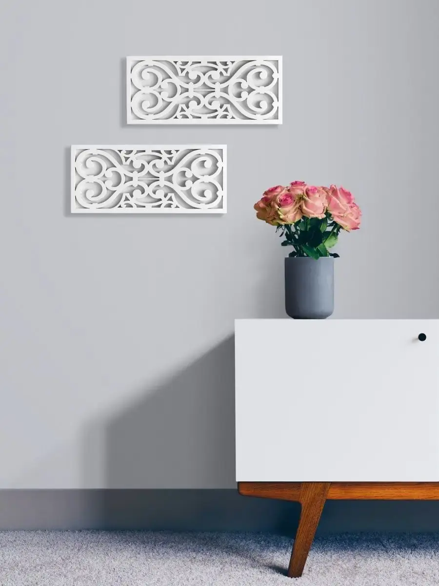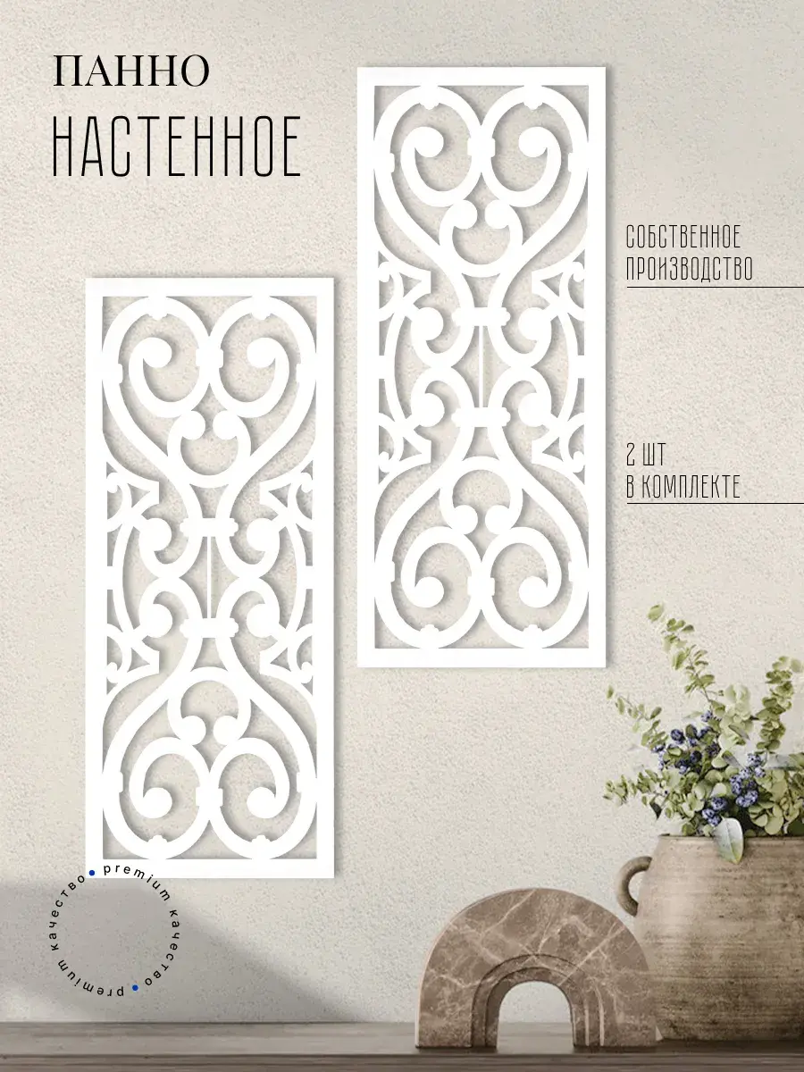 Настенный декор из двух штук узоры. Комплект из двух резных деревянных панно. Изготовлено из мдф 6мм, окрашено акриловой эмалью без запаха. Идеальный способ украсить интерьер любого дома! Наше панно настенное имеет высокое качество и может быть использовано для декорирования стен любого стиля. Оно добавляет цвет и красоту в любое помещение, а также предоставляет огромное количество возможностей для дизайна. Вы можете использовать его для добавления дополнительных элементов декора, а также для украшения интерьера вашего дома. У нас есть панно настенное, которое поможет придать вашему интерьеру индивидуальность и красоту. Эстетичный декор комнаты в виде составного полотна для создания уюта на стенку в гостиную. Стеновые 3д панели помогут в оформлении рабочего кабинета в офисе и дома. Домашний декор украсит квартиру а именно прихожую коридор балкон зал кабинет, спальню, кухню, детской комнаты. Резное панно прекрасный подарок в стиле лофт. Размер одного панно 39х17 см.