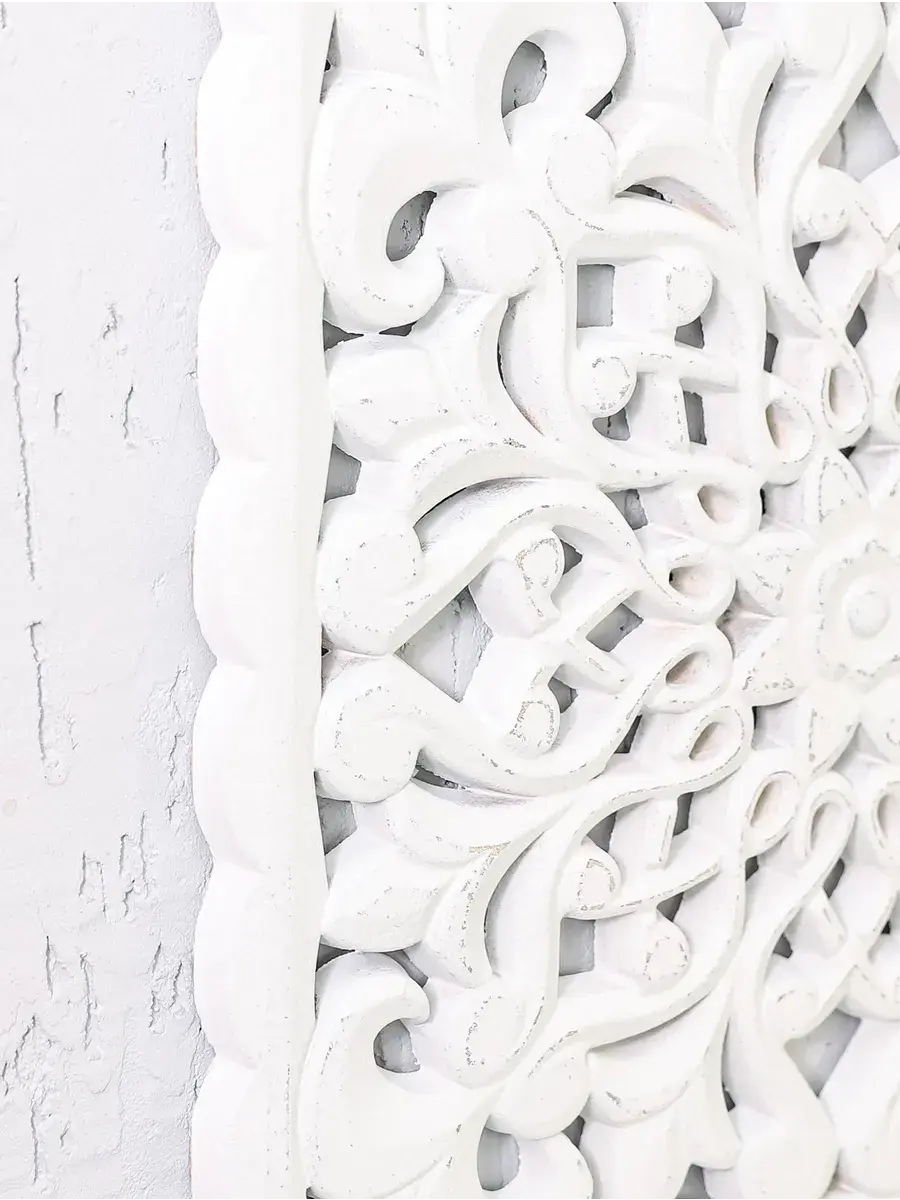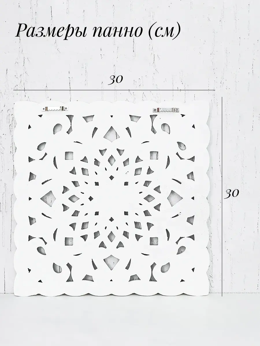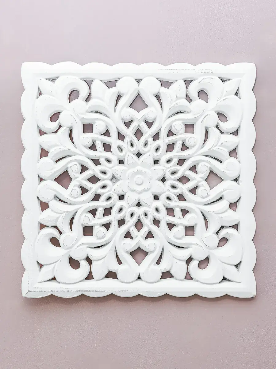 Настенное резное панно 30*30 см. Из нескольких панно можно собрать большую композицию. Объемный орнамент окрашен с эффектом старения, что придает ему особый шарм (при желании можно легко перекрасить в любой цвет под Ваш интерьер). Резное настенное панно станет прекрасным украшением стены над изголовьем кровати или большой стены в гостиной. Если комбинировать несколько панно - можно получить удивительную композицию, которая будет притягивать взгляды. Декор для комнаты на стену добавит нотку элегантности и изысканности в гостиной или спальной, в прихожей или на террасе. Панно будет хорошо смотреться как самостоятельный декор, так и в сочетании с другими элементами декора коллекции "Флоренция". Крепление для стены в комплекте.