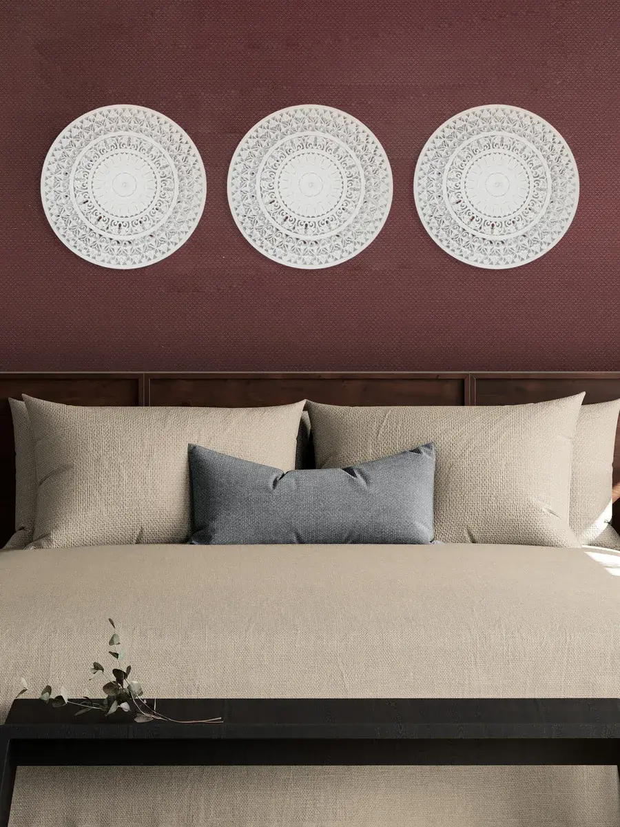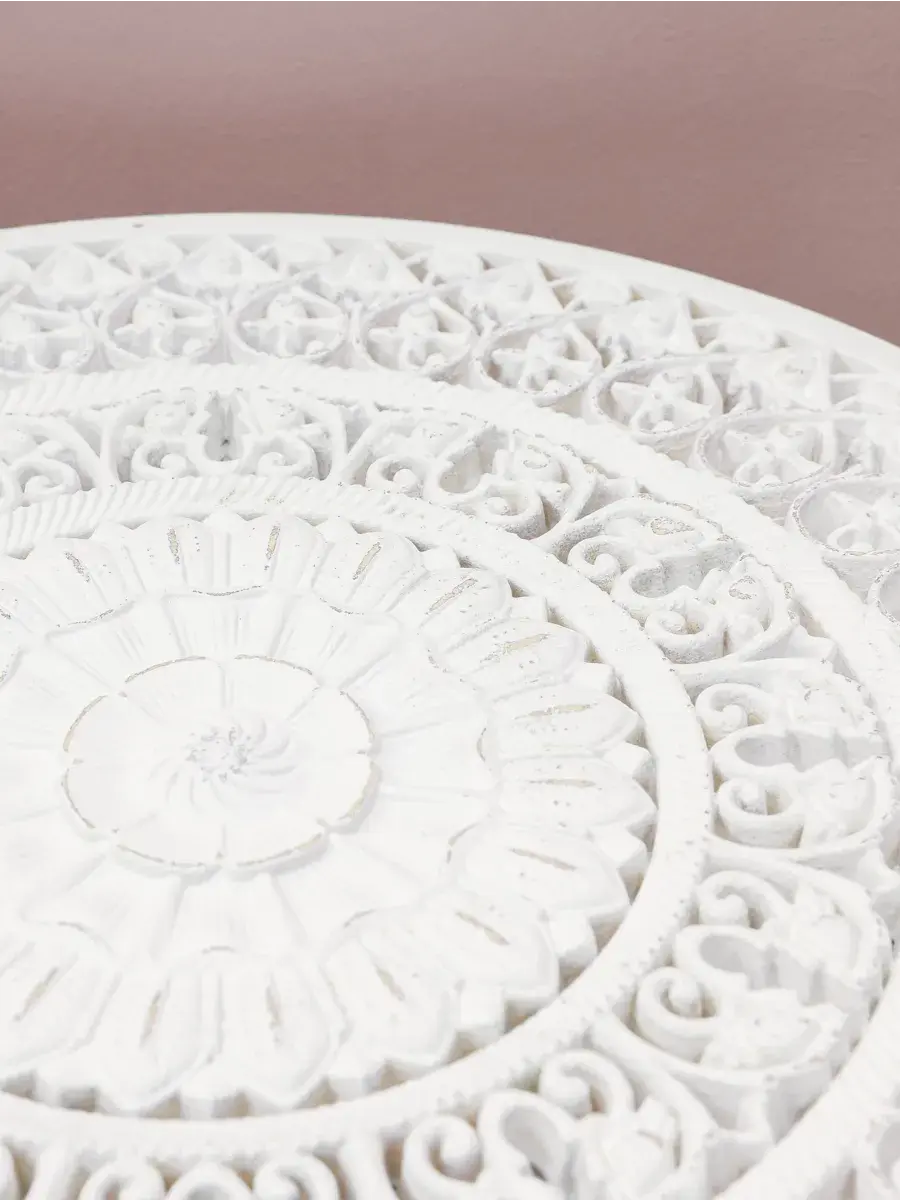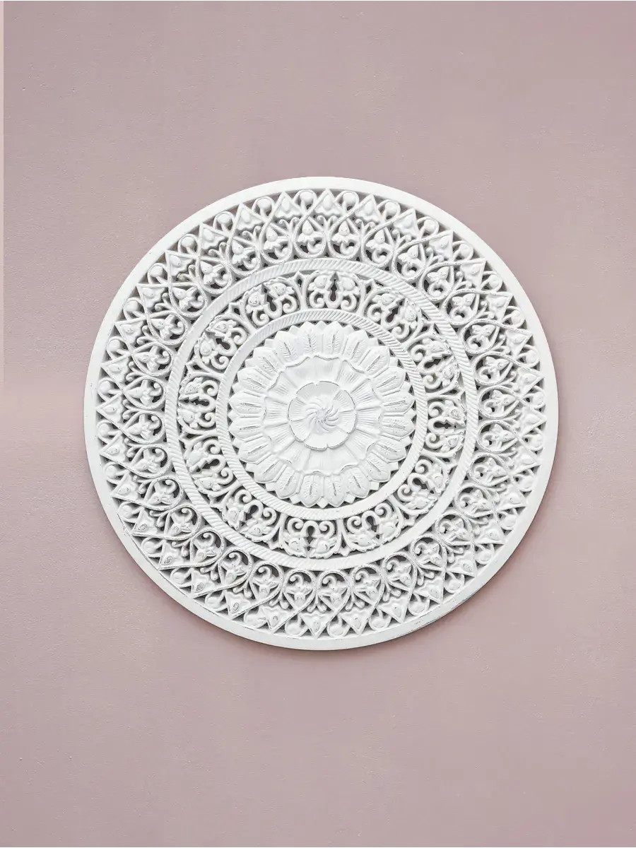 Настенное резное панно диаметром 38 см. Из нескольких панно можно собрать большую композицию. Объемный орнамент окрашен с эффектом старения, что придает ему особый шарм (при желании можно легко перекрасить в любой цвет под Ваш интерьер. Настенный декор станет прекрасным украшением над изголовьем кровати или большой стены в гостиной. Если комбинировать несколько панно - можно получить удивительную композицию, которая будет притягивать взгляды. Декор для комнаты на стену добавит нотку элегантности и изысканности в гостиной или спальной, в прихожей или на террасе. Панно будет хорошо смотреться как самостоятельный декор, так и в сочетании с другими элементами декора коллекции "Флоренция". Крепление для стены в комплекте.
