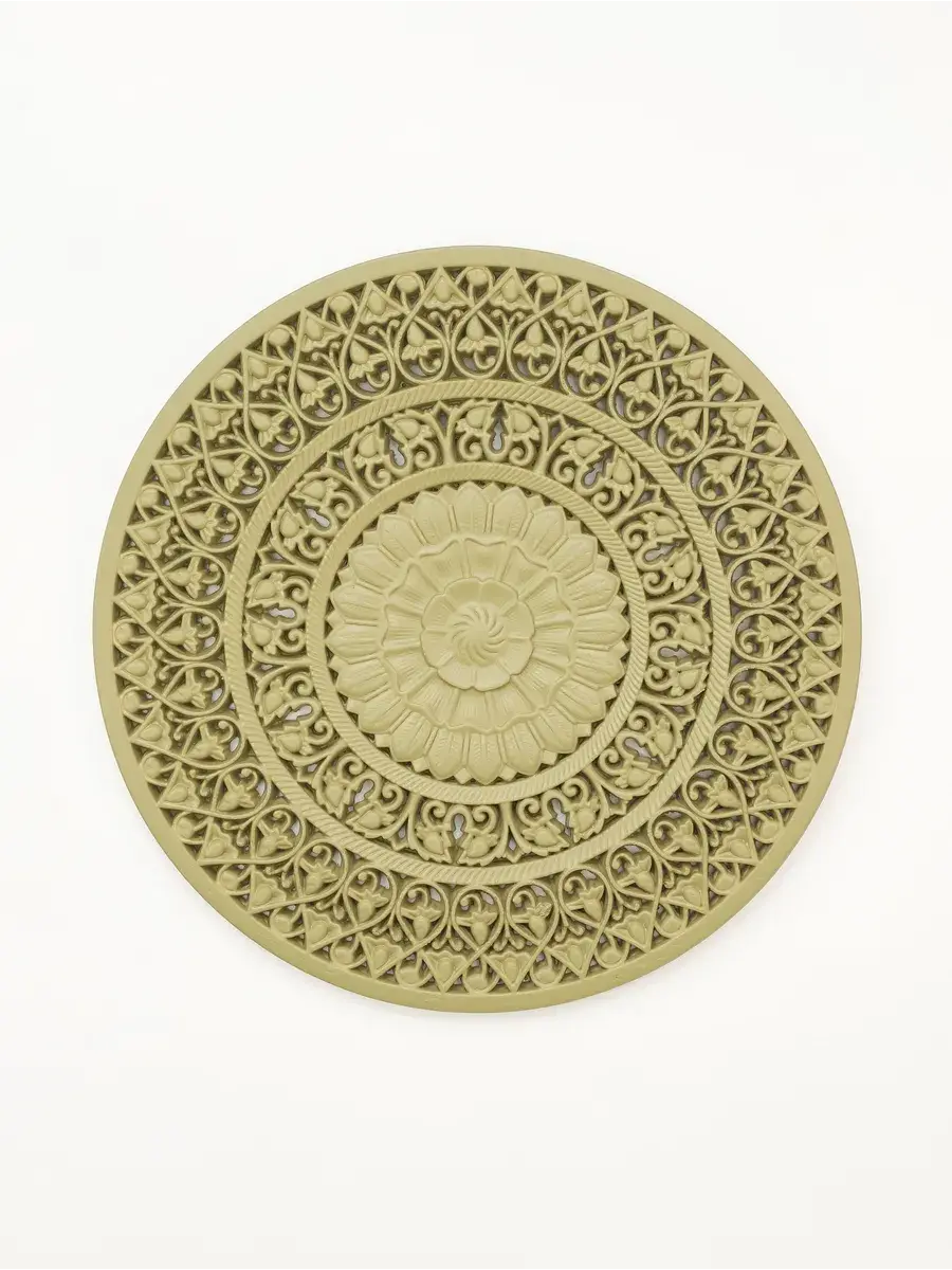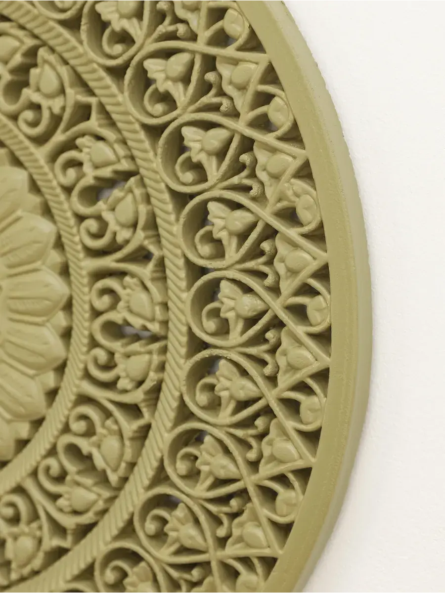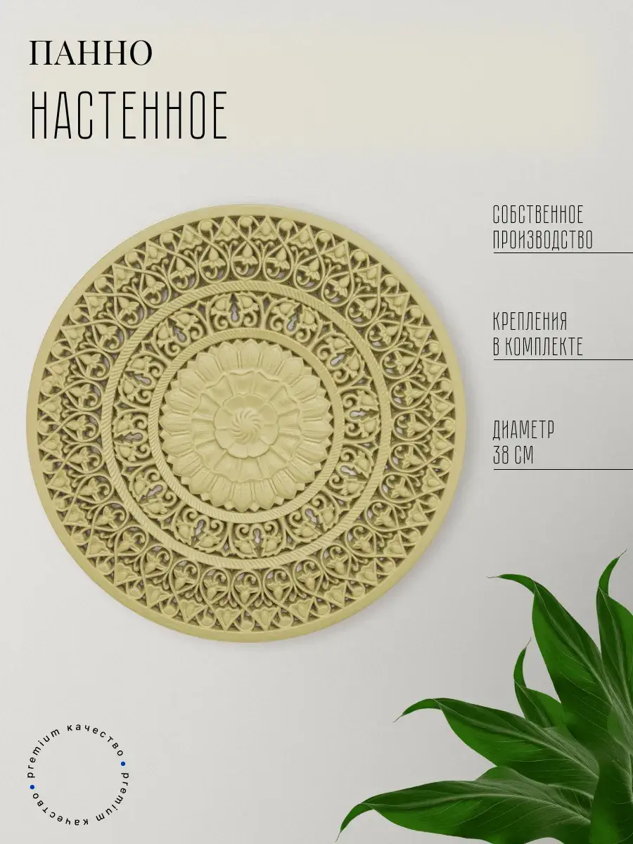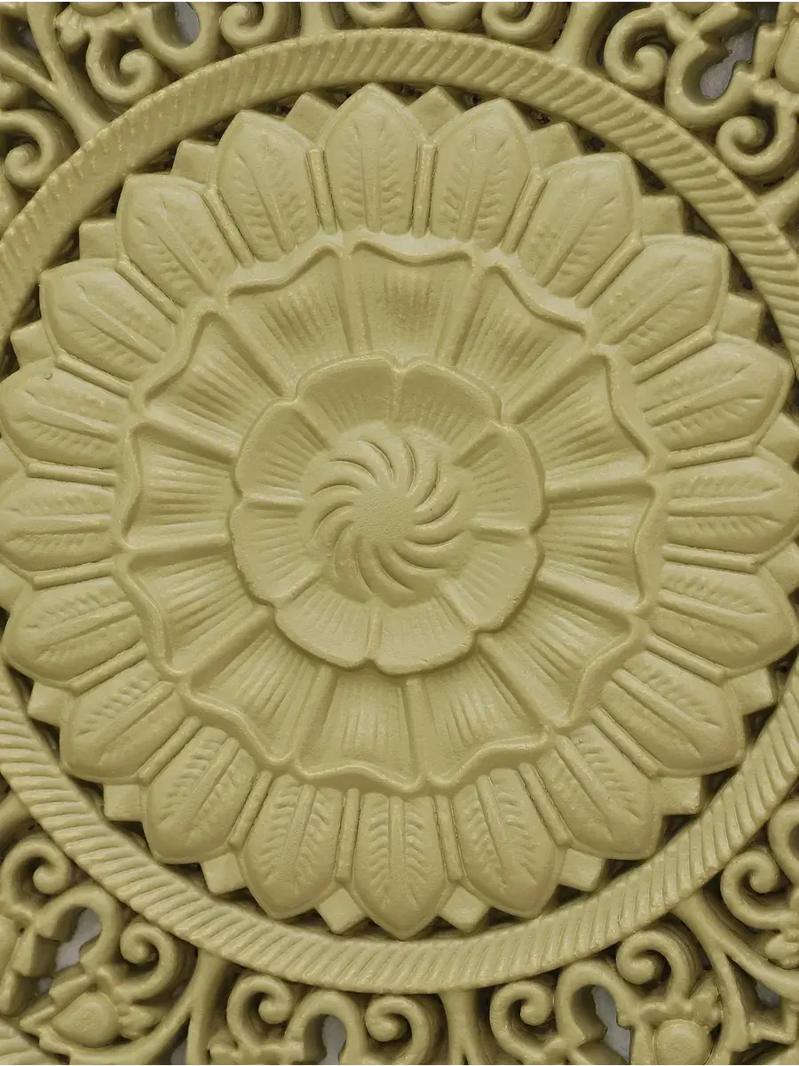 Настенное резное панно диаметром 38 см. Из нескольких панно можно собрать большую композицию. Объемный орнамент окрашен мятно-салатовой акриловой эмалью, что придает ему особый шарм (при желании можно легко перекрасить в любой цвет под Ваш интерьер). Резное настенное панно станет прекрасным украшением стены над изголовьем кровати или большой стены в гостиной. Если комбинировать несколько панно - можно получить удивительную композицию, которая будет притягивать взгляды. Декор для комнаты на стену добавит нотку элегантности и изысканности в гостиной или спальной, в прихожей или на террасе. Панно будет хорошо смотреться как самостоятельный декор, так и в сочетании с другими элементами декора коллекции "Флоренция". Крепление для стены в комплекте.
