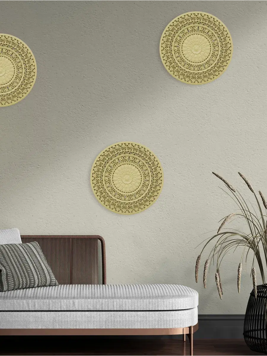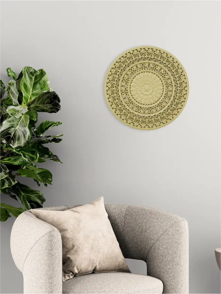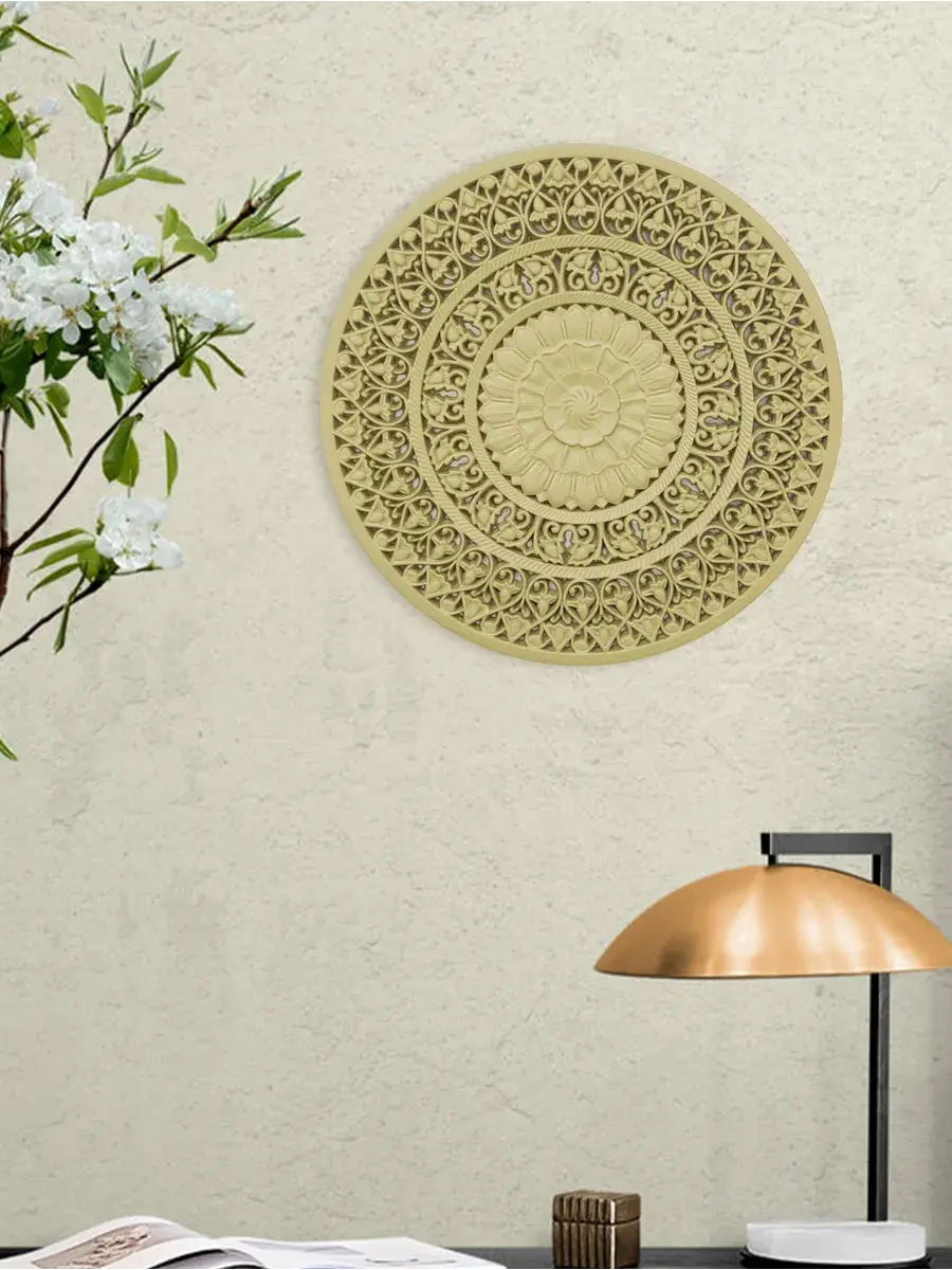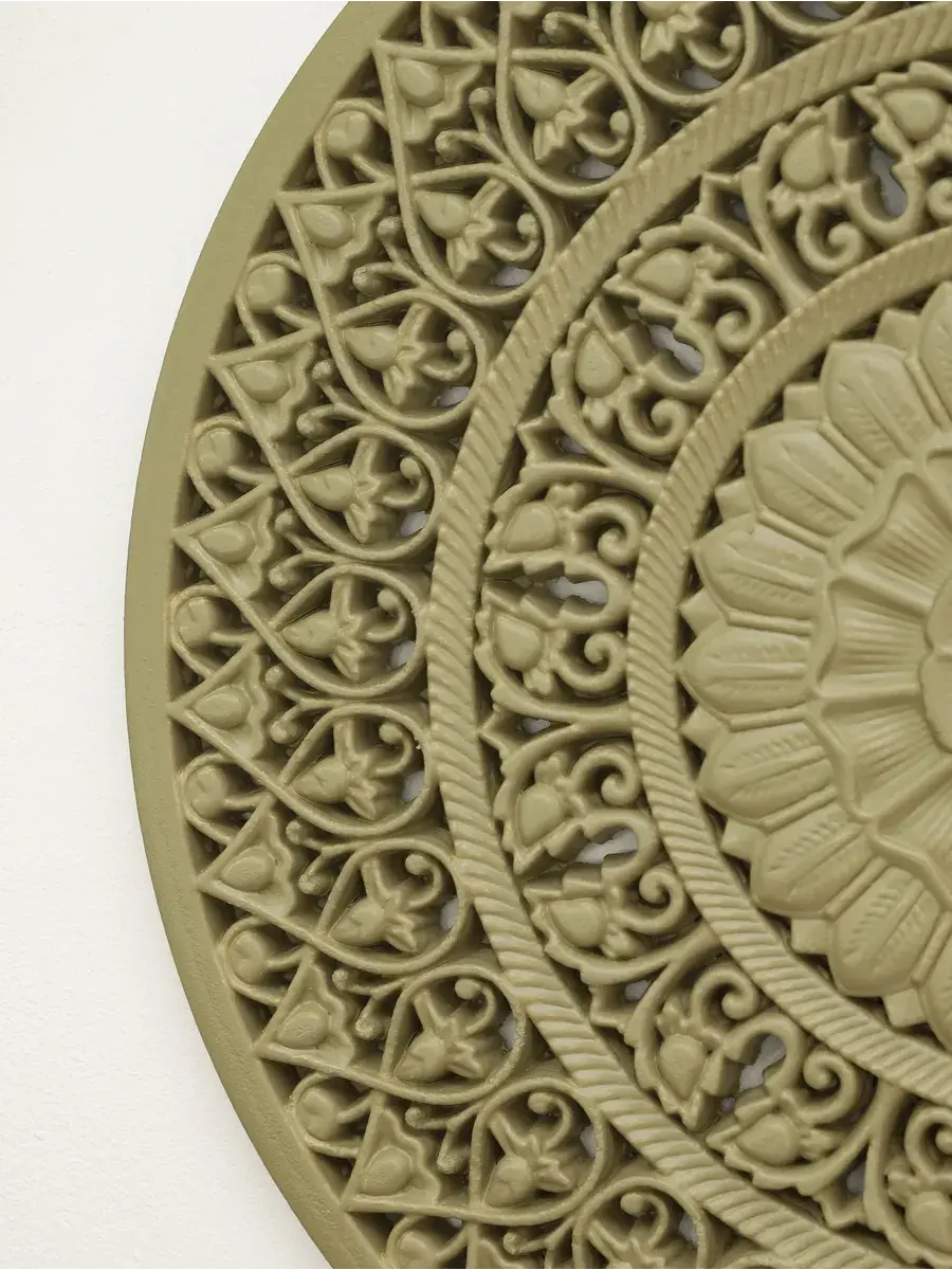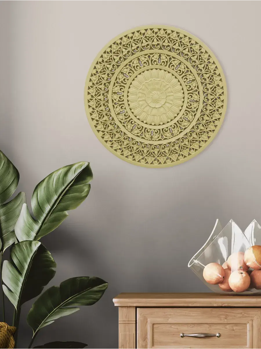 Настенное резное панно диаметром 38 см. Из нескольких панно можно собрать большую композицию. Объемный орнамент окрашен мятно-салатовой акриловой эмалью, что придает ему особый шарм (при желании можно легко перекрасить в любой цвет под Ваш интерьер). Резное настенное панно станет прекрасным украшением стены над изголовьем кровати или большой стены в гостиной. Если комбинировать несколько панно - можно получить удивительную композицию, которая будет притягивать взгляды. Декор для комнаты на стену добавит нотку элегантности и изысканности в гостиной или спальной, в прихожей или на террасе. Панно будет хорошо смотреться как самостоятельный декор, так и в сочетании с другими элементами декора коллекции "Флоренция". Крепление для стены в комплекте.