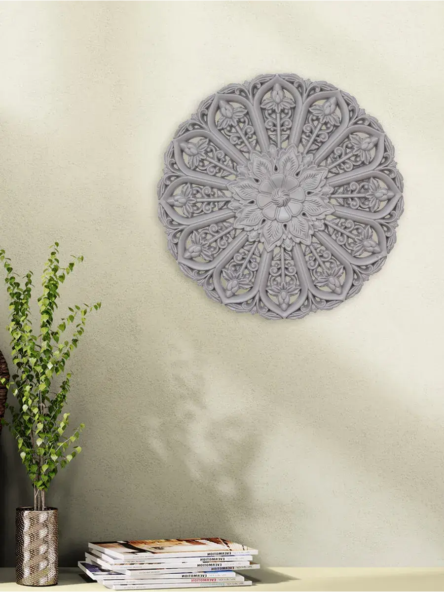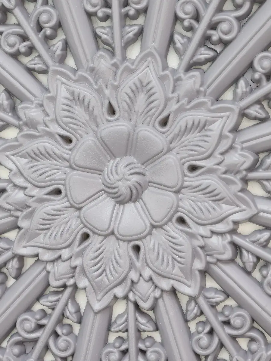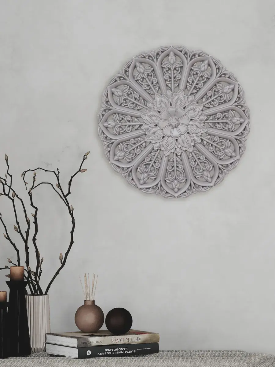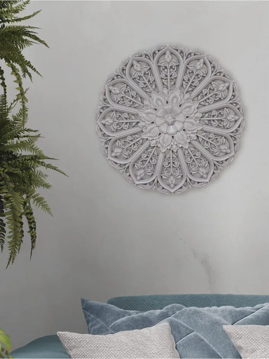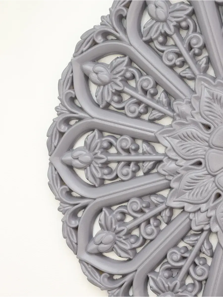 Настенное резное панно диаметром 40 см. Из нескольких панно можно собрать большую композицию. Объемный орнамент окрашен мятно-салатовой акриловой эмалью, что придает ему особый шарм (при желании можно легко перекрасить в любой цвет под Ваш интерьер). Резное настенное панно станет прекрасным украшением стены над изголовьем кровати или большой стены в гостиной. Если комбинировать несколько панно - можно получить удивительную композицию, которая будет притягивать взгляды. Декор для комнаты на стену добавит нотку элегантности и изысканности в гостиной или спальной, в прихожей или на террасе. Панно будет хорошо смотреться как самостоятельный декор, так и в сочетании с другими элементами декора коллекции "Флоренция". Крепление для стены в комплекте.