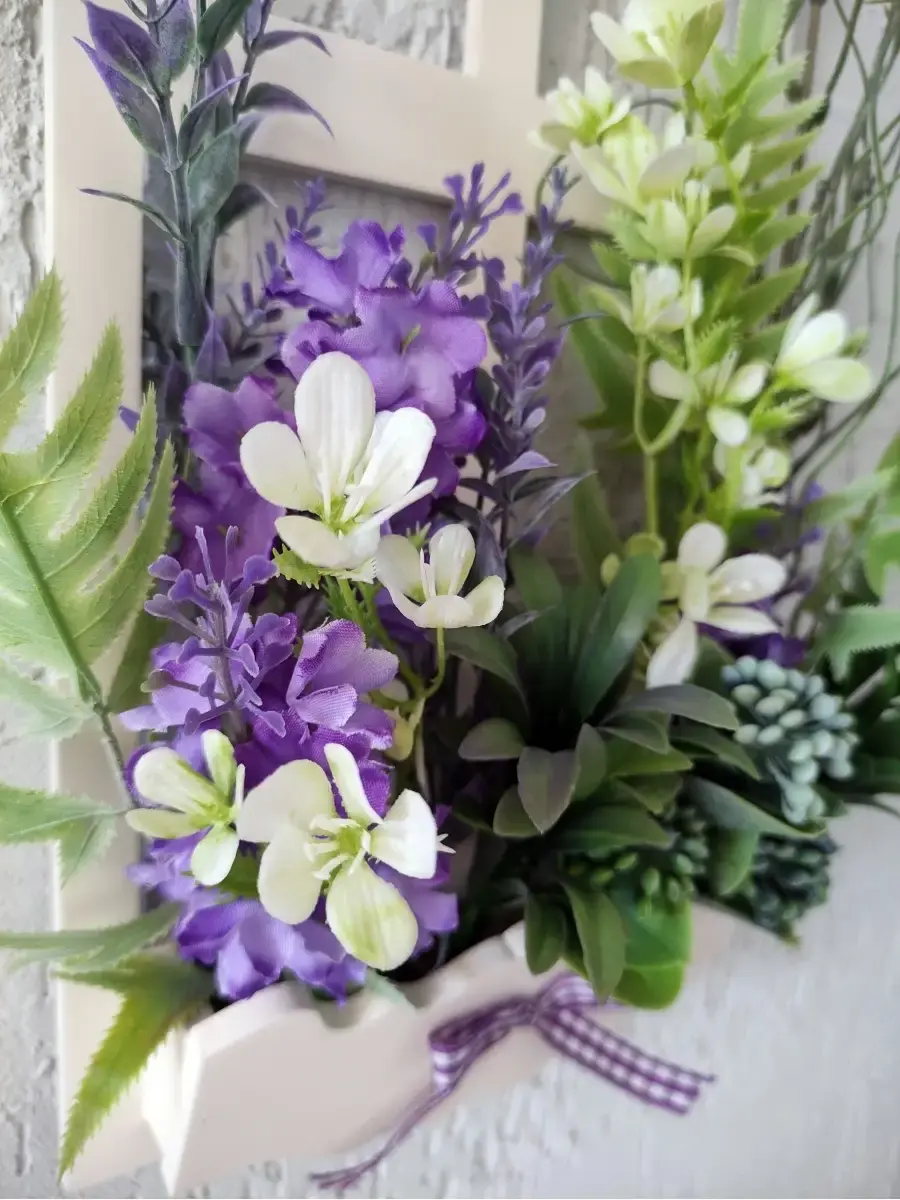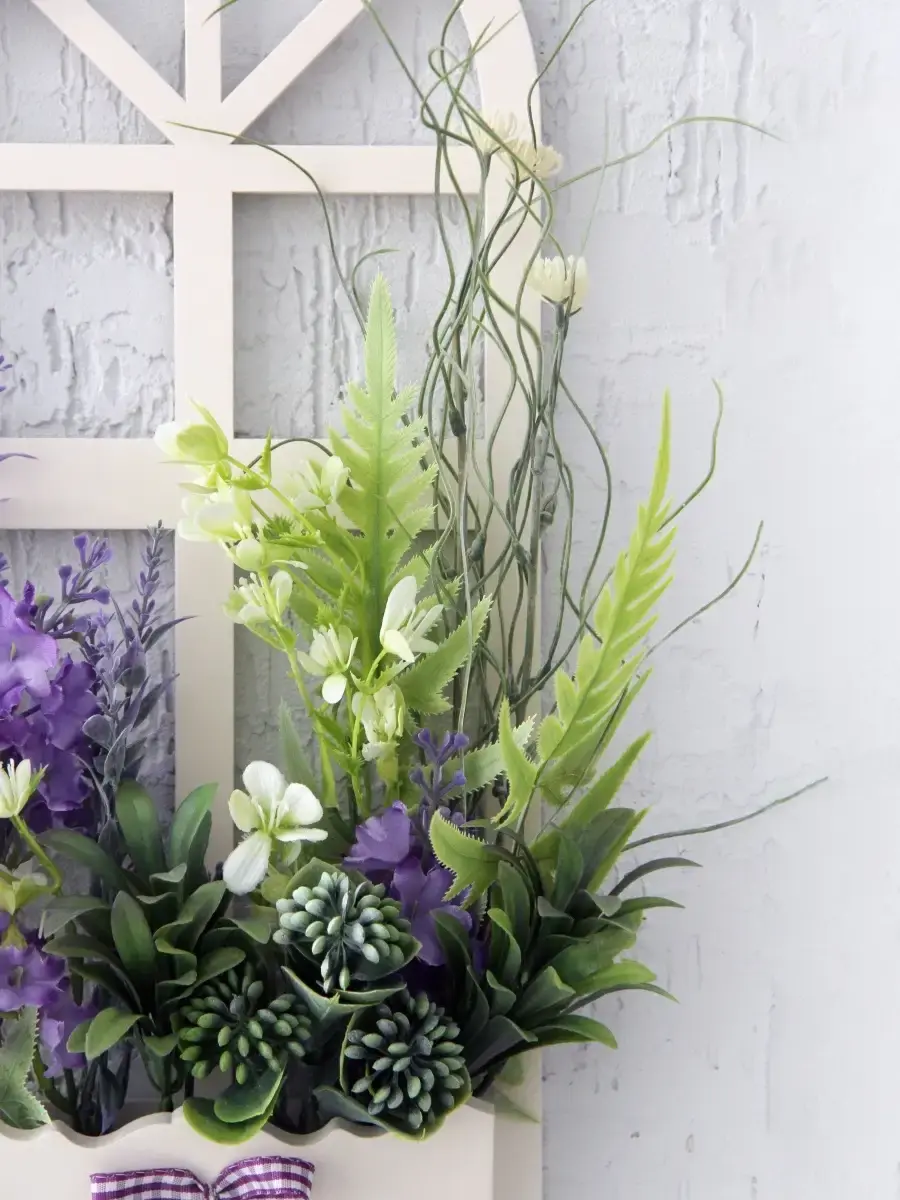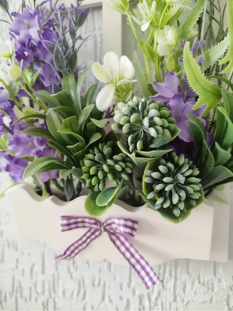 Украшение настенное для интерьера с искусственными интерьерными цветами . Композиция настенная в деревянном кашпо-окно с цветами, ВНИМАНИЕ! Размеры фальш-окна композиций отличаются (18х40см или 38х21см) Размер конкретной модели указан в карусели фотографий. Крепление на зубчатый крепеж , саморез для стены в комплекте. Отличное украшение к зеркалу, в прихожей, ванной или для кухни, где живым цветам недостаточно света. Всегда будут радовать и добавлять уюта в дом. Прекрасный подарок для дома, дачи или салона красоты. По желанию самостоятельно можно дополнить светодиодными нитями (светодиодной гирляндой). Уход : обдуть феном, протирать влажной тканью , обработать антистатиком..
