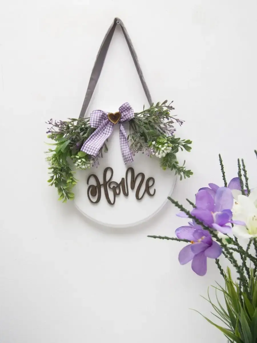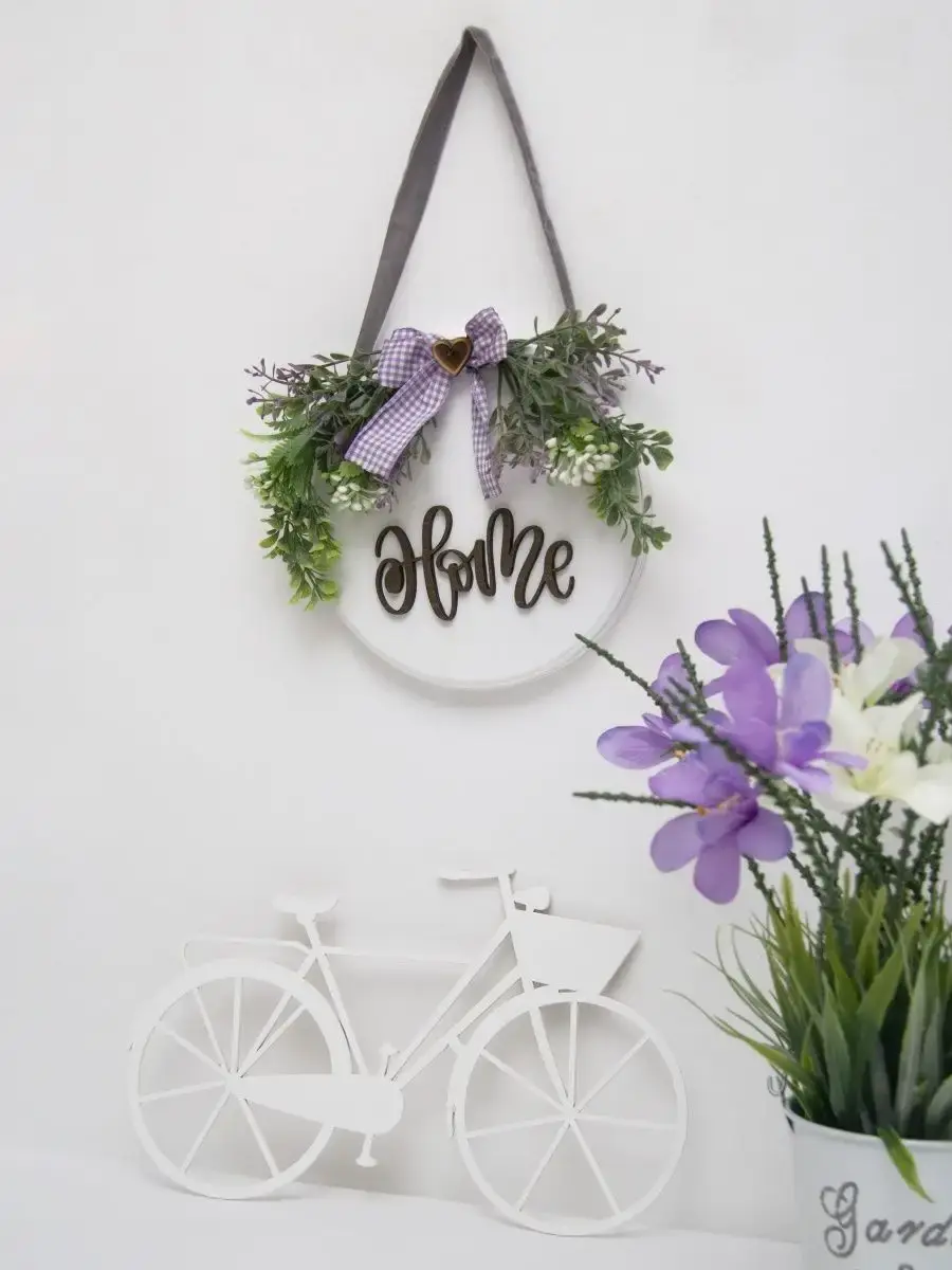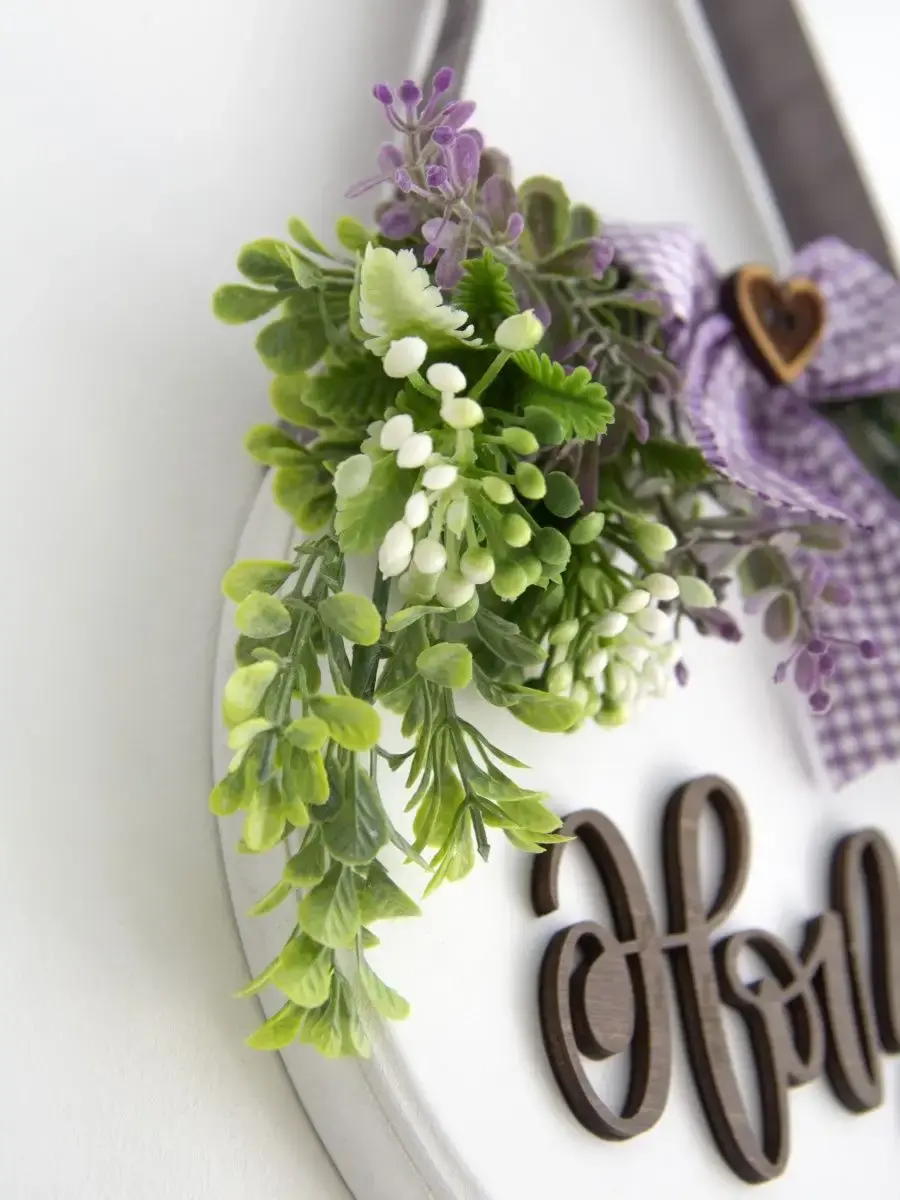 Подвесное настенное панно с цветами и объемным декором. Настенный декор изготовлен в ручную из высококачественной березовой фанеры, декорирован цветами и лентами, окрашено акриловой эмалью без запаха. Искусственные растения и милые ленточки придадут весеннего настроения и легкости вашему дому. Украшение на дверь. Размер панно - 30х28х7 см. Диаметр деревянного диска - 20 см. Настенный декор можно дополнить светодиодными нитями. Крепление для стены в комплекте.