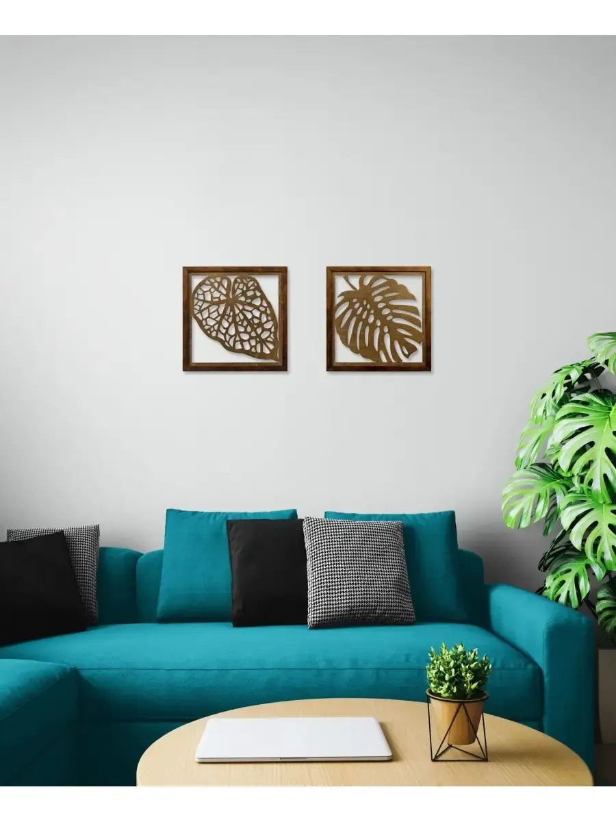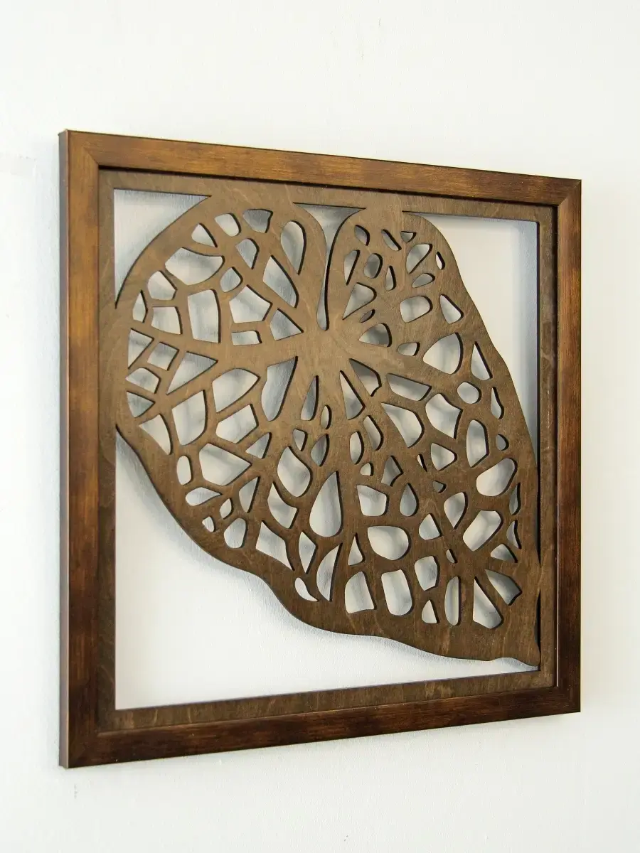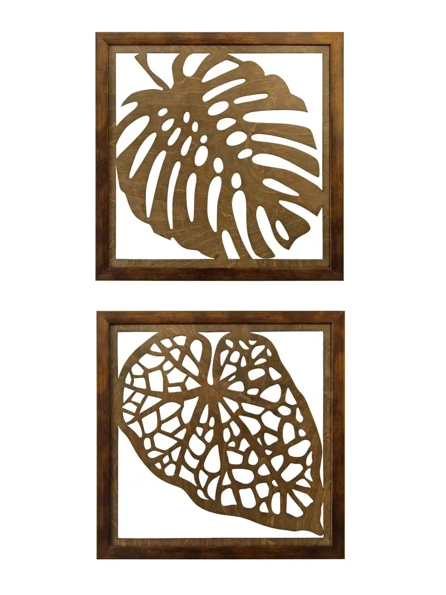 Декоративные резные настенные панно "Листья" комплект из 2х штук. Декор на стену изготовлен из высококачественной березовой фанеры 4мм, окрашен акриловым лаком. Настенные деревянные панно "Листья", декор для комнаты в современном стиле. Деревянные резные листья оформлены в лаконичную багетную раму из полиуретана. Декор для интерьера дома и дачи. Декорация на стену спальни, прихожей, украшение для кухни и ванной комнаты. Панно легкие и изящные, преобразят интерьер комнат. Размер одного панно 33х33 см. Декорацию можно разместить по горизонтали или вертикали, вся настенная декорация ширина 70 см х высота 30см.. Декор для дома можно комбинировать с другими расцветками , создавая домашнюю галерею. С обратной стороны зубчатый крепеж, крепление для стены в комплекте.