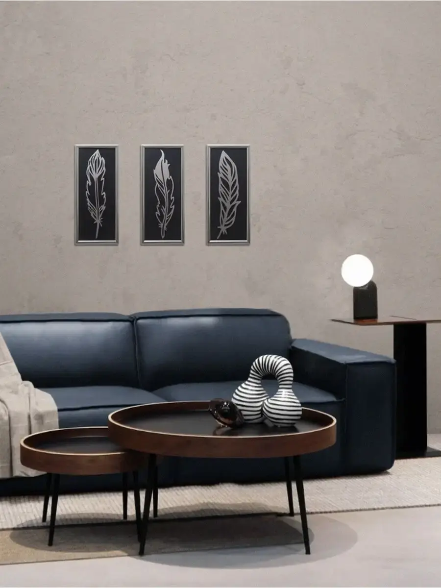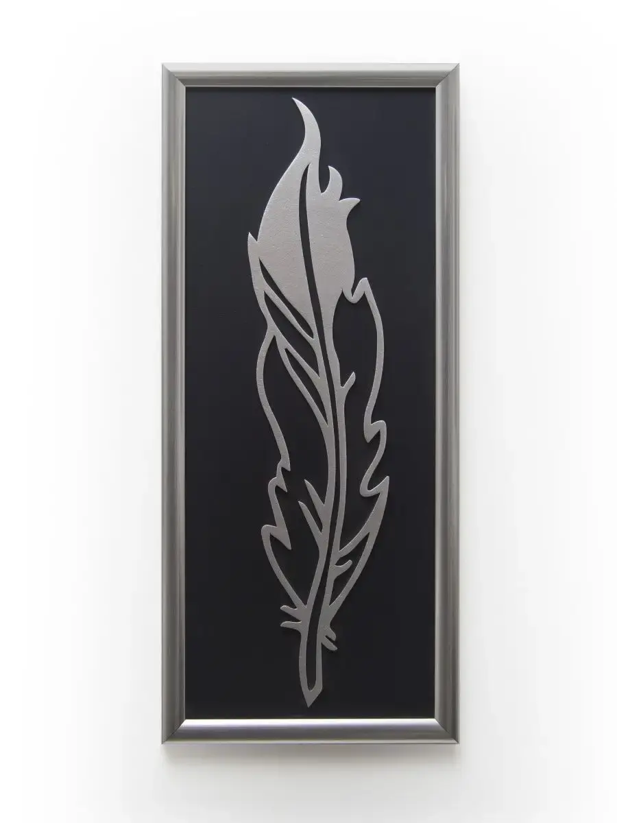 Изысканный настенный декор в современном стиле. Объемные резные перья покрыты серебристой патиной и оформлены в серебристую раму. Панно настенные подходят для создания композиции из 2х или 3х штук.Размер панно 18х40 см. Крепление для стены в комплекте.