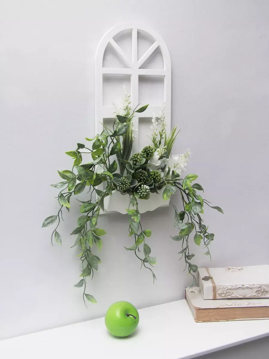 Украшение настенное для интерьера с искусственными интерьерными цветами . Композиция настенная в деревянном кашпо-окно с цветами, ВНИМАНИЕ! Размеры фальш-окна композиций отличаются (18х40см или 38х21см) Размер конкретной модели указан в карусели фотографий. Крепление на зубчатый крепеж , саморез для стены в комплекте. Отличное украшение к зеркалу, в прихожей, ванной или для кухни, где живым цветам недостаточно света. Всегда будут радовать и добавлять уюта в дом. Прекрасный подарок для дома, дачи или салона красоты. По желанию самостоятельно можно дополнить светодиодными нитями (светодиодной гирляндой). Уход : обдуть феном, протирать влажной тканью , обработать антистатиком..