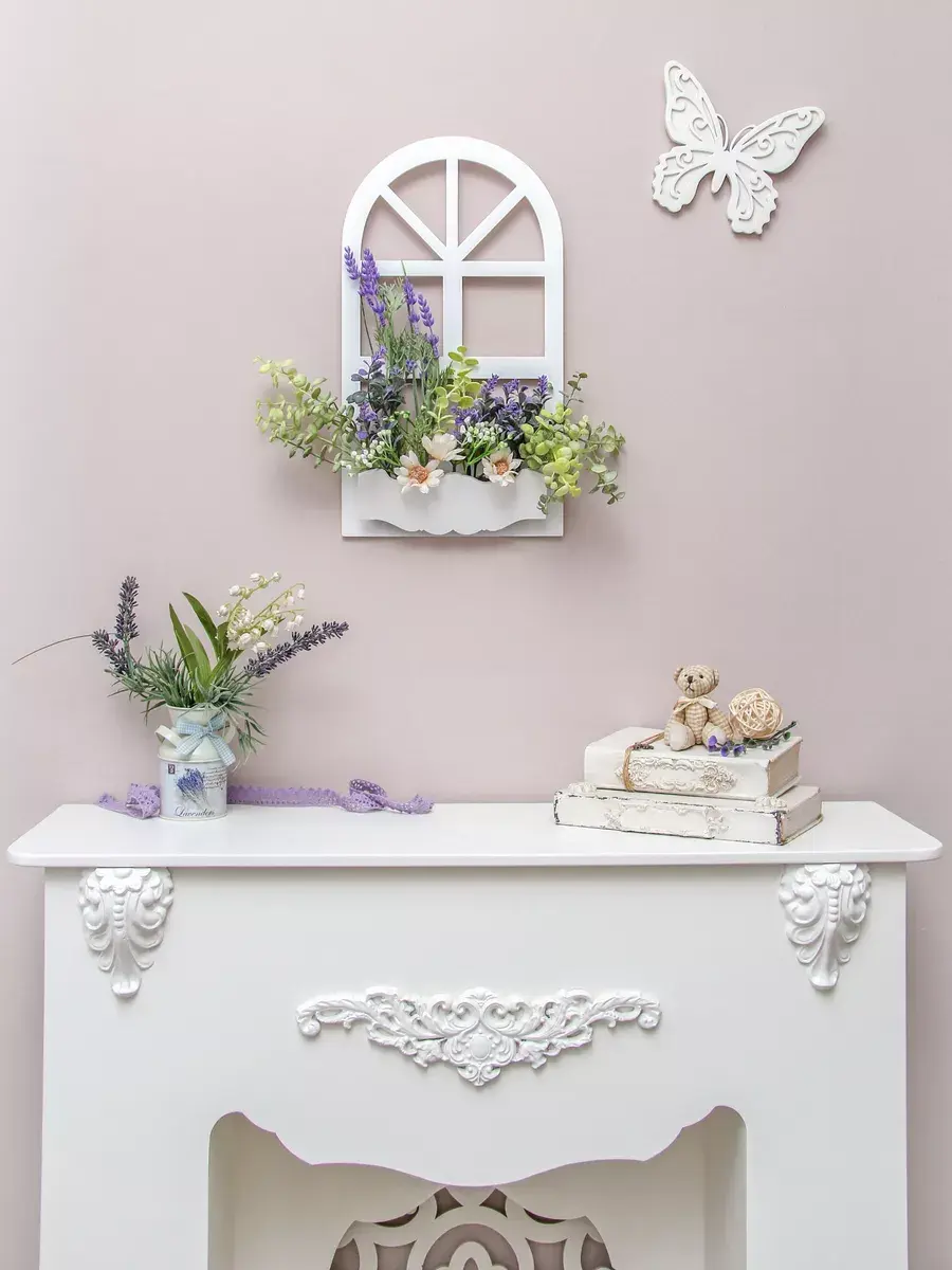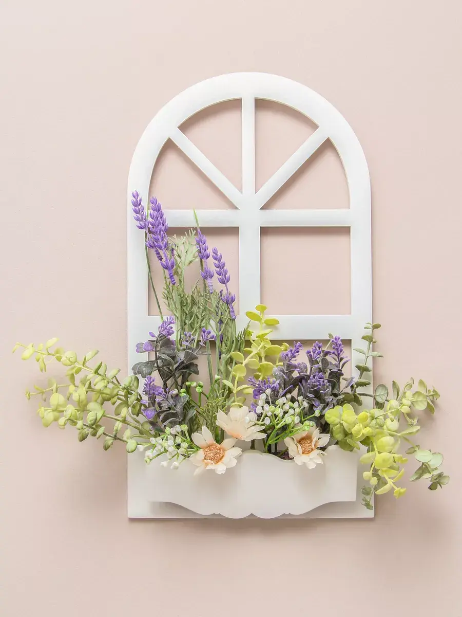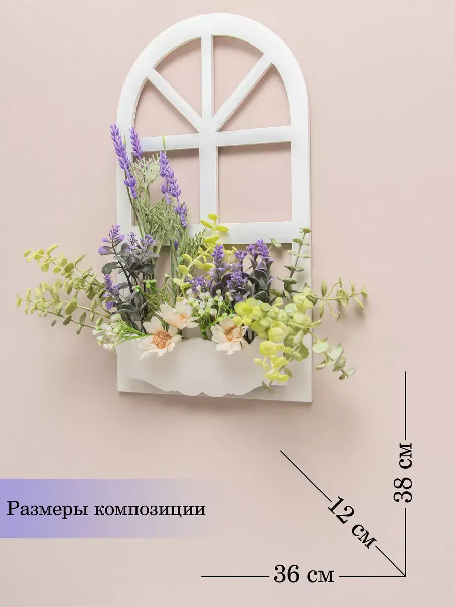 Украшение настенное для интерьера с искусственными интерьерными цветами. Композиции из папоротников, лаванды, ромашек, колокольчиков. Панно декоративное в виде окна с цветами. Цветы надежно закреплены в деревянном кашпо-окно, размер окна 38х21 см. Крепление на зубчатый крепеж , саморез для стены в комплекте. Отличное украшение к зеркалу, в прихожей, ванной или для кухни, где живым цветам недостаточно света. Всегда будут радовать и добавлять уюта в дом. По желанию самостоятельно можно дополнить светодиодными нитями (светодиодной гирляндой). Уход : обдуть феном, протирать влажной тканью , обработать антистатиком.