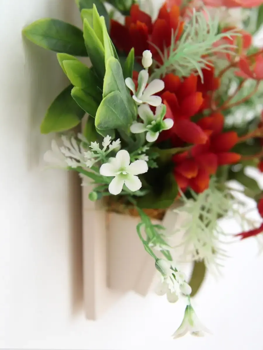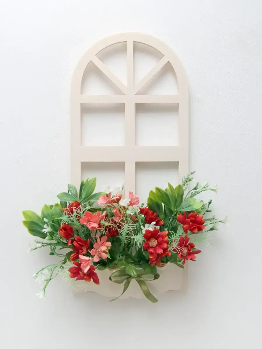 Украшение настенное для интерьера с искусственными интерьерными цветами . Композиция настенная в деревянном кашпо-окно с цветами, ВНИМАНИЕ! Размеры фальш-окна композиций отличаются (18х40см или 38х21см) Размер конкретной модели указан в карусели фотографий. Крепление на зубчатый крепеж , саморез для стены в комплекте. Отличное украшение к зеркалу, в прихожей, ванной или для кухни, где живым цветам недостаточно света. Всегда будут радовать и добавлять уюта в дом. Прекрасный подарок для дома, дачи или салона красоты. По желанию самостоятельно можно дополнить светодиодными нитями (светодиодной гирляндой). Уход : обдуть феном, протирать влажной тканью , обработать антистатиком..