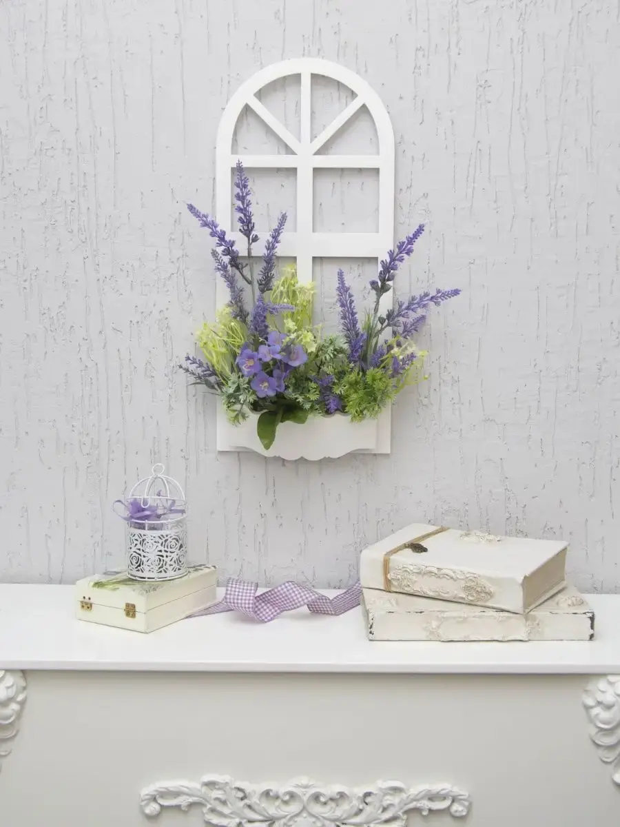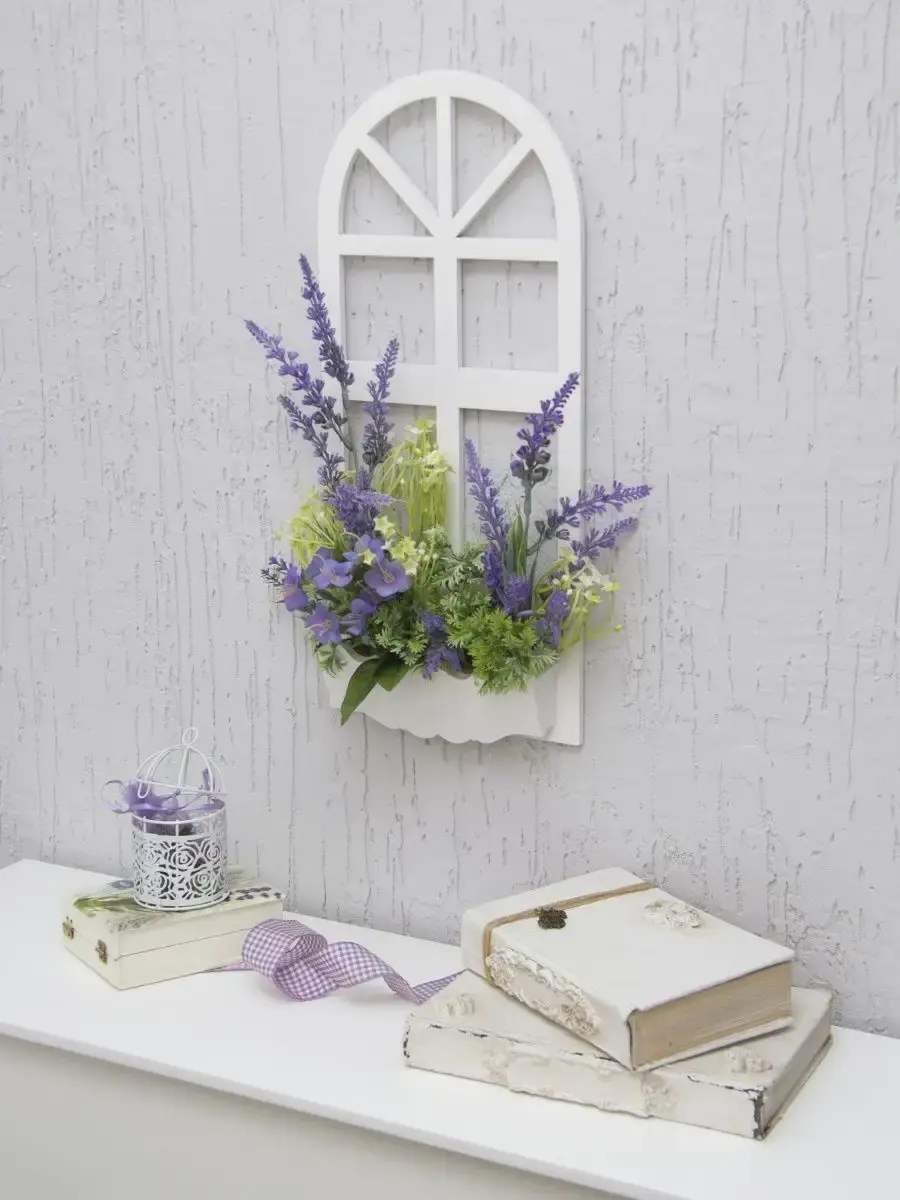 Украшение настенное для интерьера с искусственными интерьерными цветами . Композиция настенная в деревянном кашпо-окно с цветами, ВНИМАНИЕ! Размеры фальш-окна композиций отличаются (18х40см или 38х21см) Размер конкретной модели указан в карусели фотографий. Крепление на зубчатый крепеж , саморез для стены в комплекте. Отличное украшение к зеркалу, в прихожей, ванной или для кухни, где живым цветам недостаточно света. Всегда будут радовать и добавлять уюта в дом. Прекрасный подарок для дома, дачи или салона красоты. По желанию самостоятельно можно дополнить светодиодными нитями (светодиодной гирляндой). Уход : обдуть феном, протирать влажной тканью , обработать антистатиком..