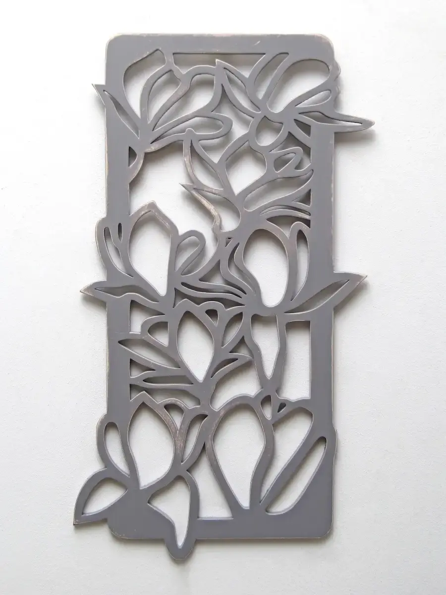 Резное панно из высококачественной березовой фанеры. Окрашено акриловой эмалью без запаха. Однородная матовая покраска придает утонченности лаконичному рисунку панно.Панно добавит изысканности вашему интерьеру. Размер панно 39*72 см.